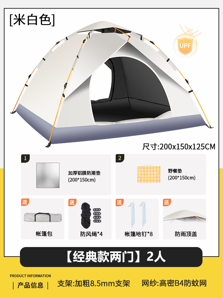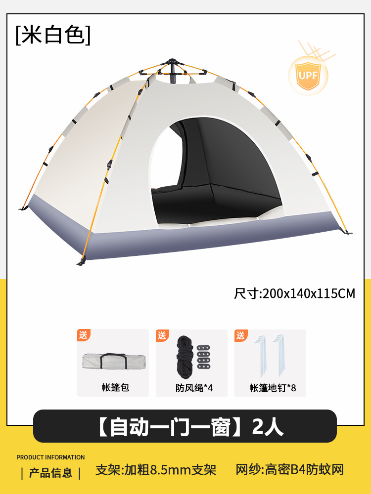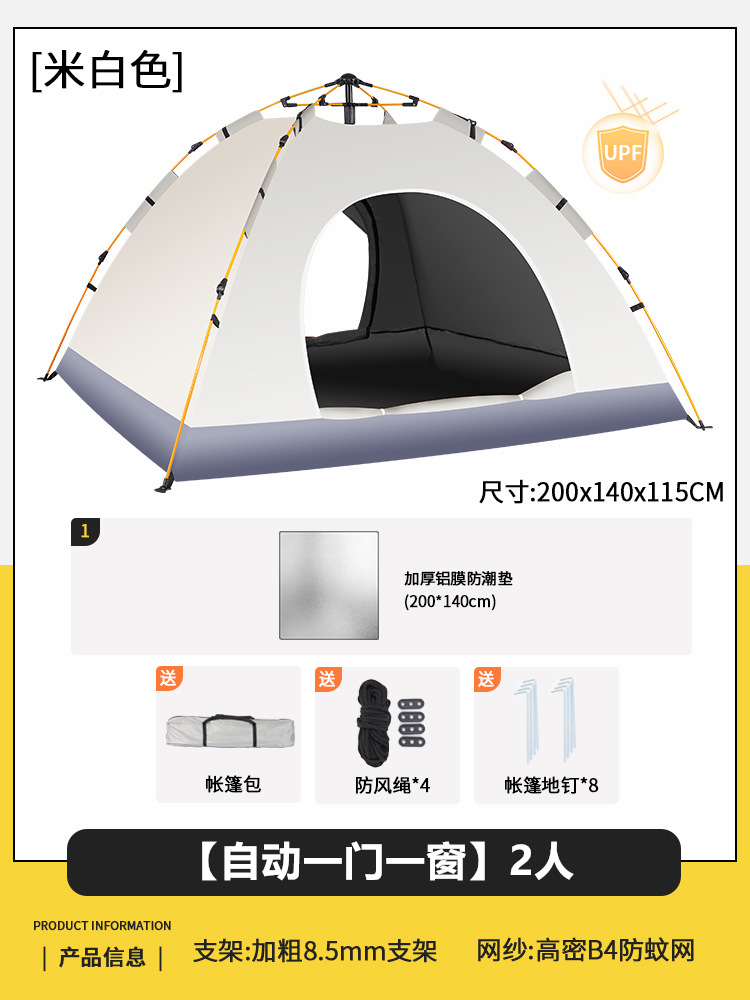 • 자동 2인용 오프화이트 [문 1개, 창문 1개] (탄성텐트)