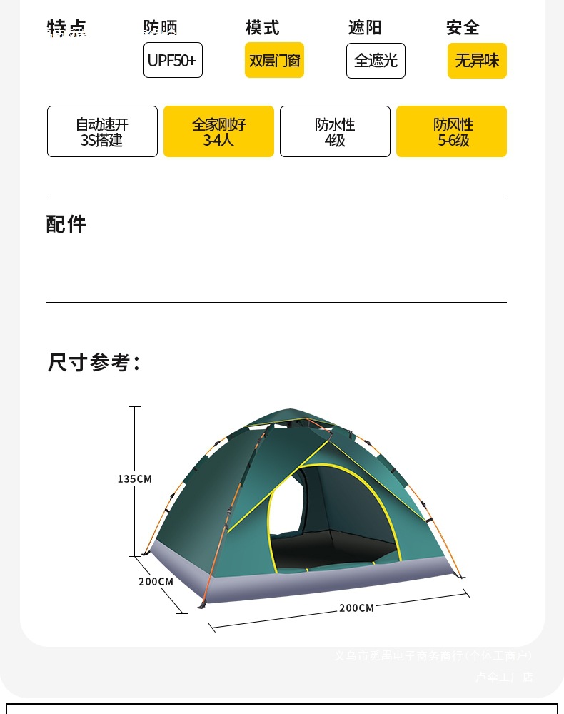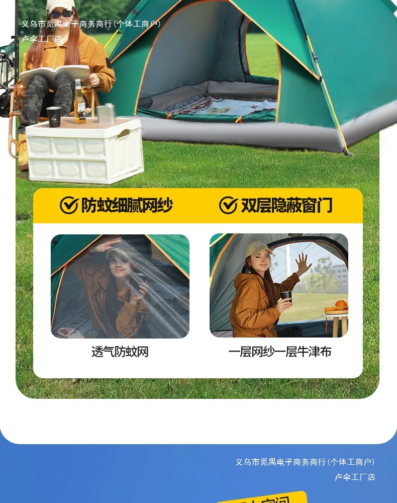 텐트 야외 휴대용 접이식 공원 캠핑 장비 캠핑 밤새 방수 두꺼운 완전 자동 해변 실내스토어 가기