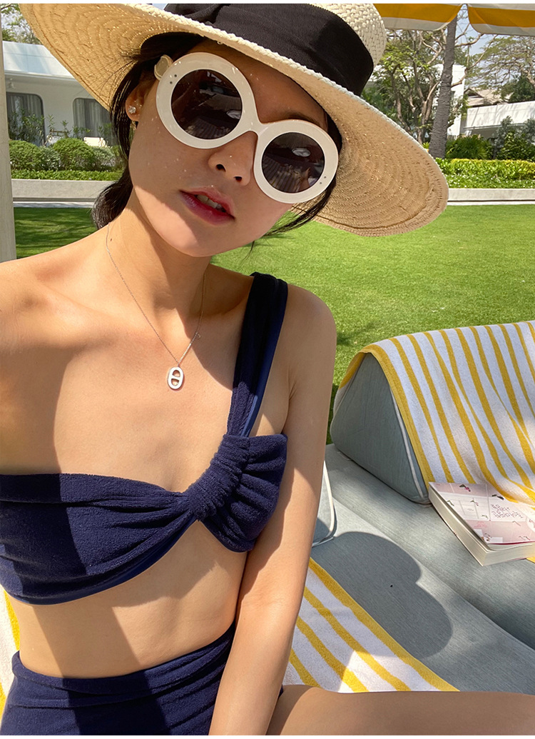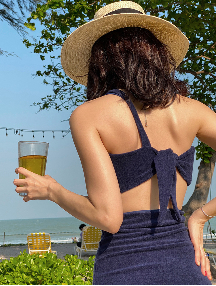 한국의 새로운 솔리드 컬러 비키니 하이 웨이스트 배 커버 섹시한 아름다운 등 스플릿 비치 휴가 수영복 여성용스토어 가기