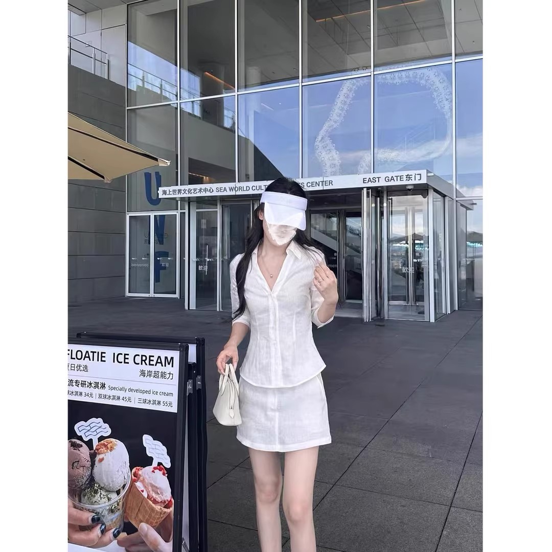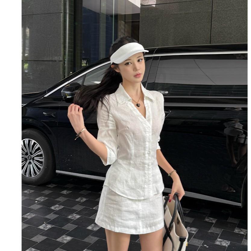 여름 신작 지능형 산소 느낌 린넨 슈트 기질 린넨 셔츠 스커트 린넨 셔츠/스커트 세트스토어 가기