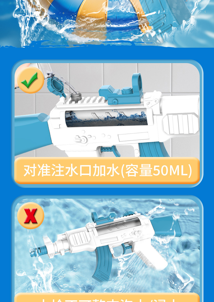 2025 새로운 프레스 버스트 물총 AK47 여름 야외 해변 물 싸움 어린이 물 놀이 소년과 소녀 장난감스토어 가기