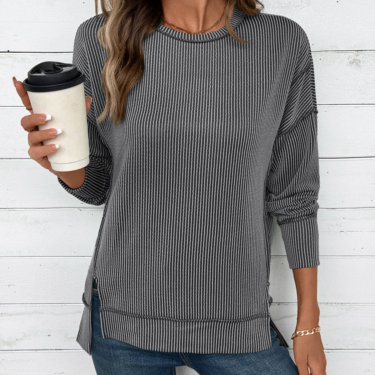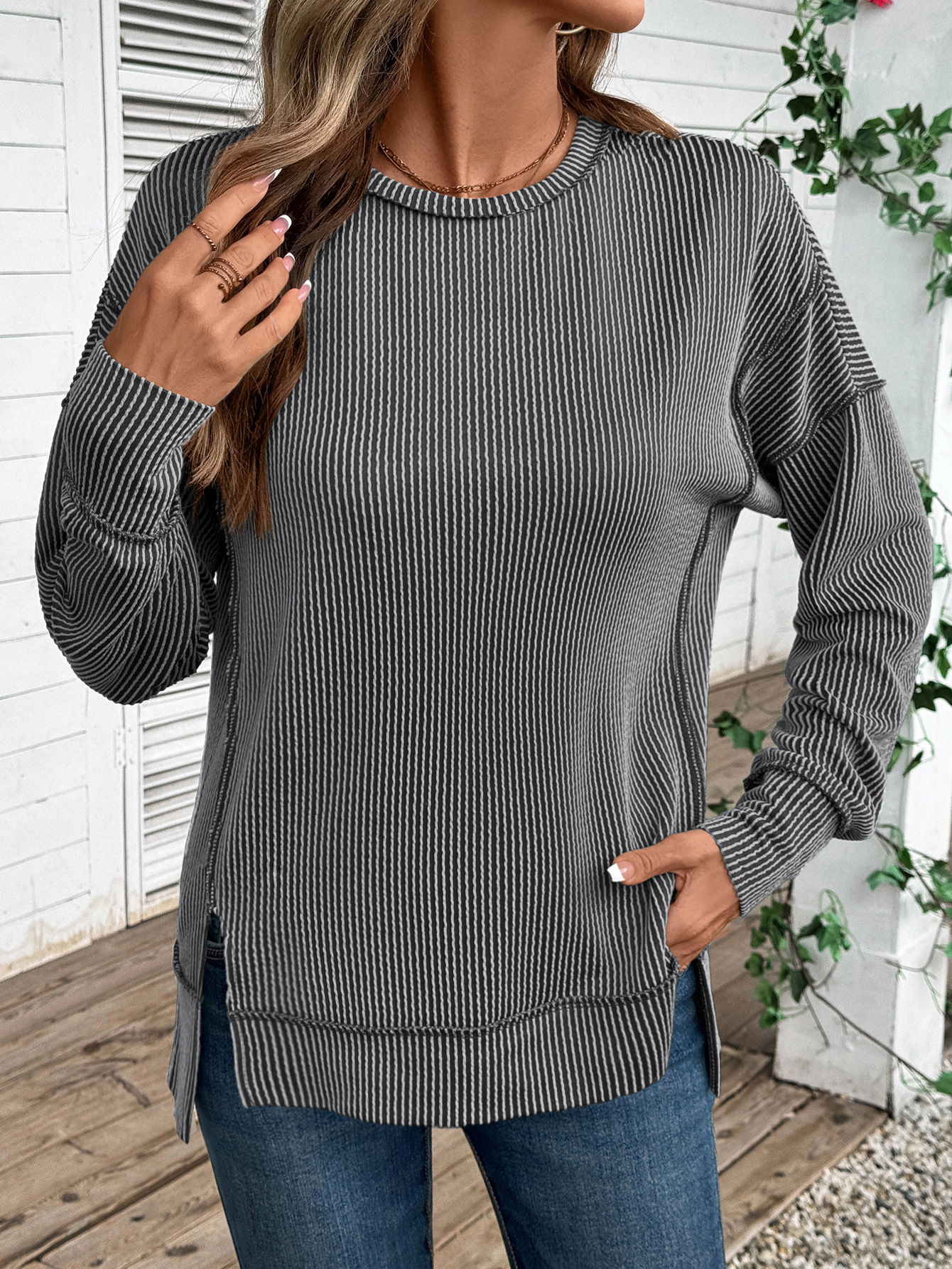 2025 유럽과 미국의 국경 간 여성 의류 Amazon 가을 겨울 새로운 스타일 트위스트 스트립 슬릿 긴팔 루즈 스웨트 셔츠