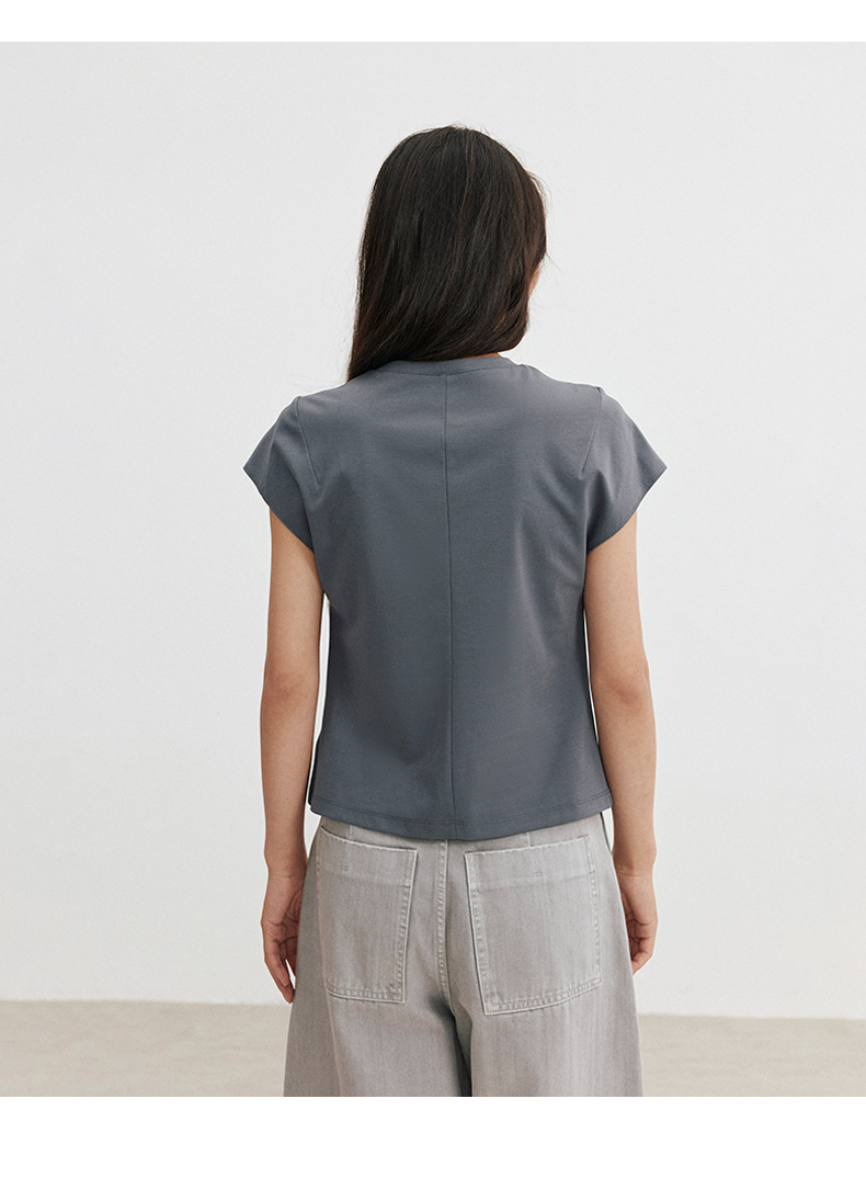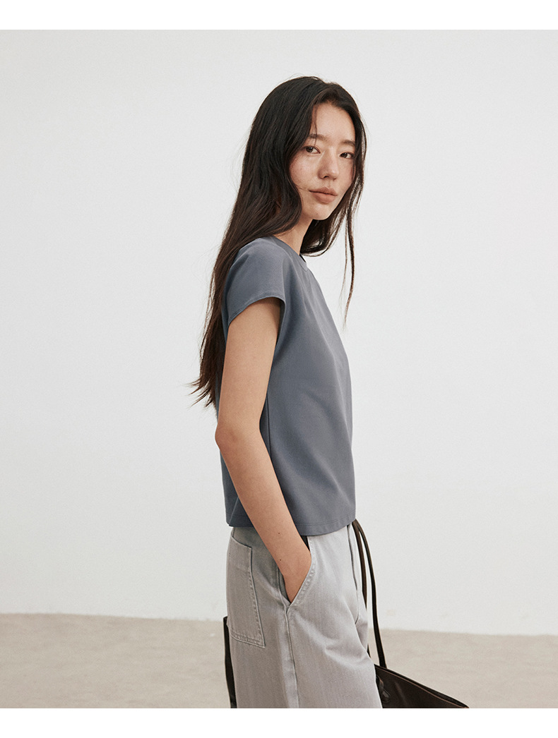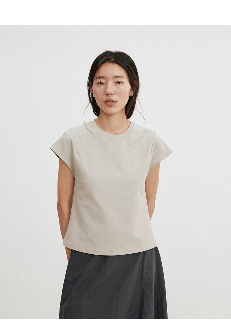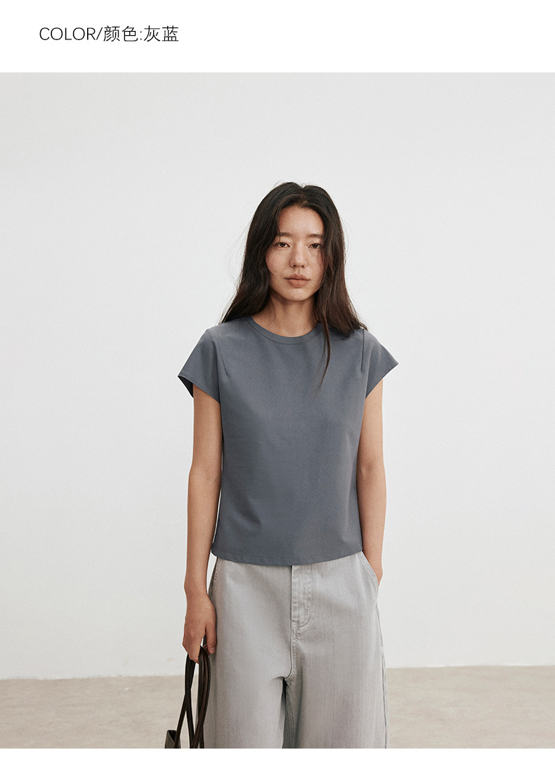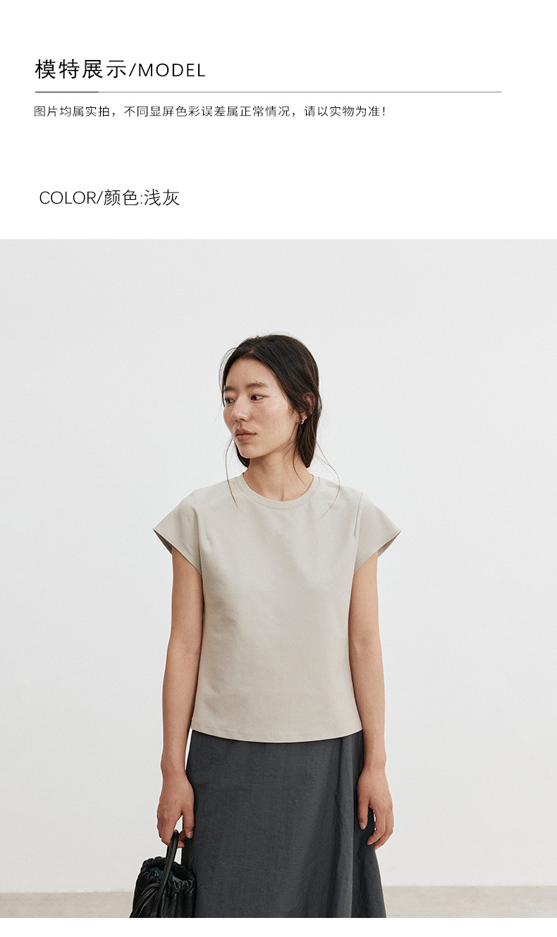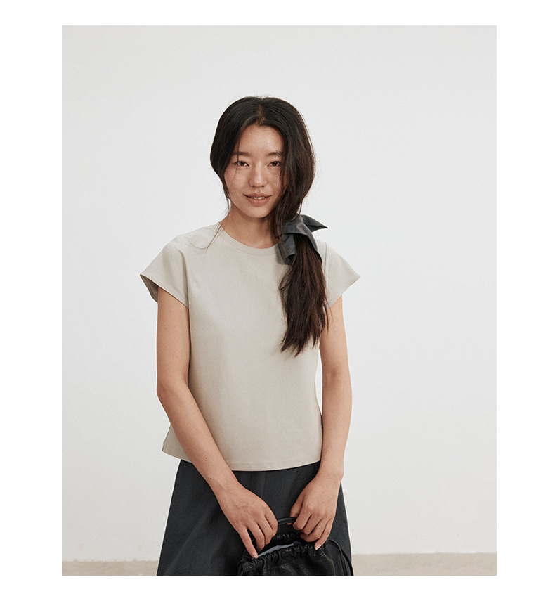 Love and Nancy Thirteen Lines 2025 가을 한국 스타일 순면 플라잉 슬리브 순면 풀오버 라운드 넥 스웨터 여성용 02761스토어 가기
