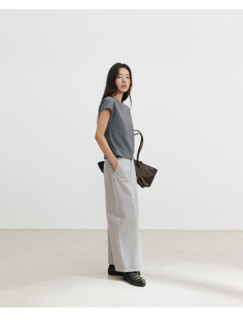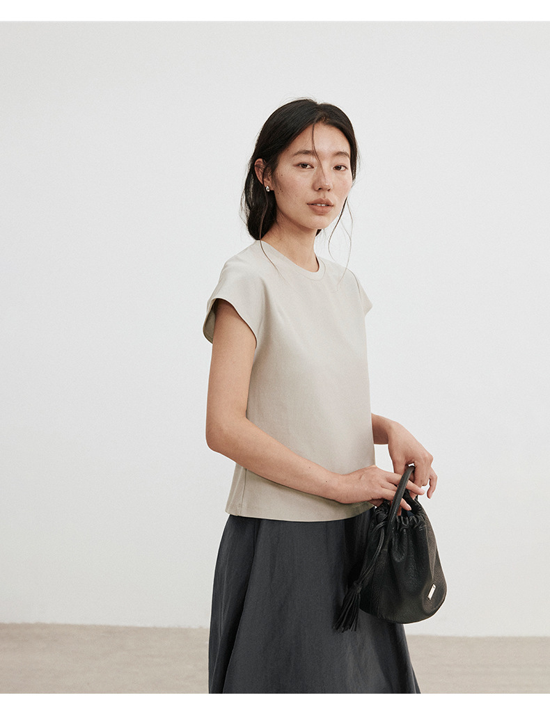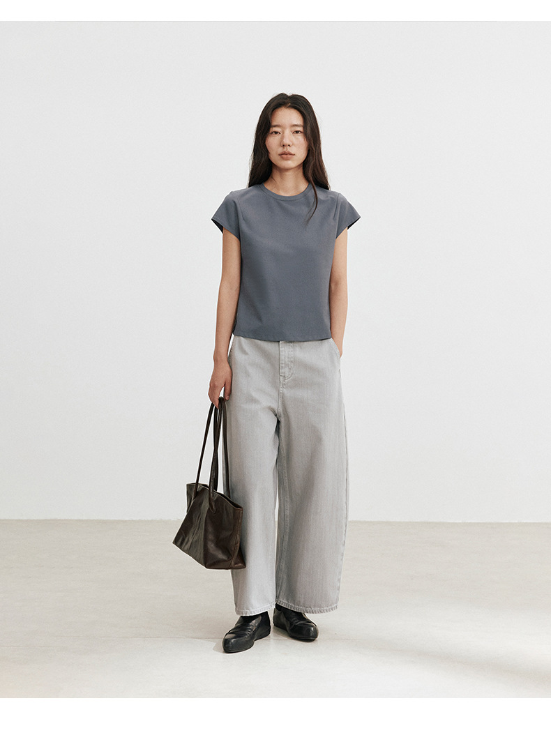 Love and Nancy Thirteen Lines 2025 가을 한국 스타일 순면 플라잉 슬리브 순면 풀오버 라운드 넥 스웨터 여성용 02761