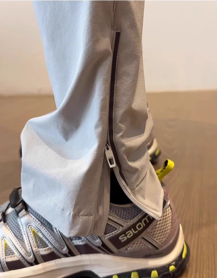 아메리칸 사이드 지퍼 마이크로 플레어 팬츠 남성 여름 얇은 아이스 실크 속건성 작업복 충전 바지 기능성 야외 하이킹 바지스토어 가기