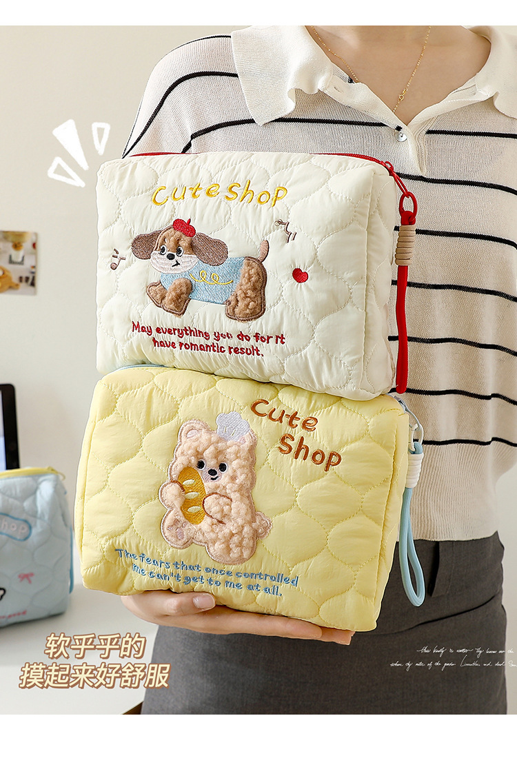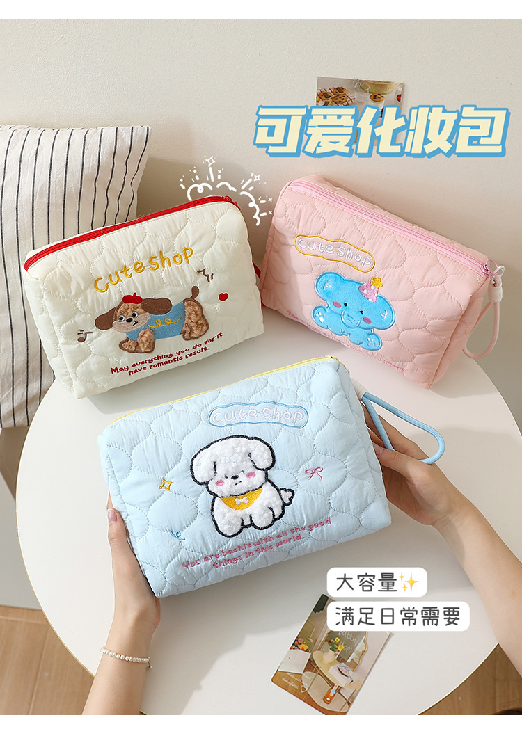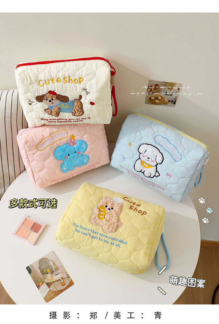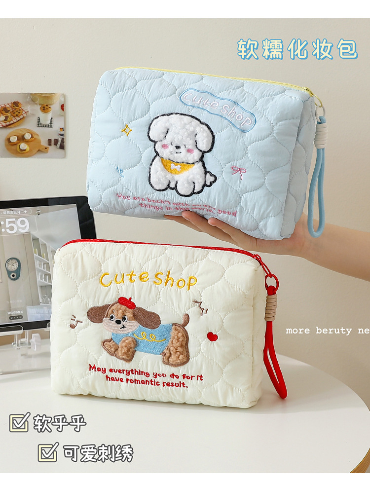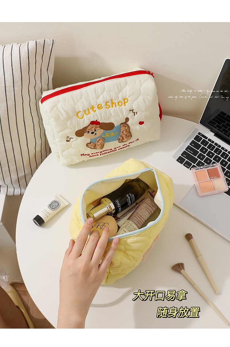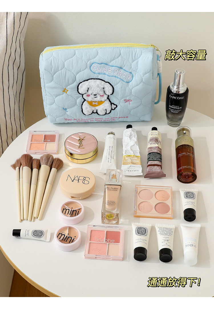 여성을위한 귀여운 강아지 휴대용 화장품 가방 휴대용 대용량 스킨 케어 브러쉬 여행 세면 용품 가방 도매스토어 가기