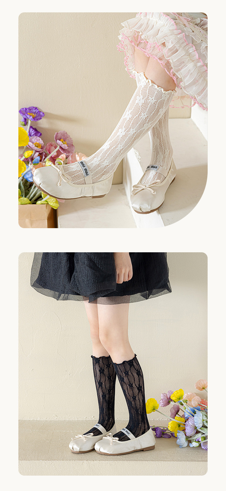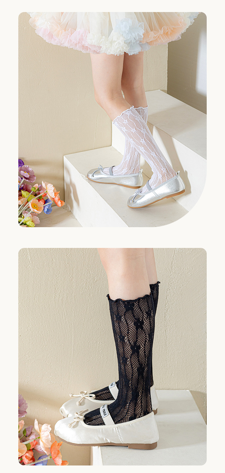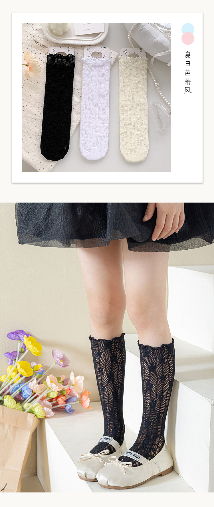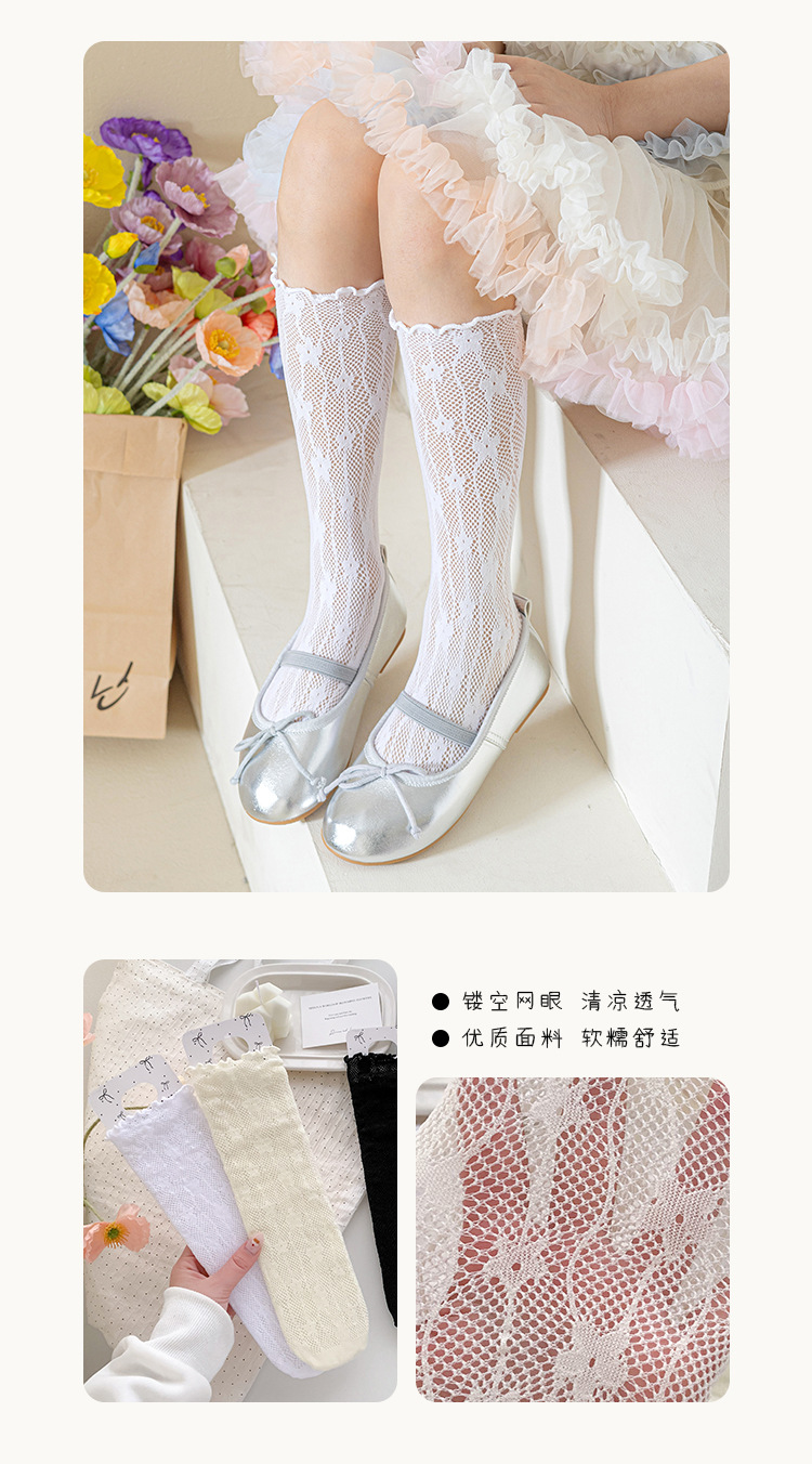 Misscucudog 어린이 봄 여름 얇은 중공 꽃 로리타 흰색 귀 더미 중간 튜브 양말