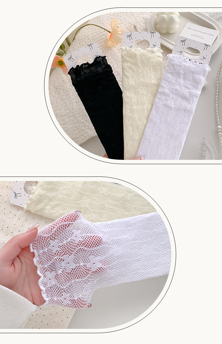 Misscucudog 어린이 봄 여름 얇은 중공 꽃 로리타 흰색 귀 더미 중간 튜브 양말스토어 가기