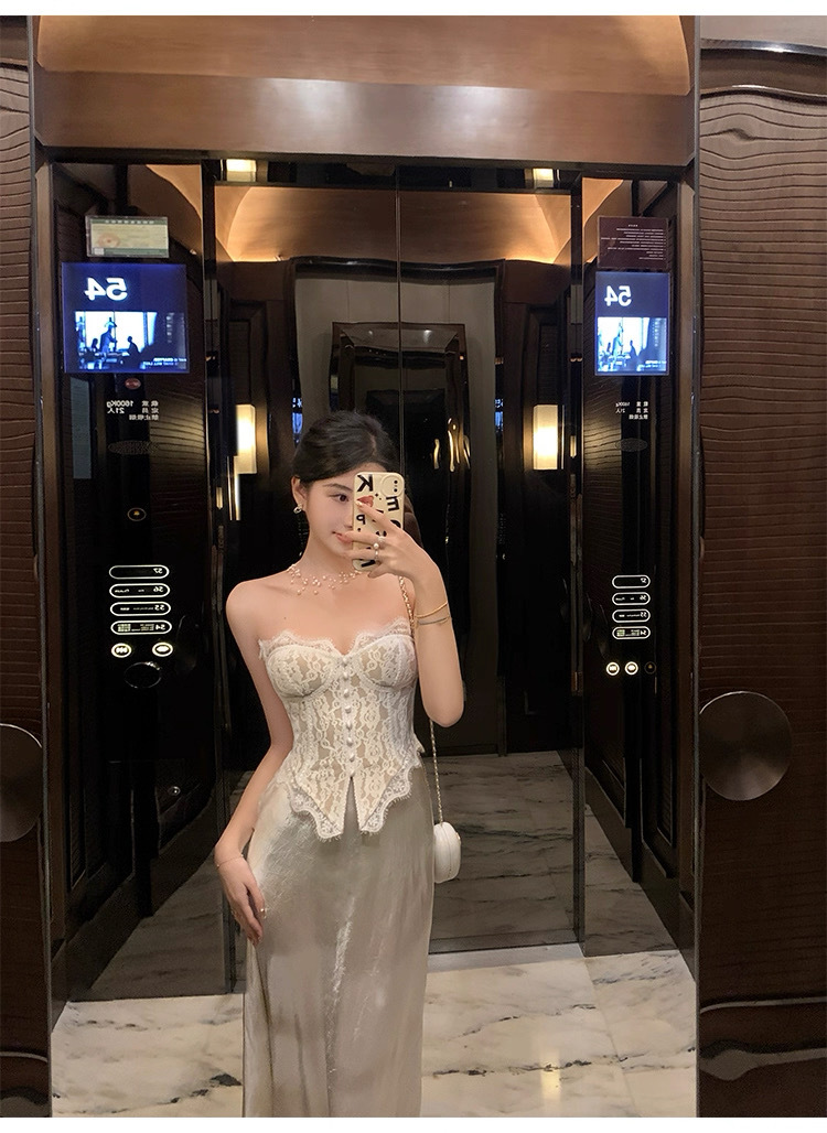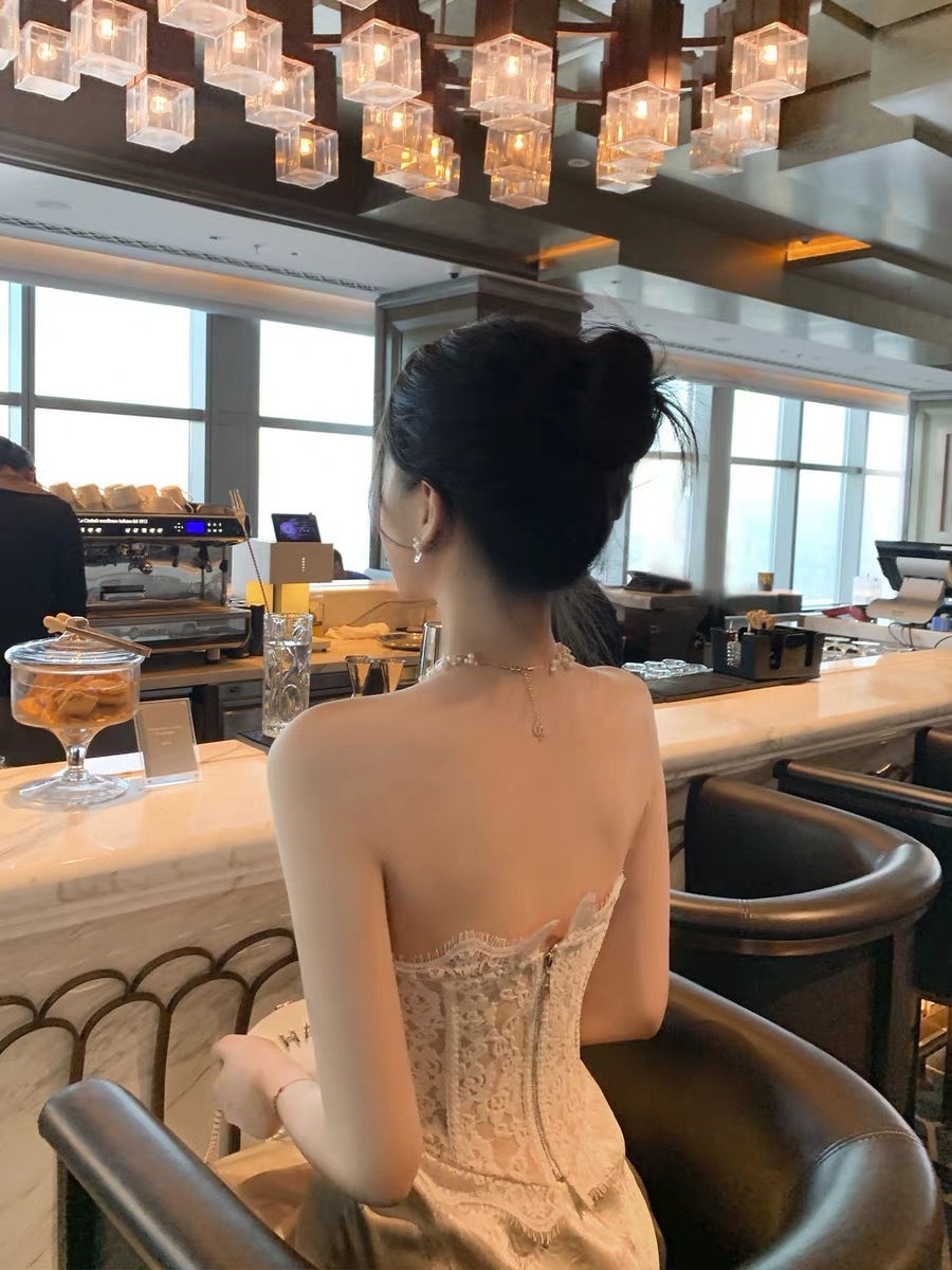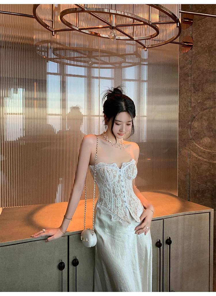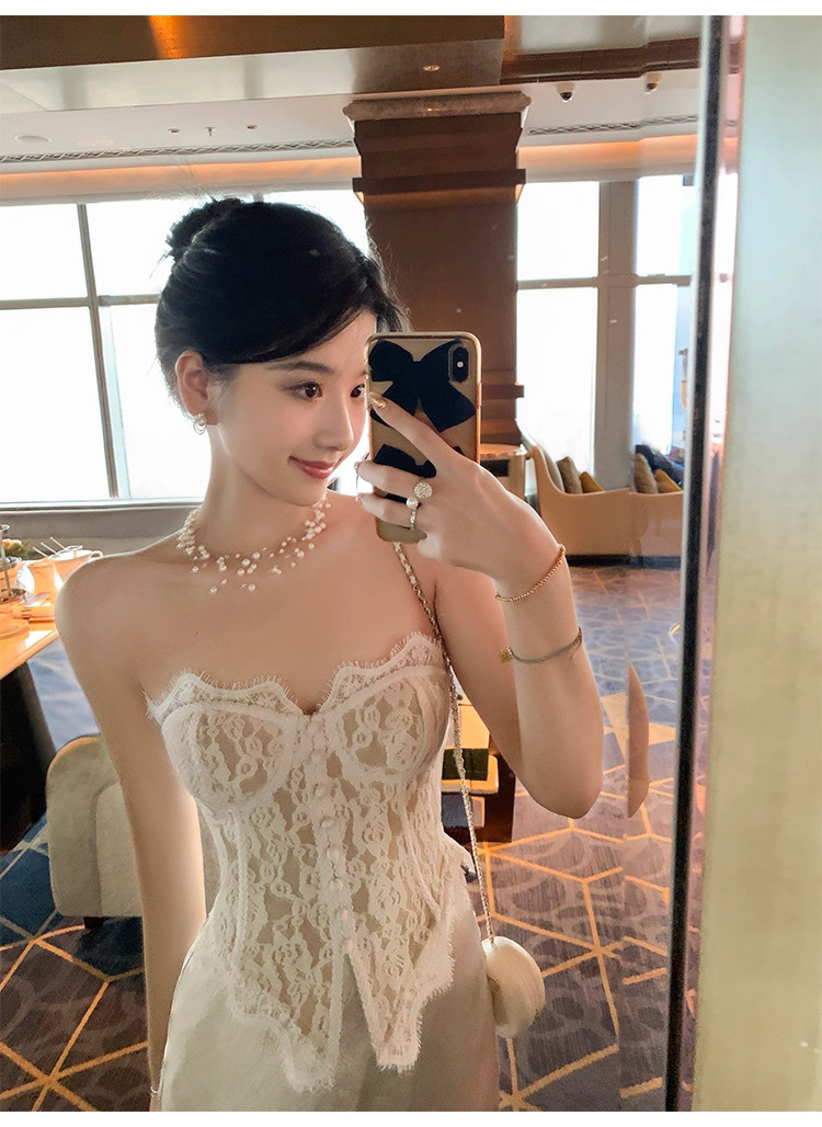 여름용 레이스 스플라이싱 섹시한 튜브탑 여성용 민소매 가슴 감싸는 순수한 욕망 블랙 탑(가슴 패드 포함)스토어 가기