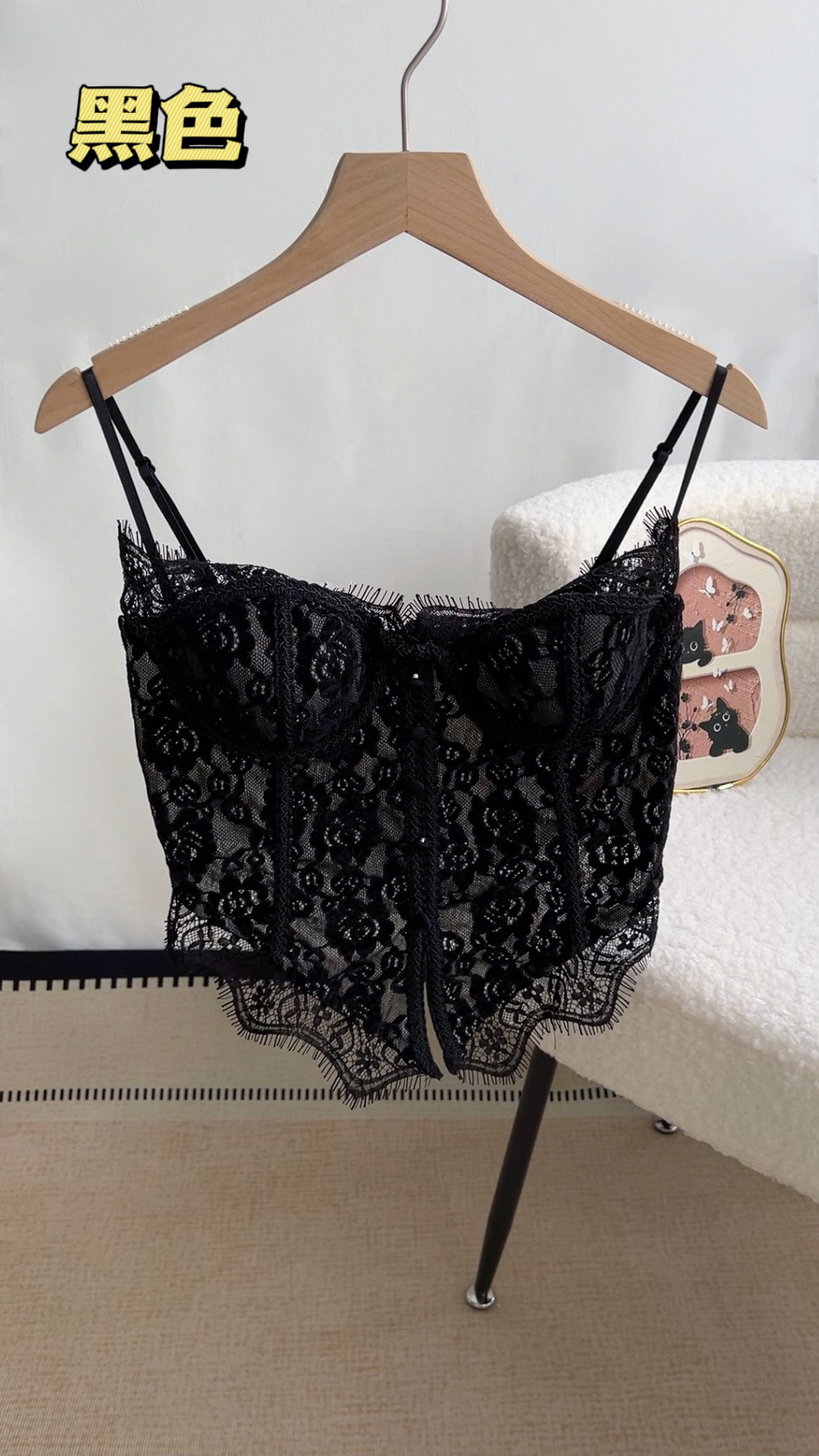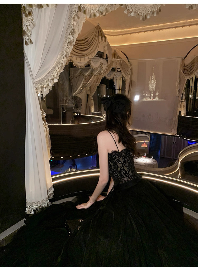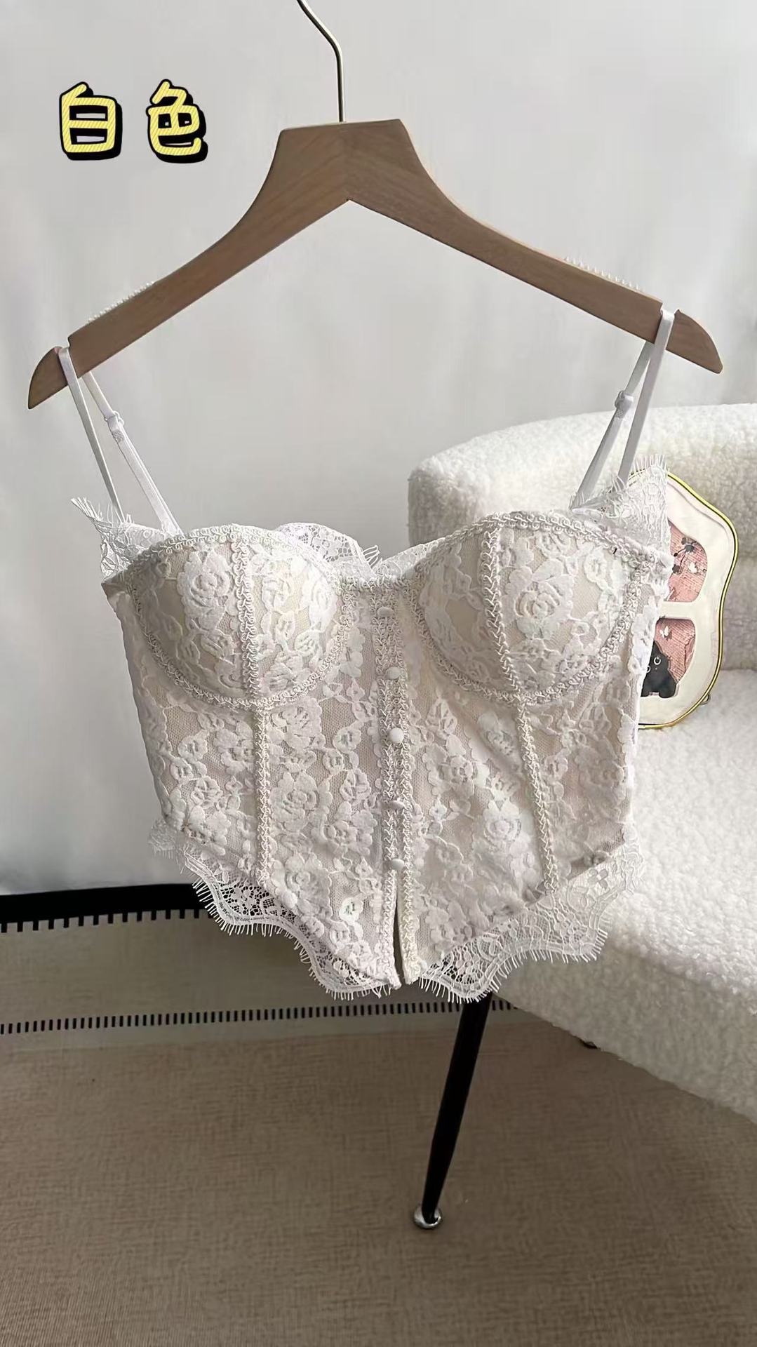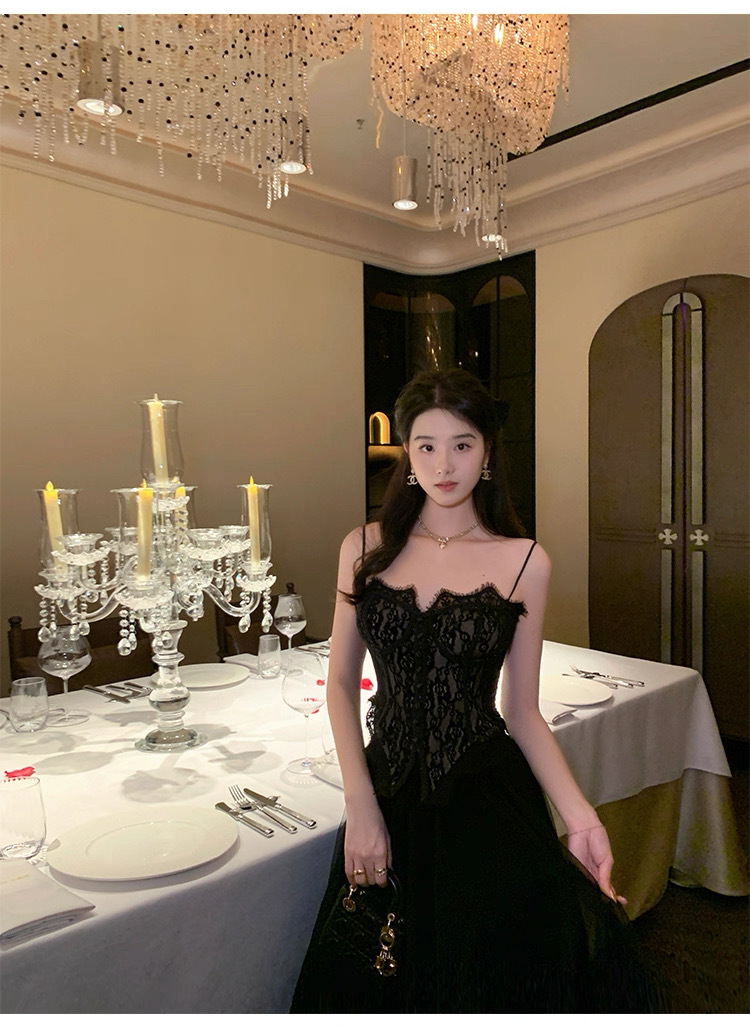 여름용 레이스 스플라이싱 섹시한 튜브탑 여성용 민소매 가슴 감싸는 순수한 욕망 블랙 탑(가슴 패드 포함)스토어 가기