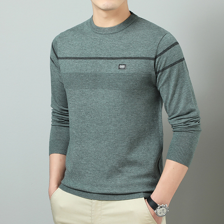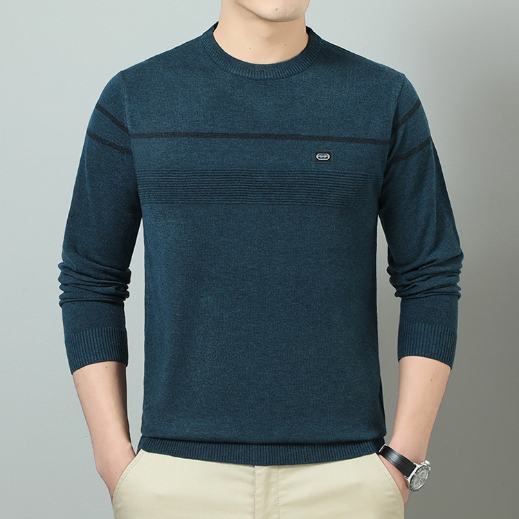 YINGAO 중년 남성 스웨터 바닥 셔츠 스트라이프 남성 니트 가을 캐주얼 새로운 얇은 스웨터 라운드 넥