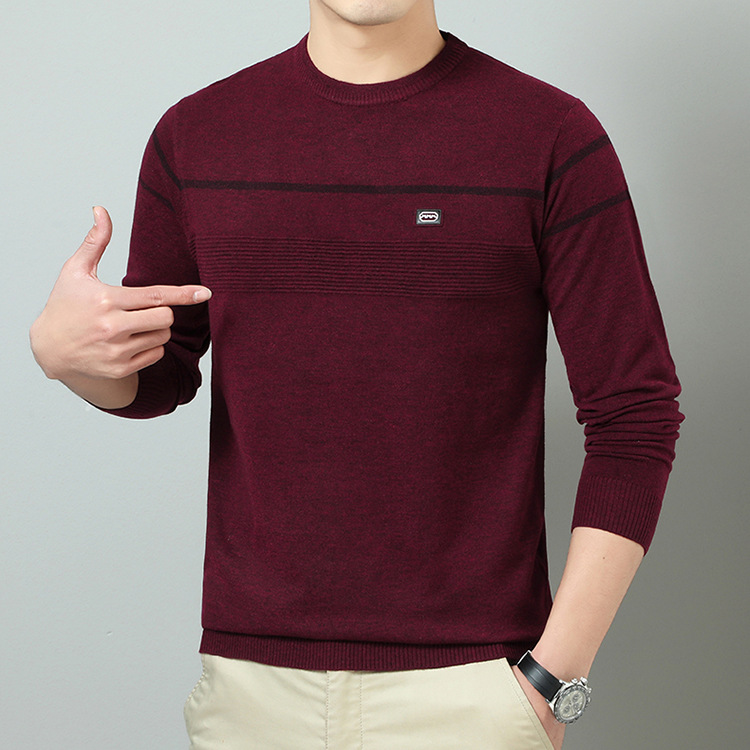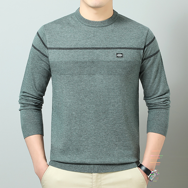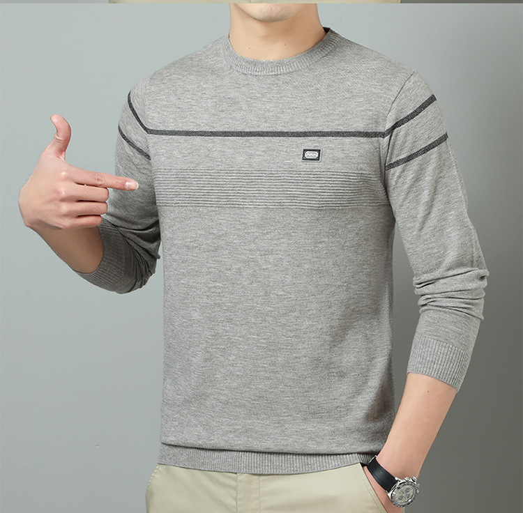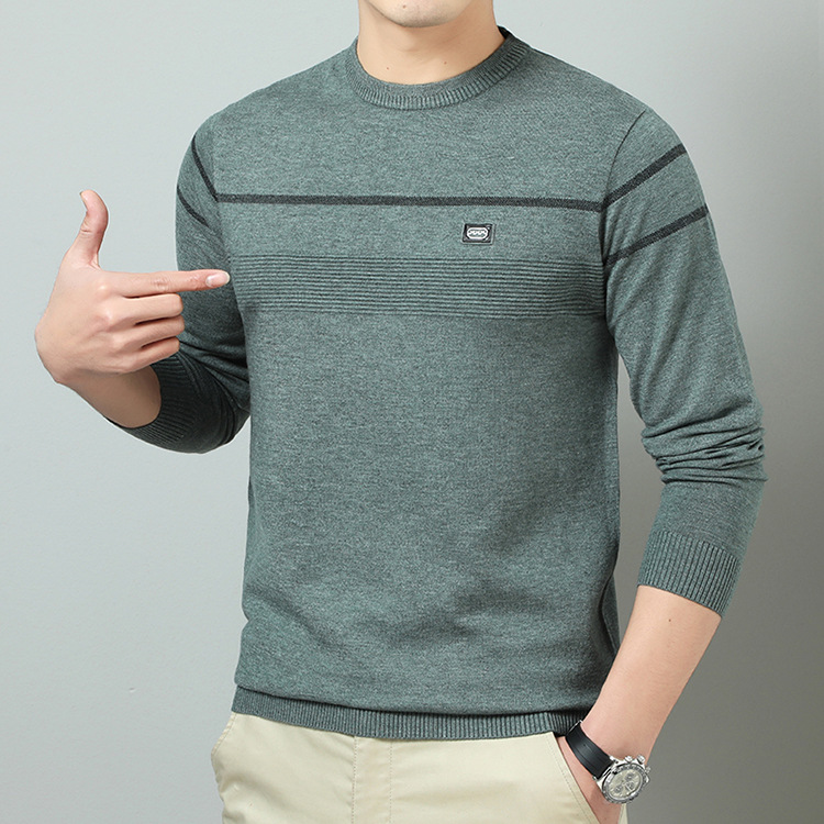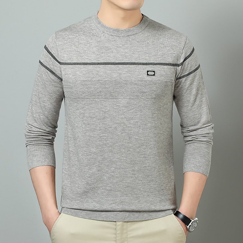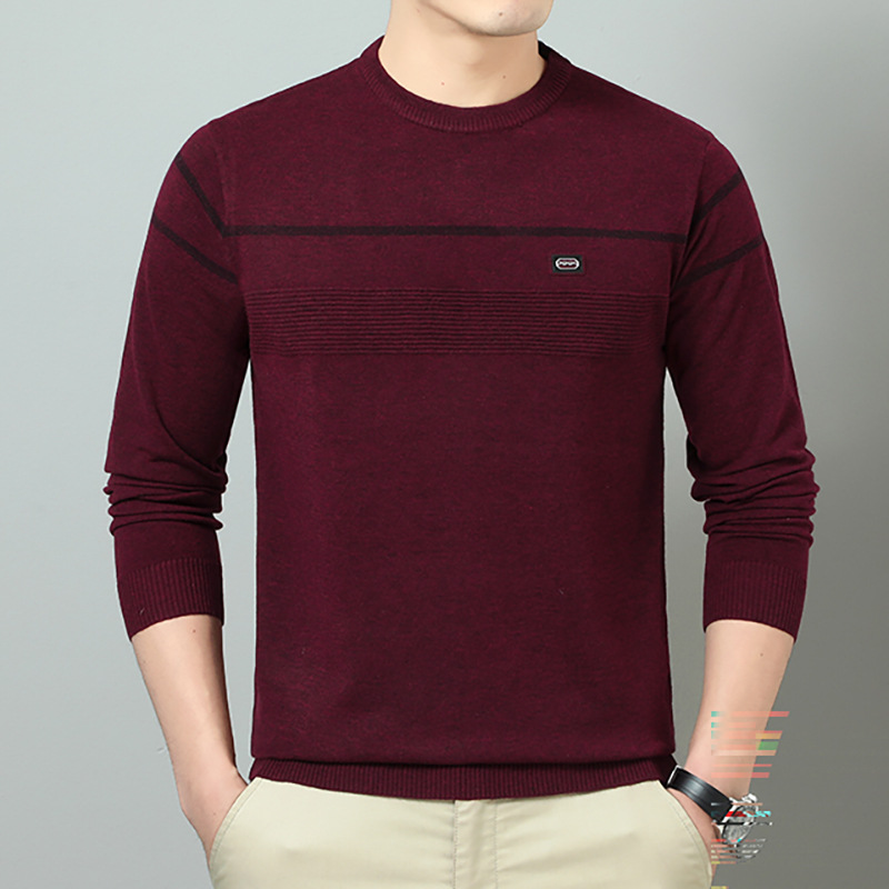 YINGAO 중년 남성 스웨터 바닥 셔츠 스트라이프 남성 니트 가을 캐주얼 새로운 얇은 스웨터 라운드 넥스토어 가기