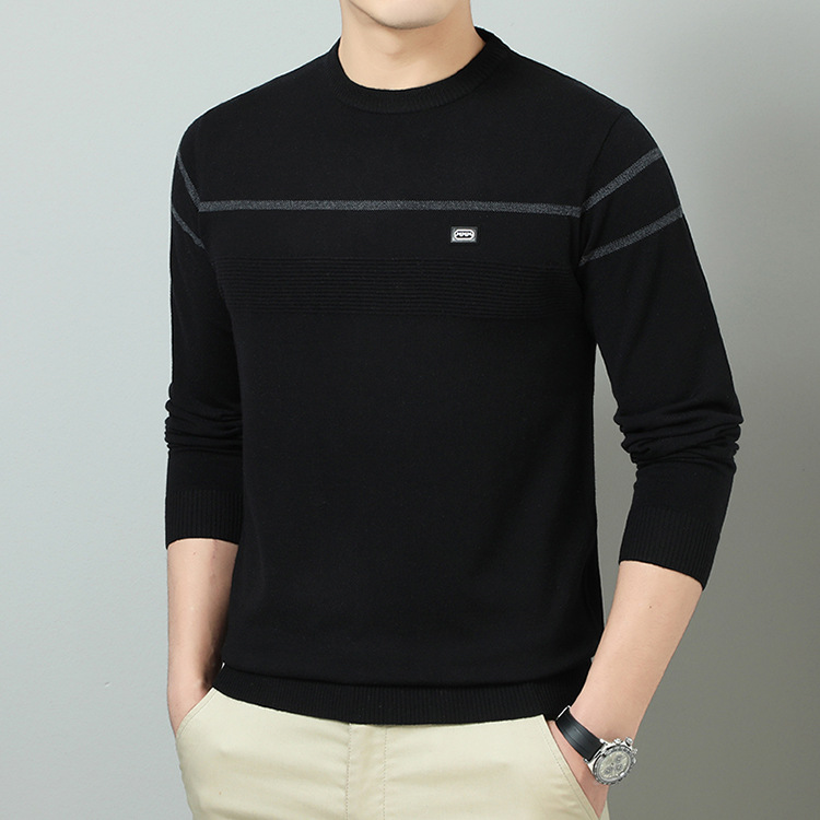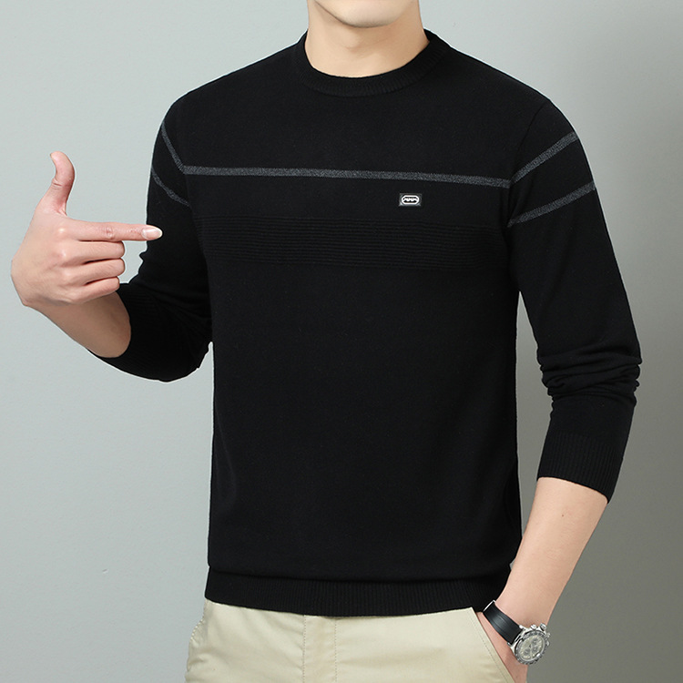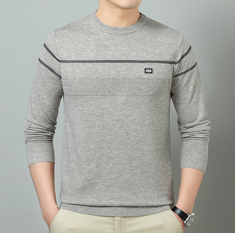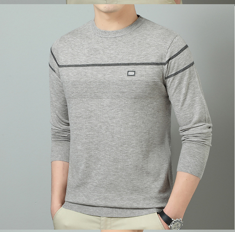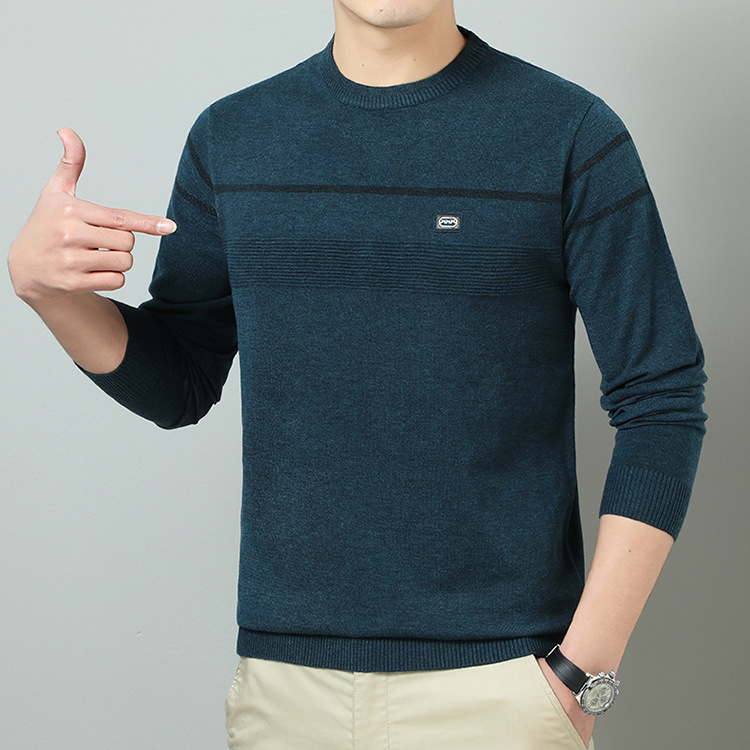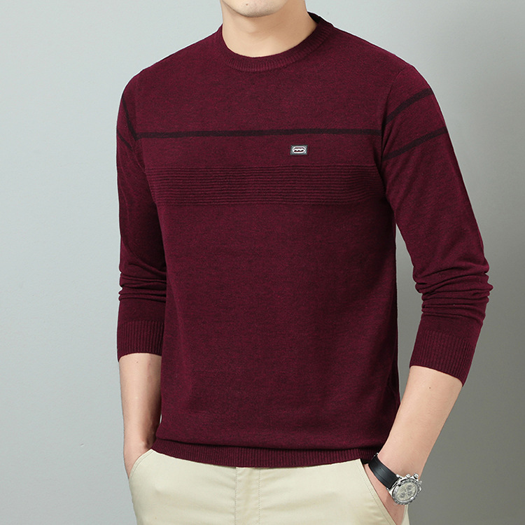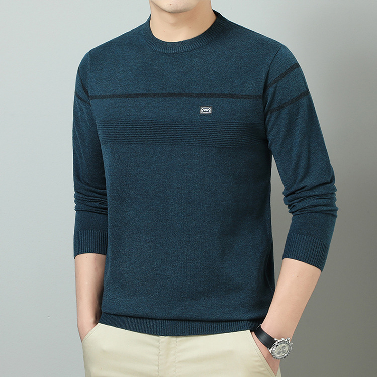 YINGAO 중년 남성 스웨터 바닥 셔츠 스트라이프 남성 니트 가을 캐주얼 새로운 얇은 스웨터 라운드 넥스토어 가기