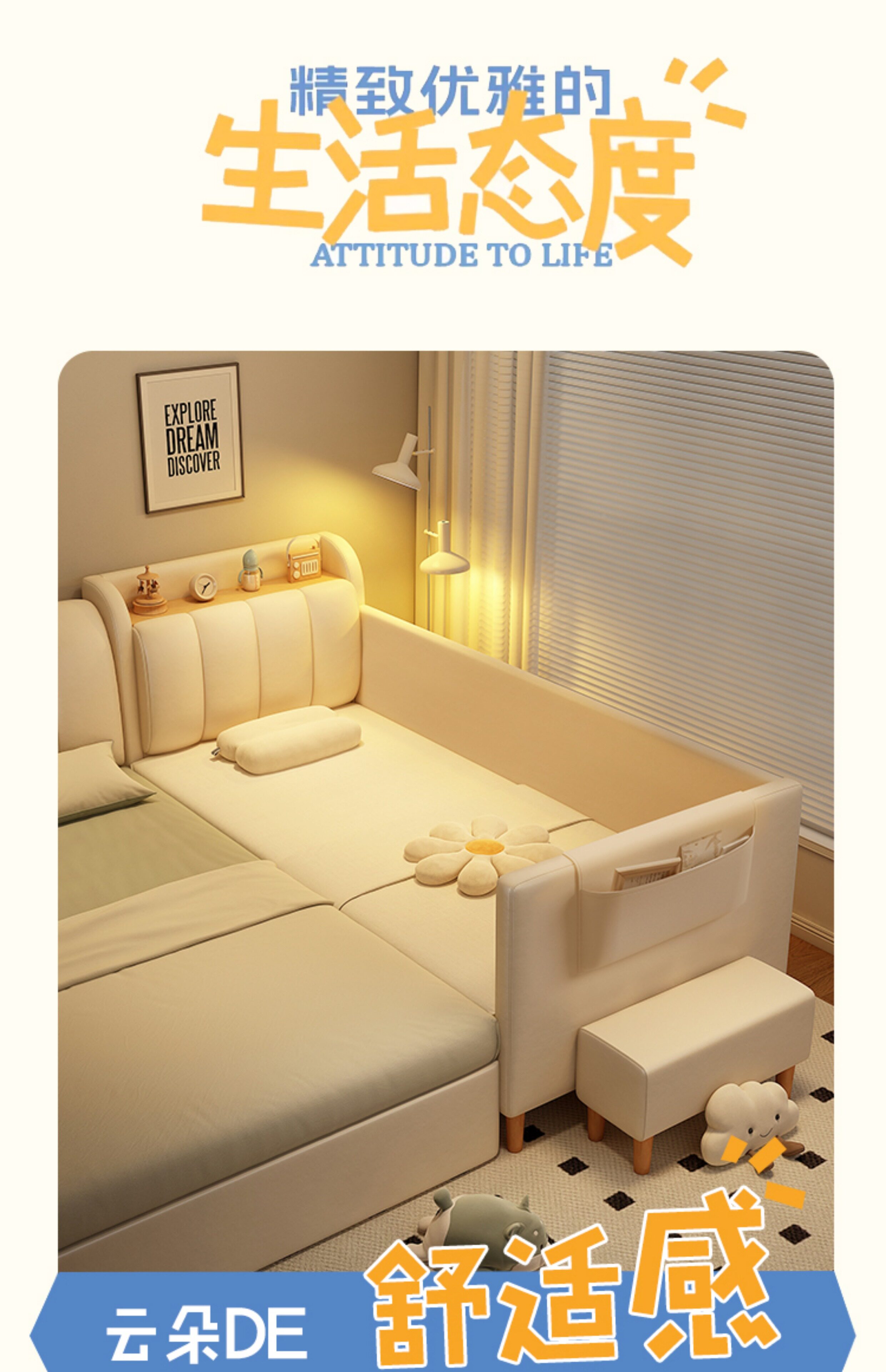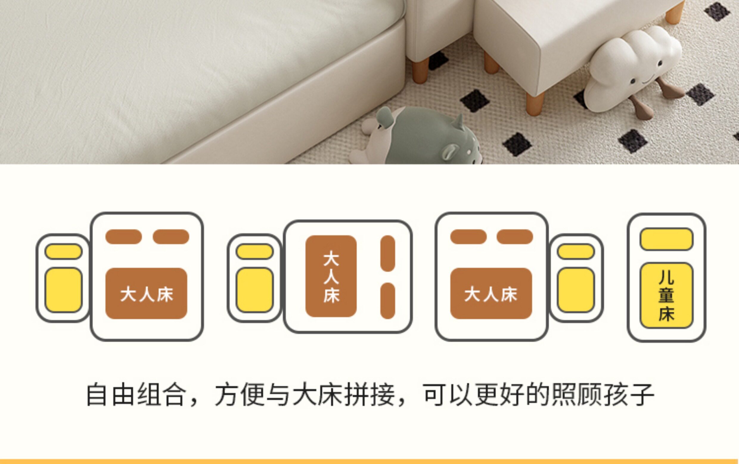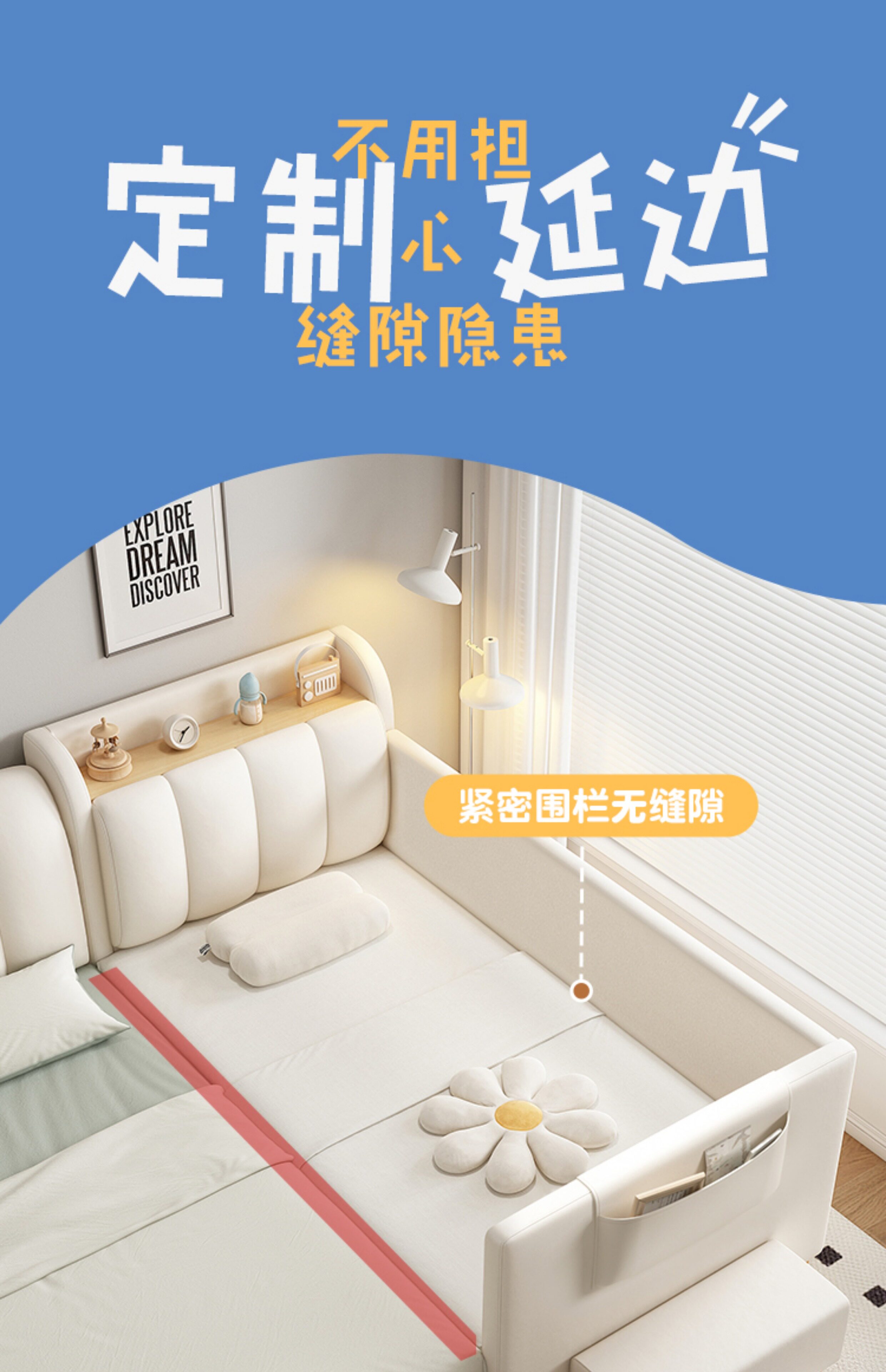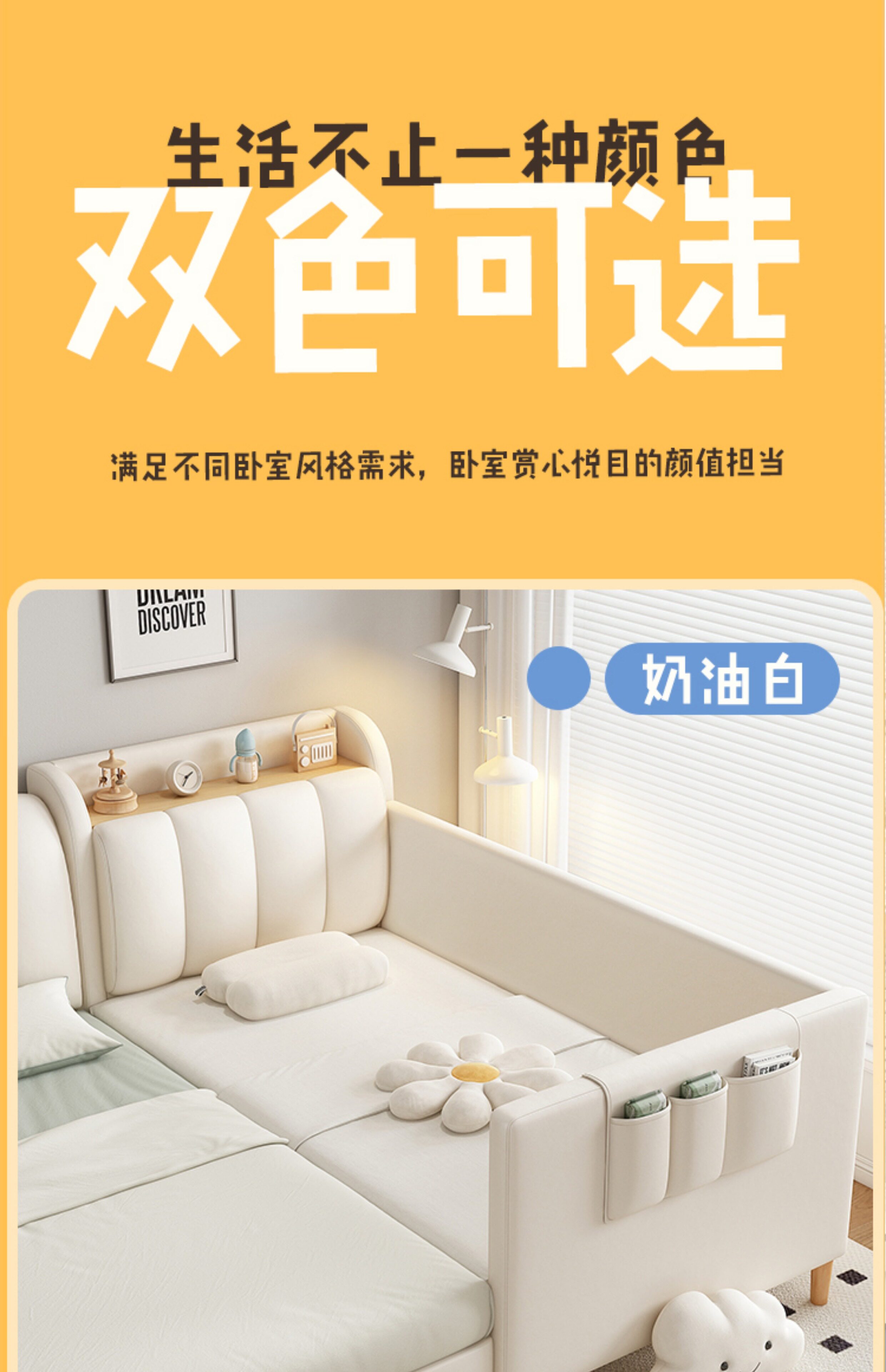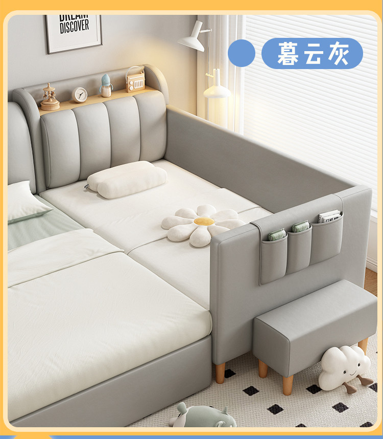 원목 어린이 침대, 침대 옆에 완벽하게 연결, 넓은 침대, 성인이 작은 침대에서 잠을 잘 수 있음, 아기 소프트백 접합 침대스토어 가기