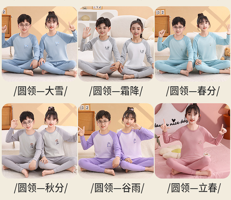 2025 가을, 겨울 순수 코튼 속옷 세트 어린이 따뜻한 기본 가을 옷과 긴팔 가정복 학생을위한 가을 바지