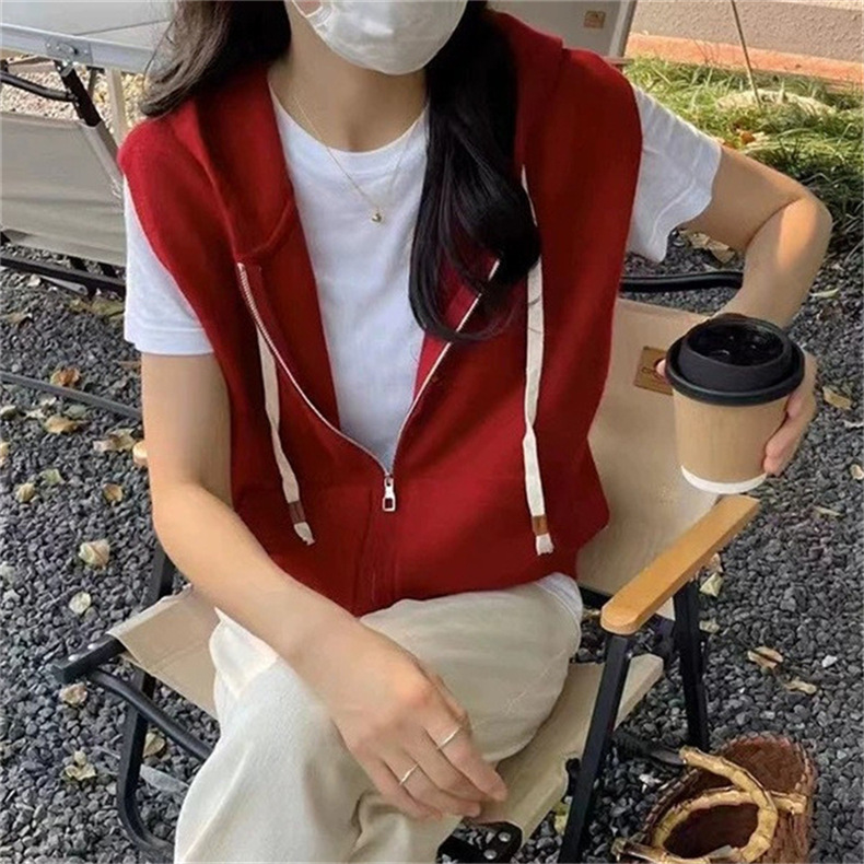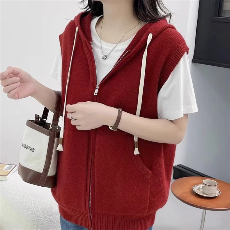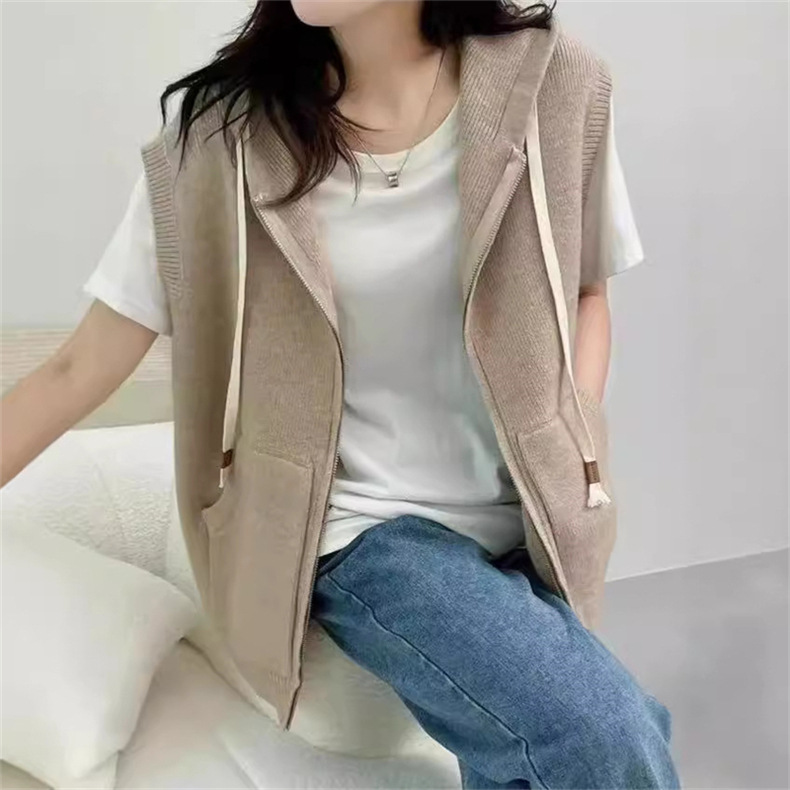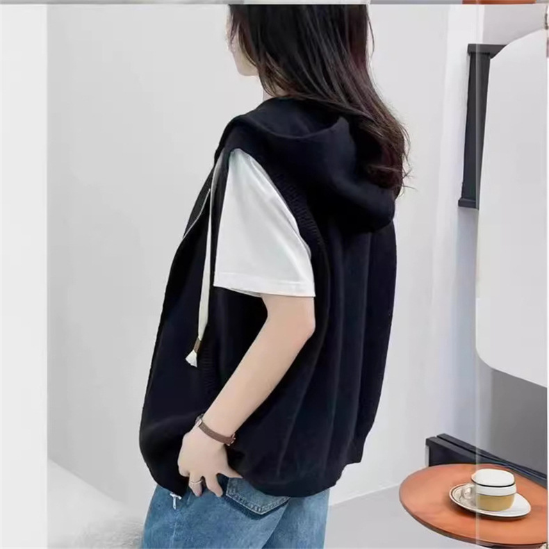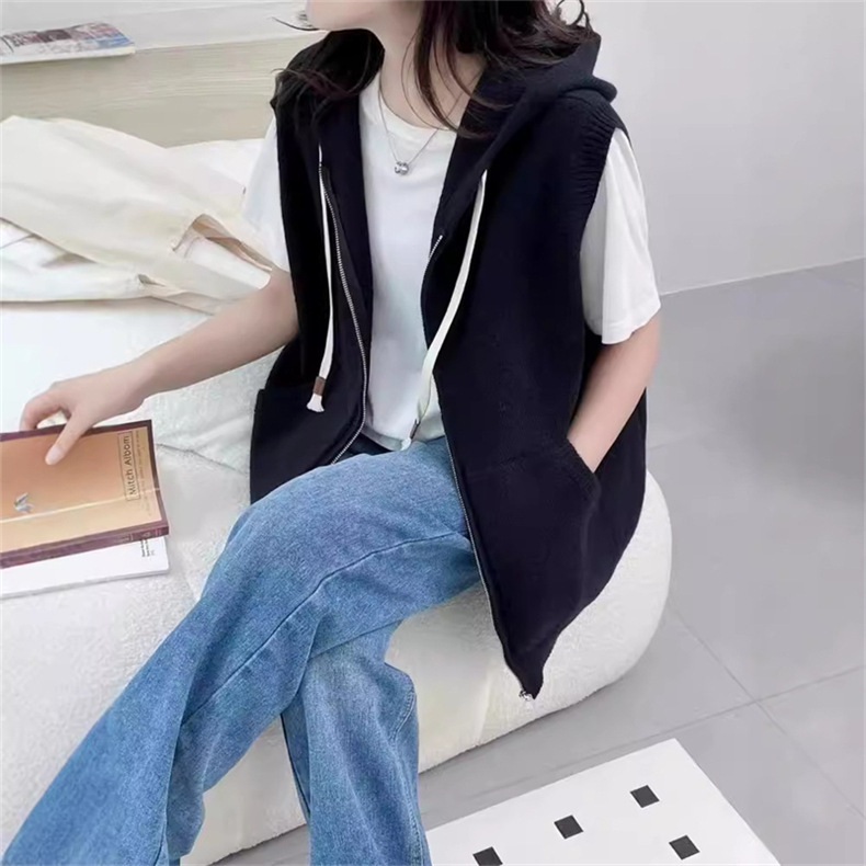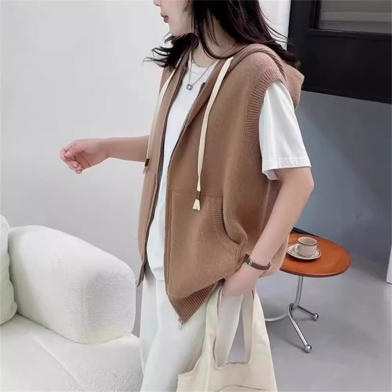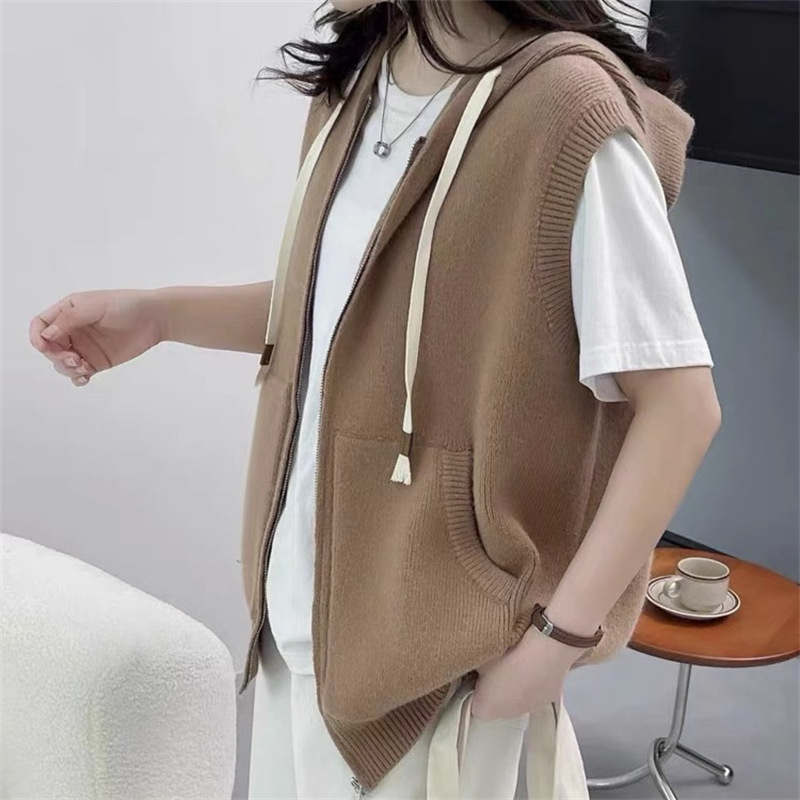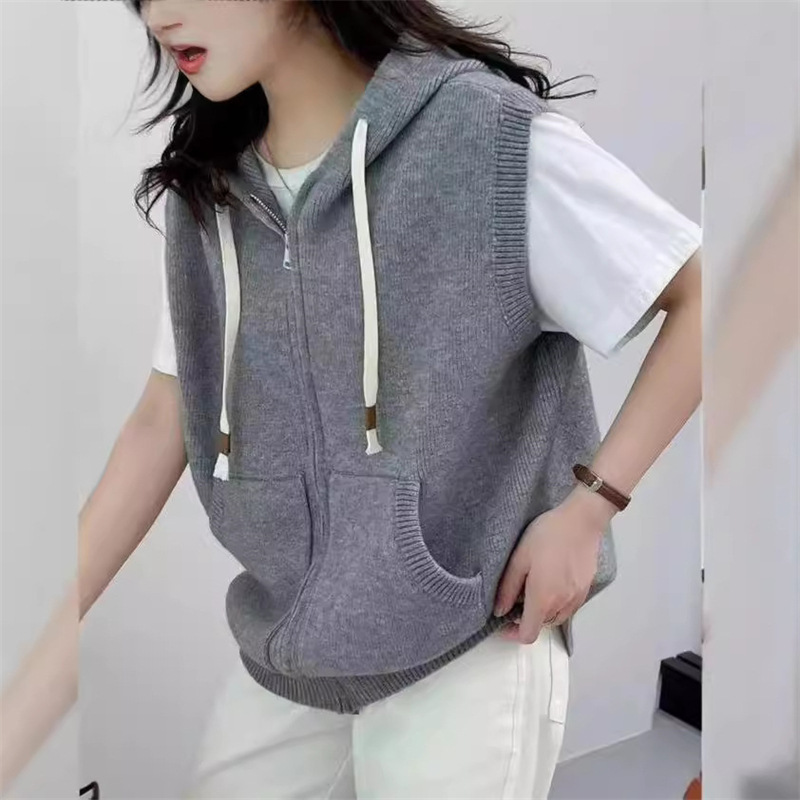 후드 지퍼 스웨터 조끼 가을, 겨울 새로운 스타일 느슨한 게으른 스타일 하이 엔드 니트 조끼 여성상의