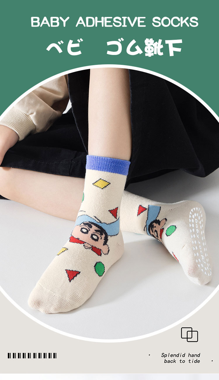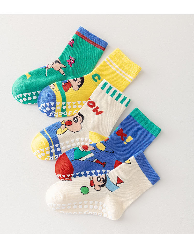 미끄럼 방지 바닥 양말, 어린이 양말, 가을 겨울 종아리 양말, 중대형 어린이 만화 소년 소녀 양말, 봄 가을 A급 면 양말