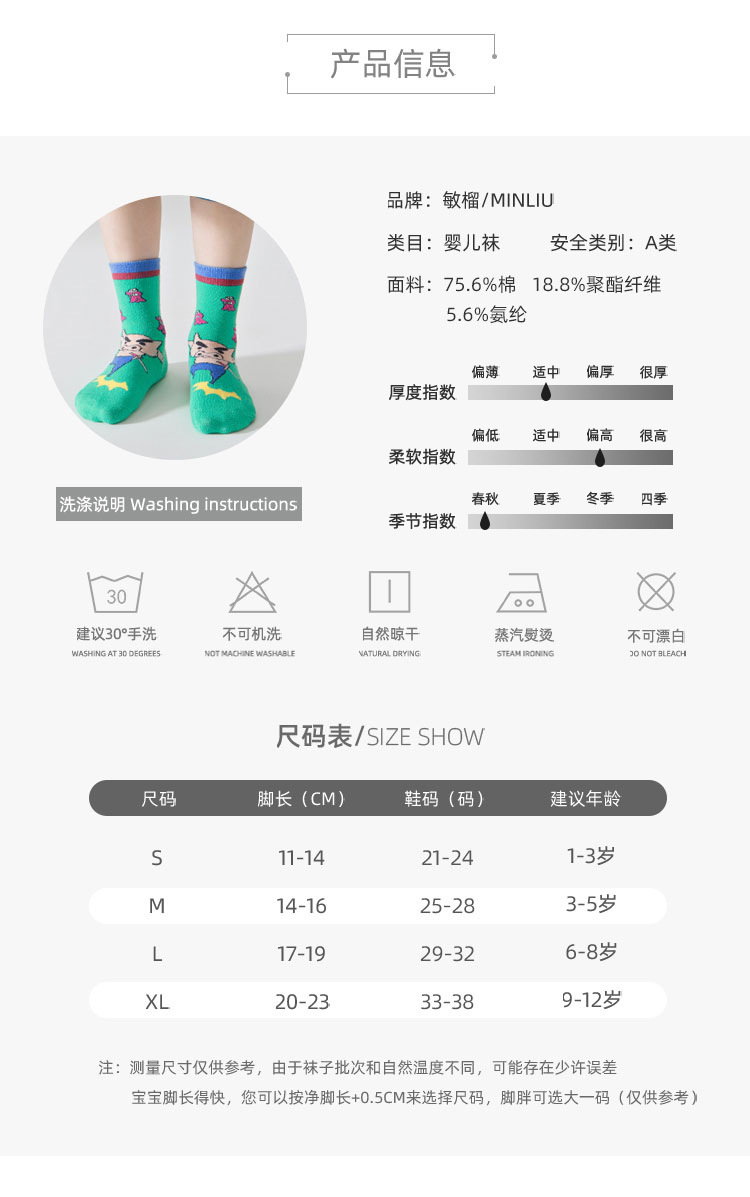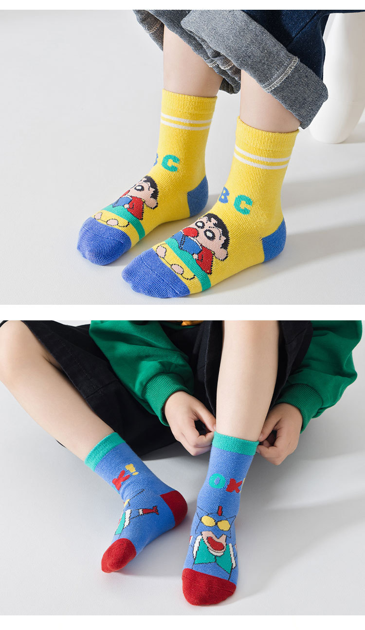 미끄럼 방지 바닥 양말, 어린이 양말, 가을 겨울 종아리 양말, 중대형 어린이 만화 소년 소녀 양말, 봄 가을 A급 면 양말스토어 가기
