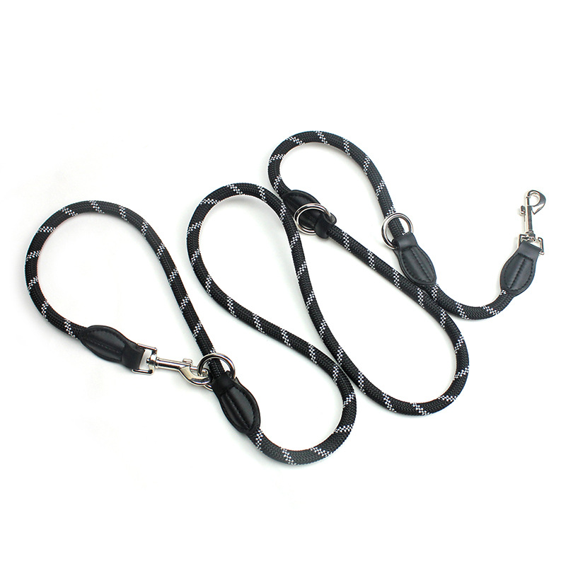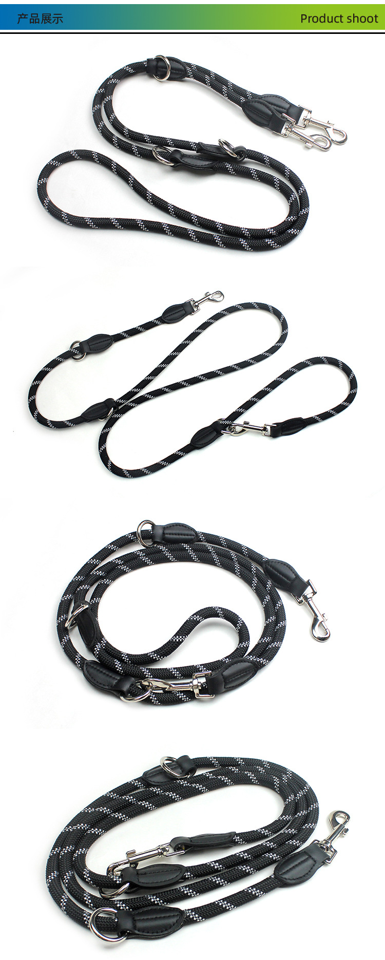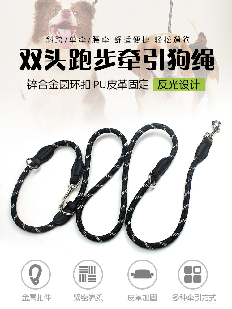 可调节牛皮扣狗狗牵引绳不勒脖涤纶编织反光双头遛狗防爆冲牵引绳스토어 가기