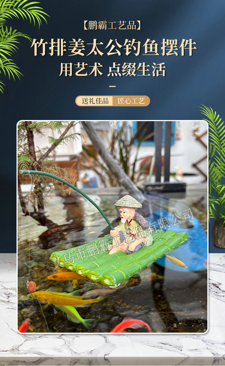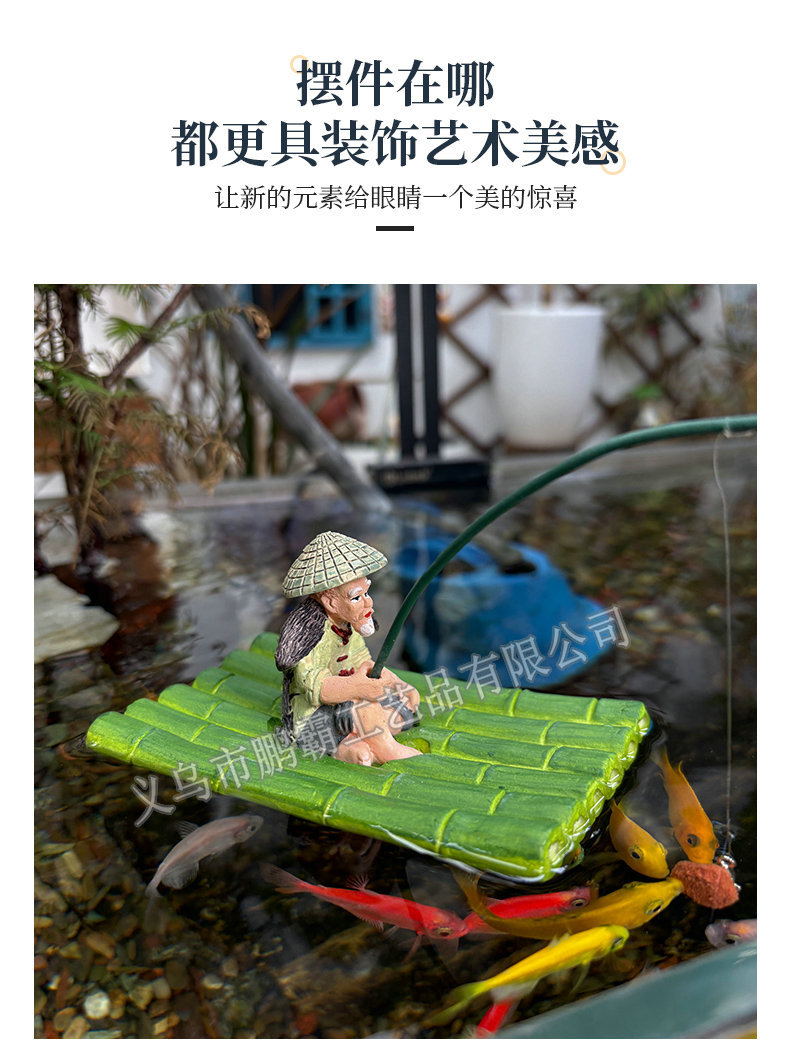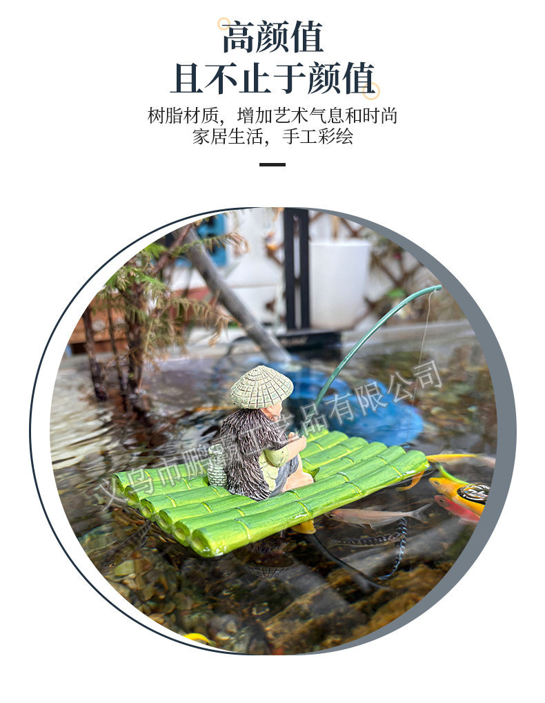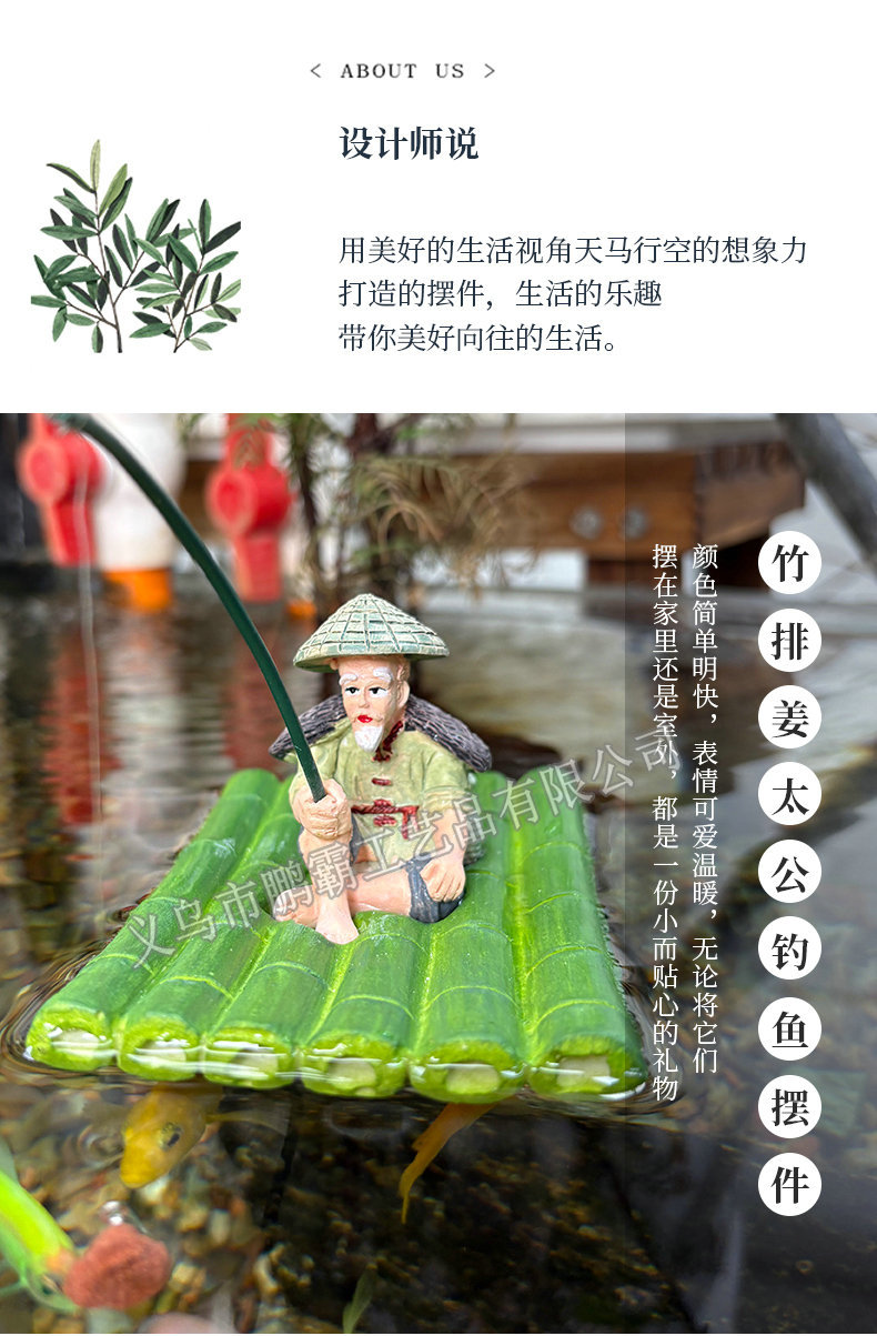 대나무 낚시 노인 Jiang Taigong 낚시 안뜰 물고기 연못 흐르는 물 흡수성 돌 분재 수조 조경 장식 장식품스토어 가기