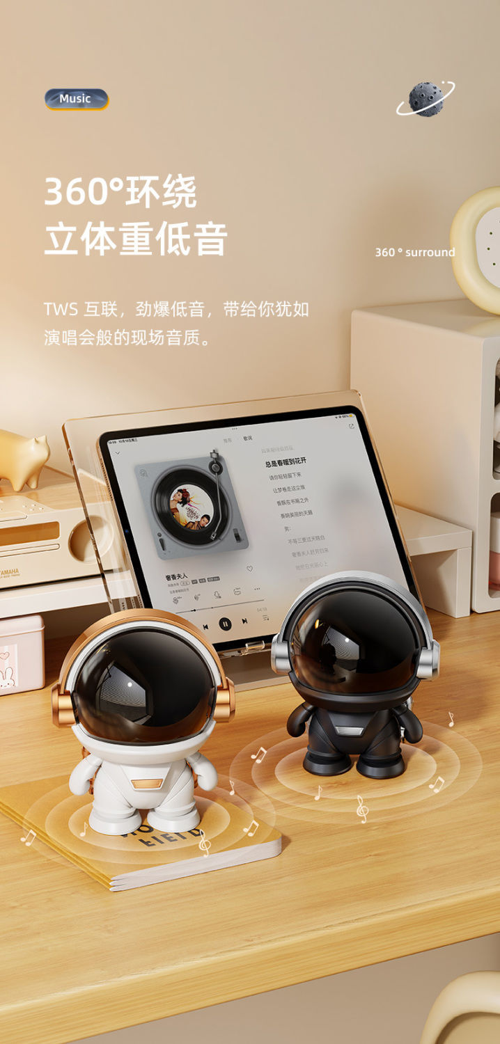 우주 비행사 블루투스 스피커 소년과 소녀를위한 고품질 귀여운 멋진 미니 오디오 서브 우퍼 선물스토어 가기