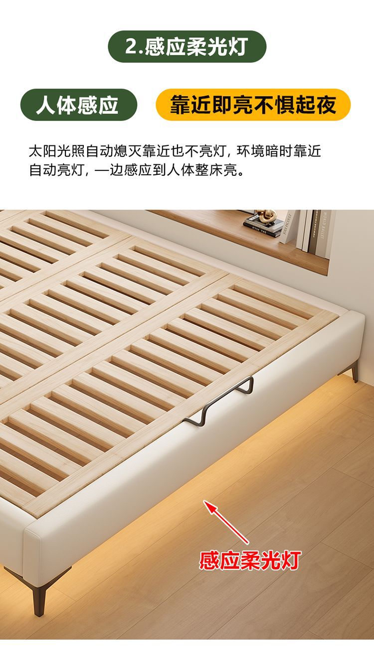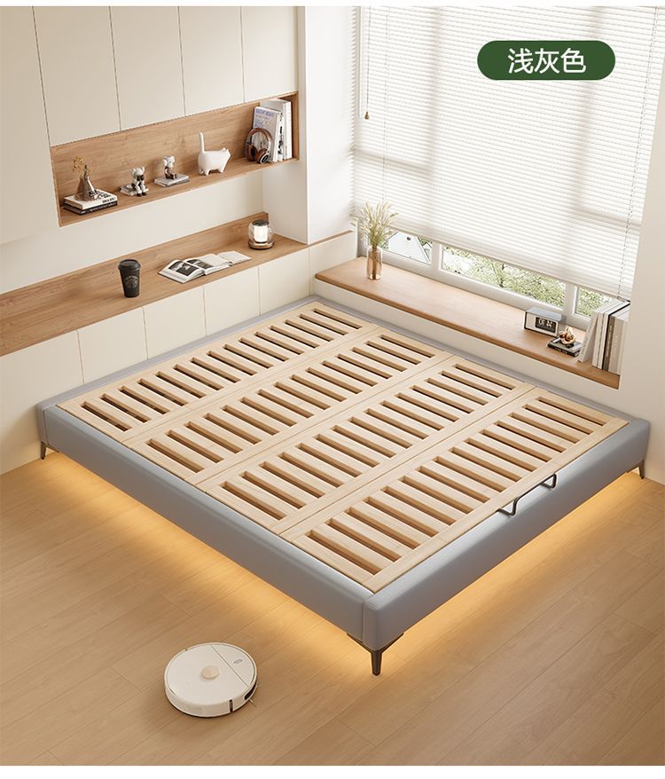 침대가 없는 침대 프레임, 두꺼운 너도밤나무 뼈대, 모던하고 심플한 모던한 이중 고양이 스크래치 가죽 원목 서스펜션 침대스토어 가기