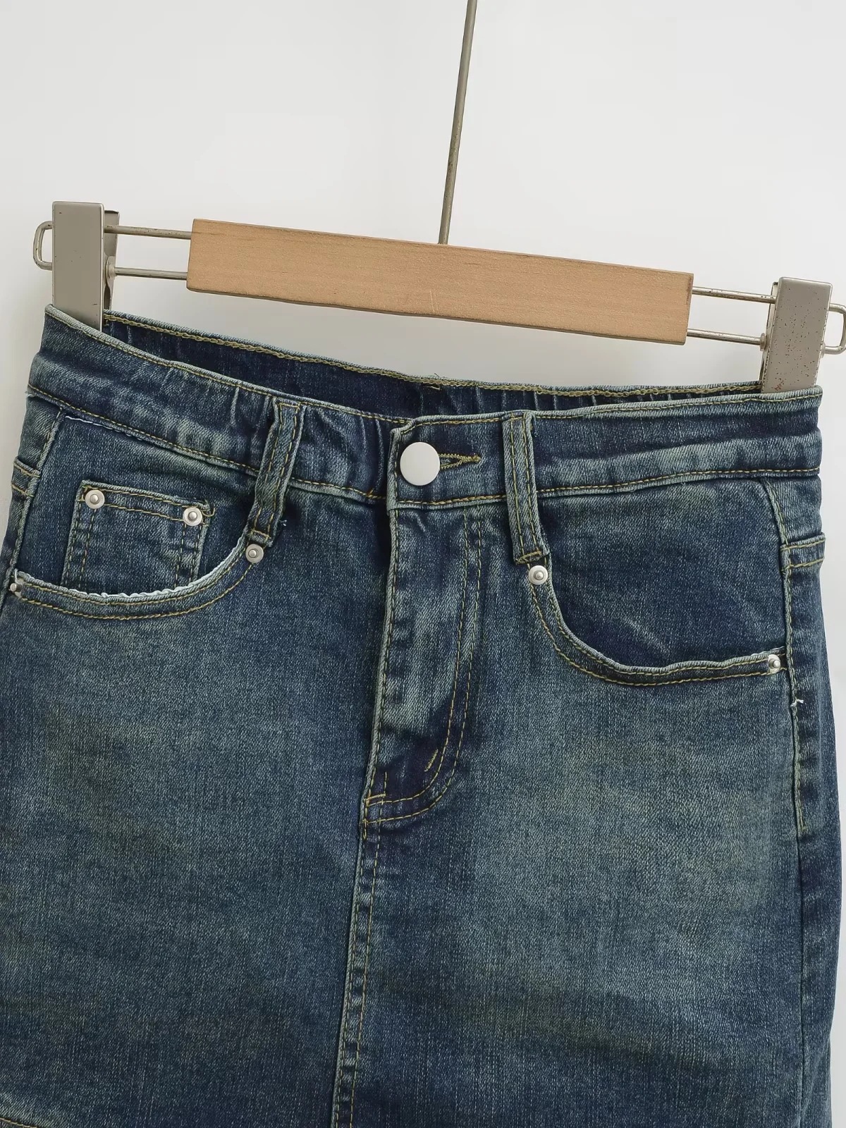 여성을 위한 기질 힙 스커트 2025 여름 새로운 스타일 기질 몸매를 보여주는 하이 웨이스트 슬리밍 데님 스커트 도매스토어 가기