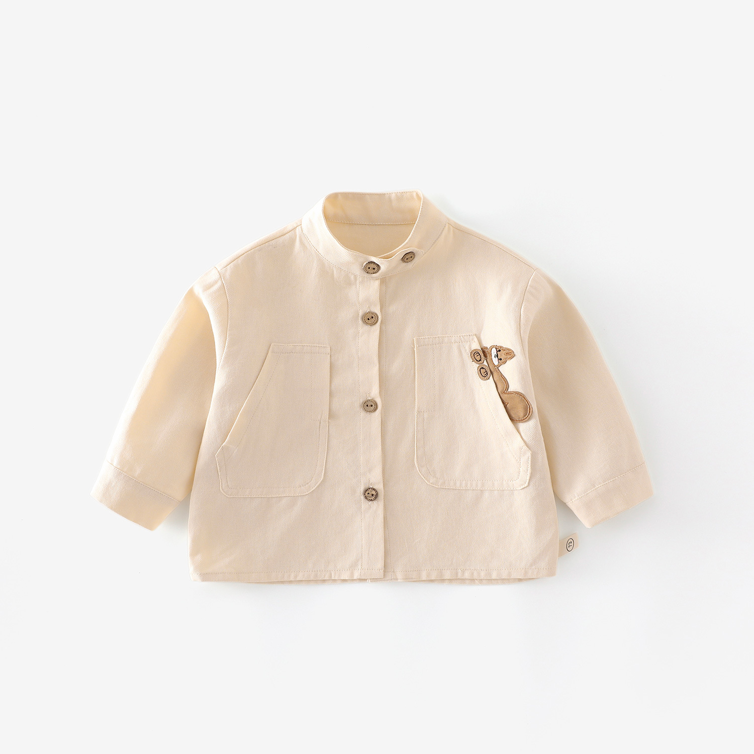 어린이 만화 캐릭터 셔츠, 가을 남아용 자수 다람쥐 스탠드 칼라 데님 셔츠, 아기 한국 스타일 가을옷