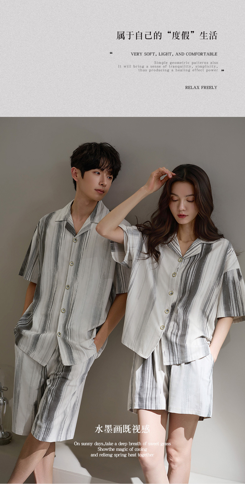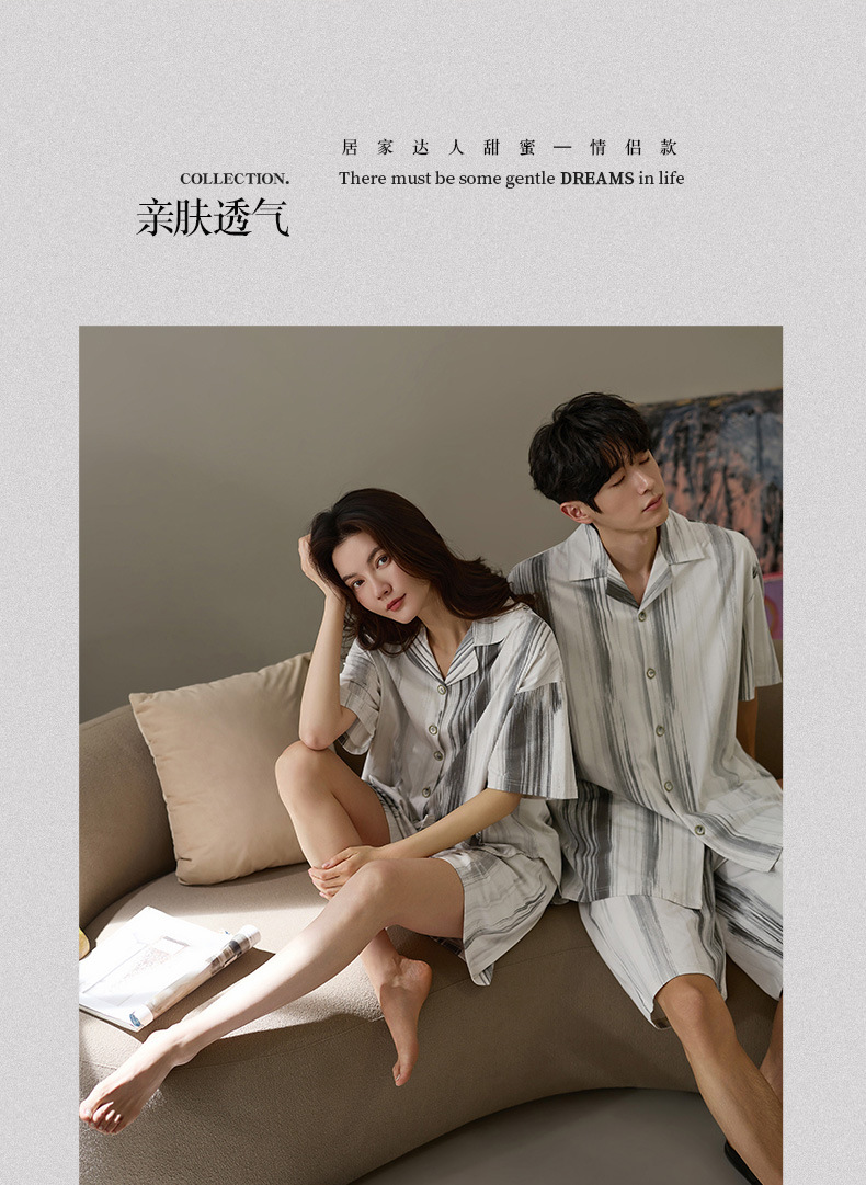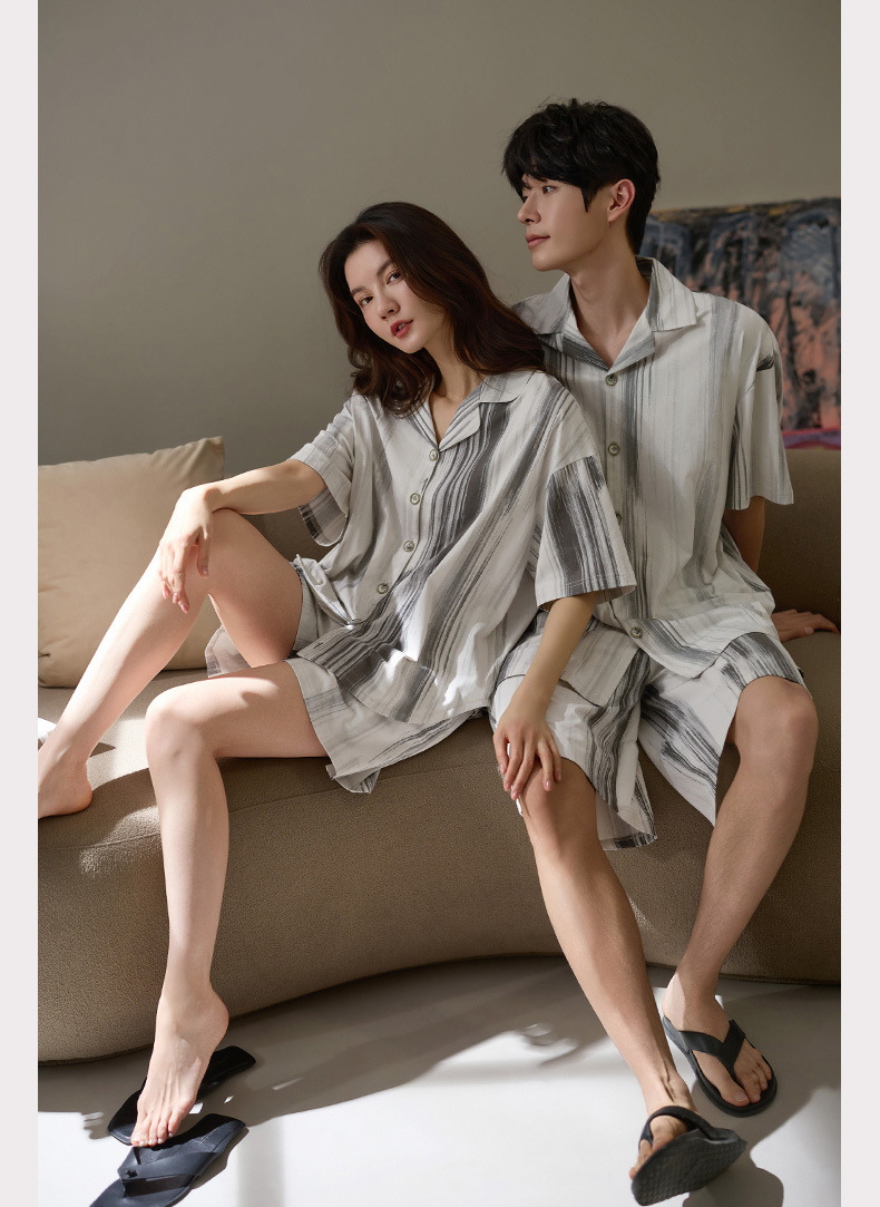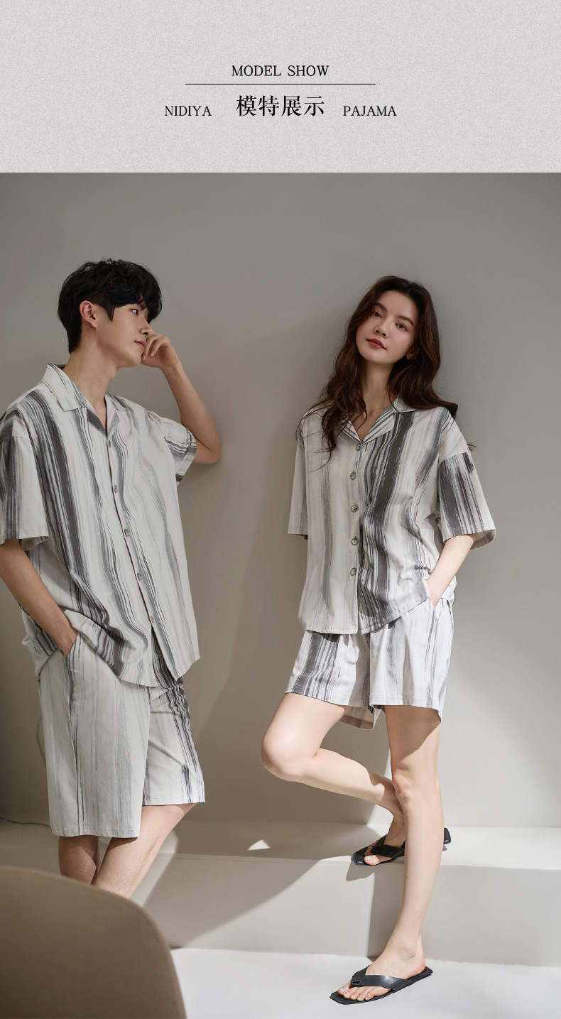 Nidiya 커플 잠옷 여성 여름 시원한 부드러운 면화 반팔 남성 간단한 카디건 반바지 홈웨어 세트스토어 가기