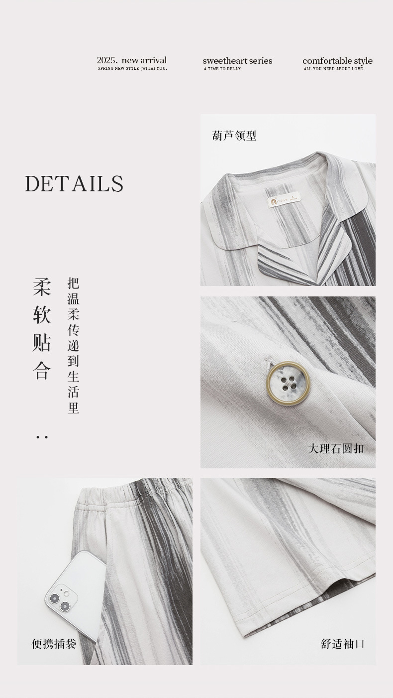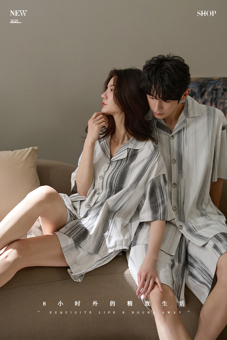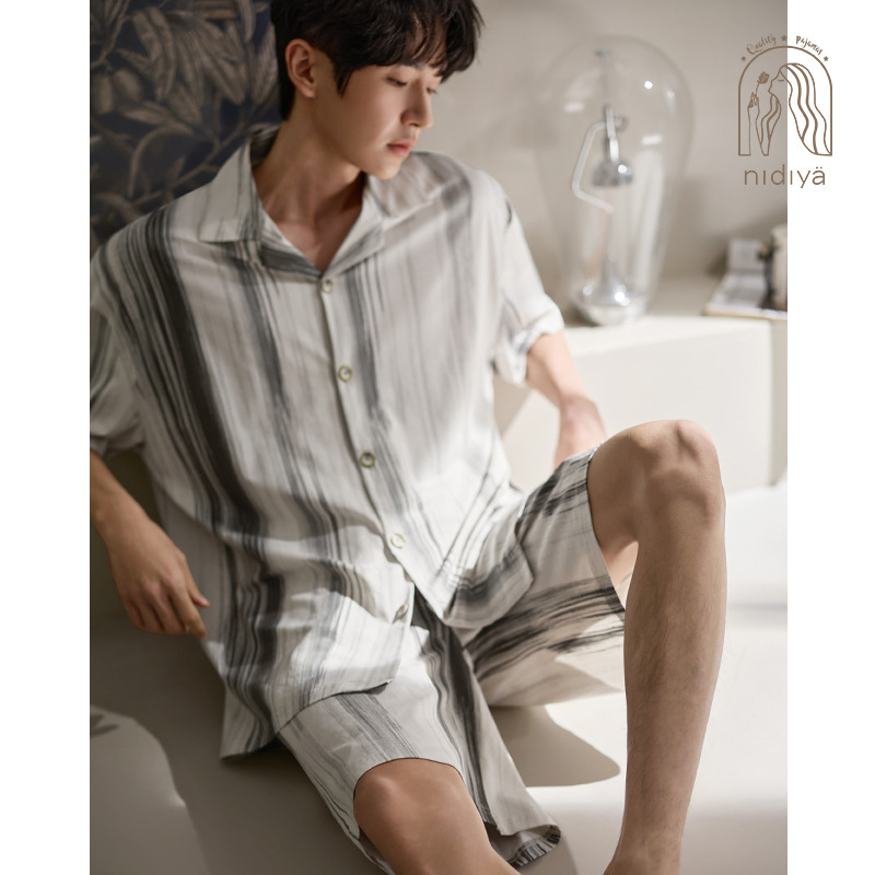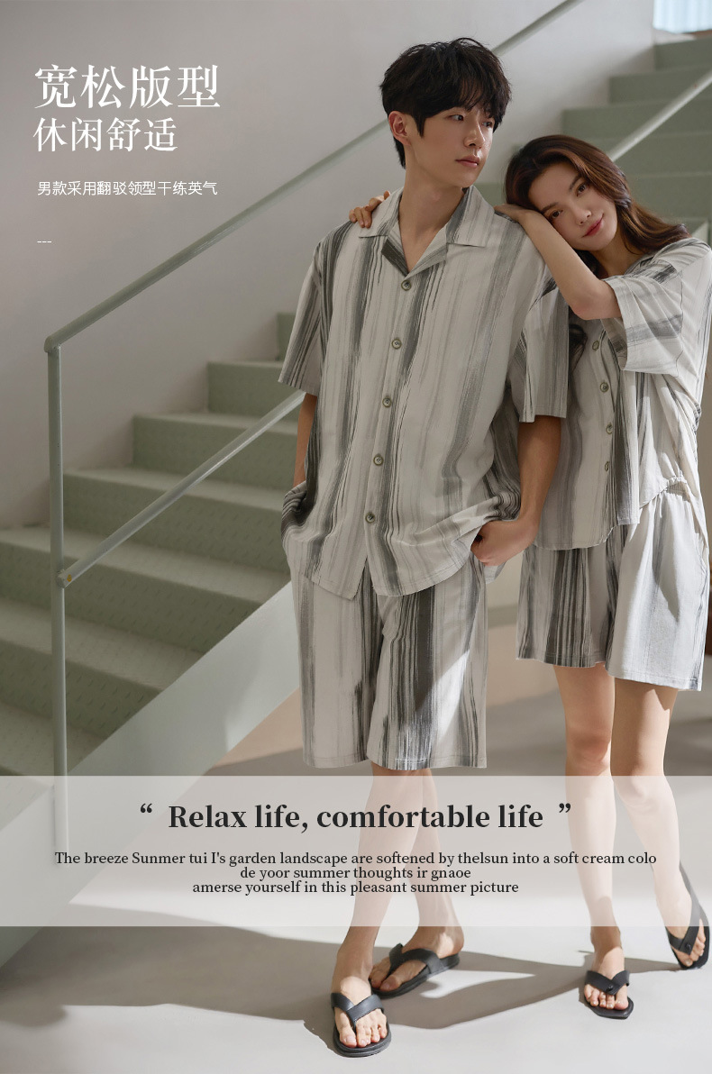 Nidiya 커플 잠옷 여성 여름 시원한 부드러운 면화 반팔 남성 간단한 카디건 반바지 홈웨어 세트스토어 가기