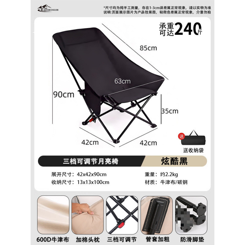 • 앉거나 누울 수 있는 겸용 - 면을 추가하여 따뜻하게 유지 [면 추가 + 다리 받침대 포함 + 3단계 조절 가능한 달 의자 - 쿨 블랙 X2]