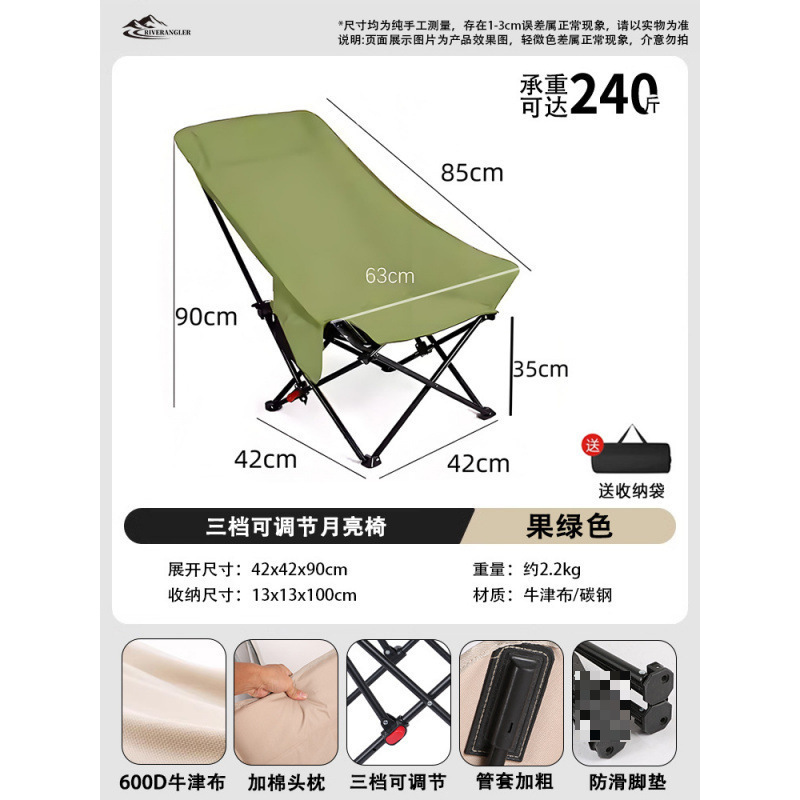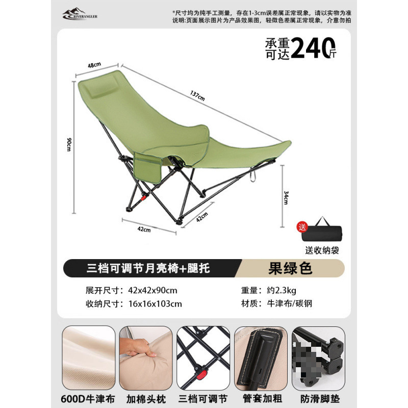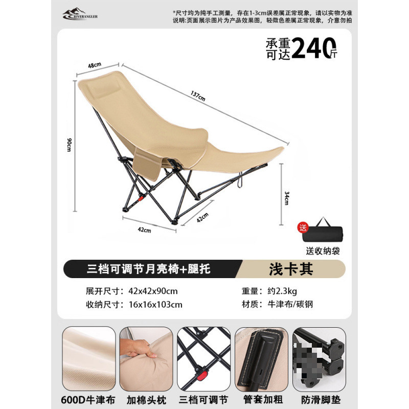 • 앉거나 눕거나 사용 가능 - 면을 추가하여 따뜻하게 유지 [면 추가 + 다리 받침대 포함 + 3단계 조절 가능한 달 의자 - 라이트 카키]