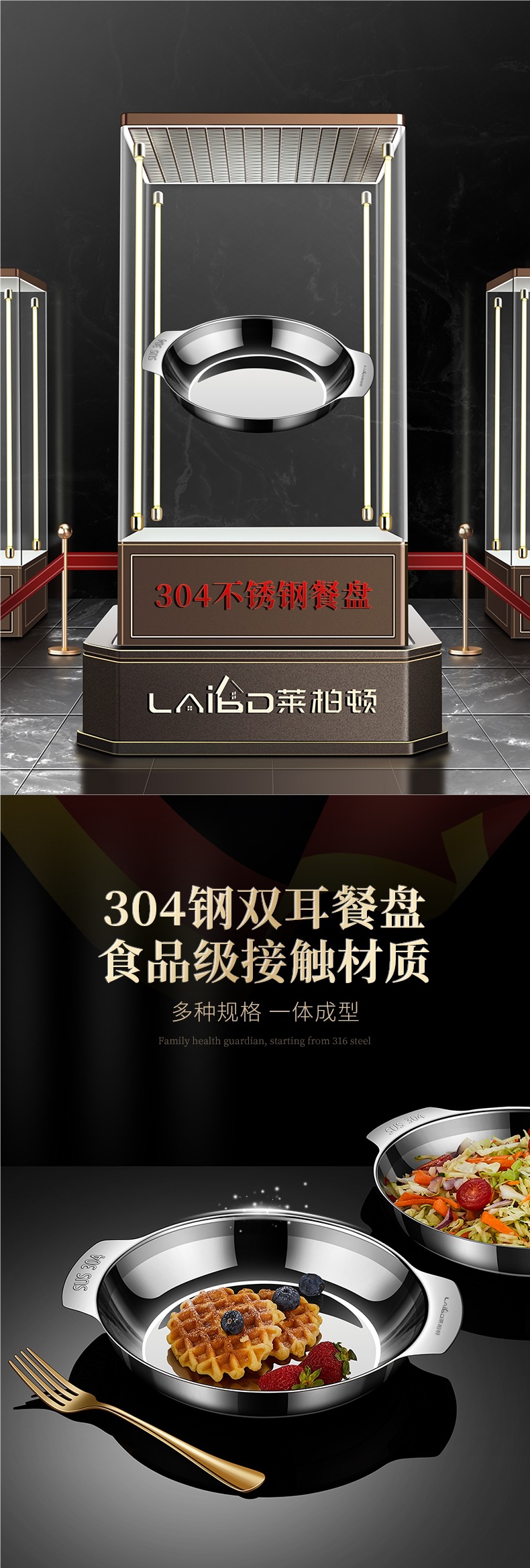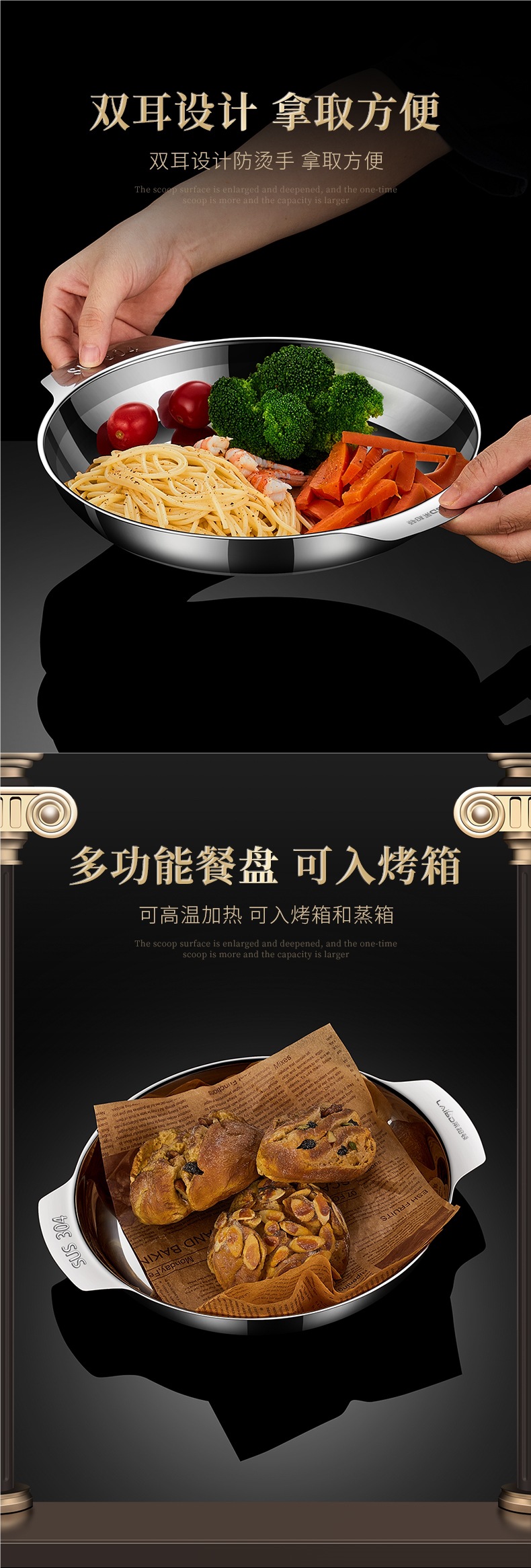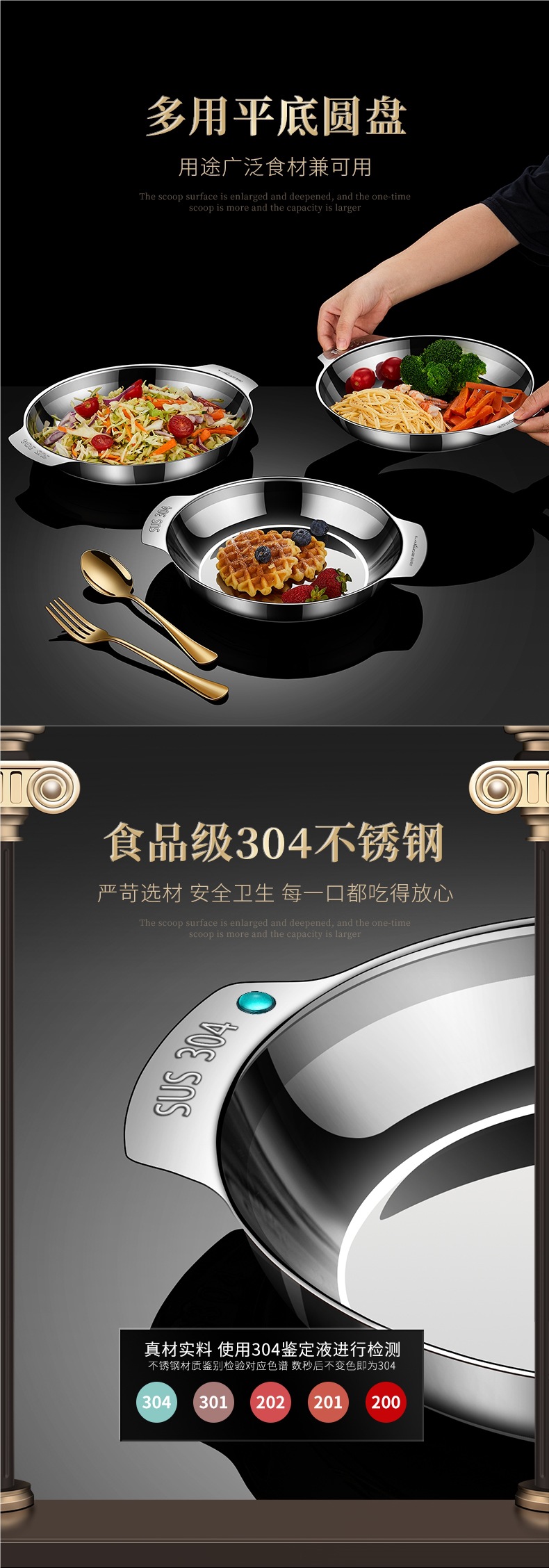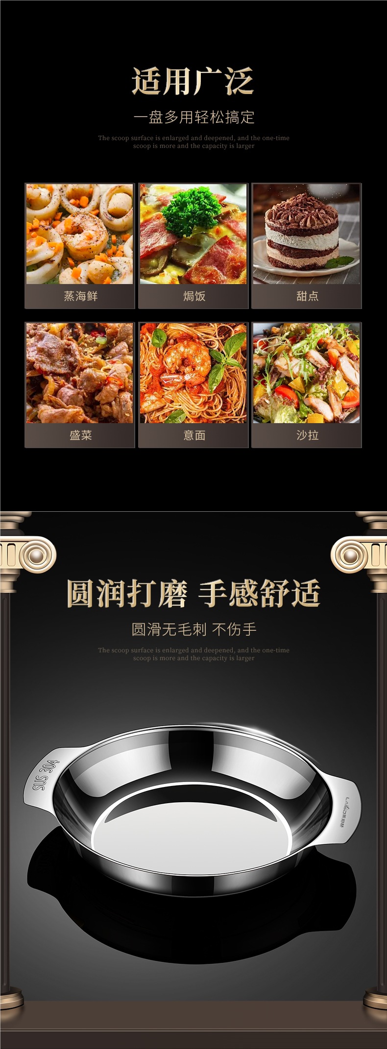 加厚不锈钢双耳平底干锅盘子海鲜饭锅盘小龙虾托盘韩式烤盘意面盘