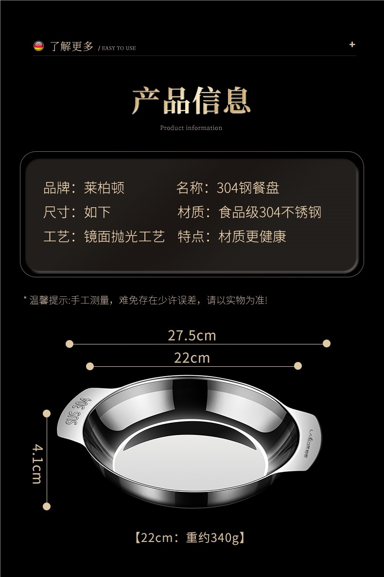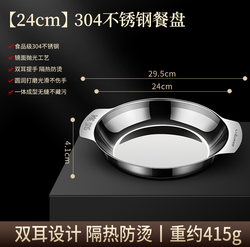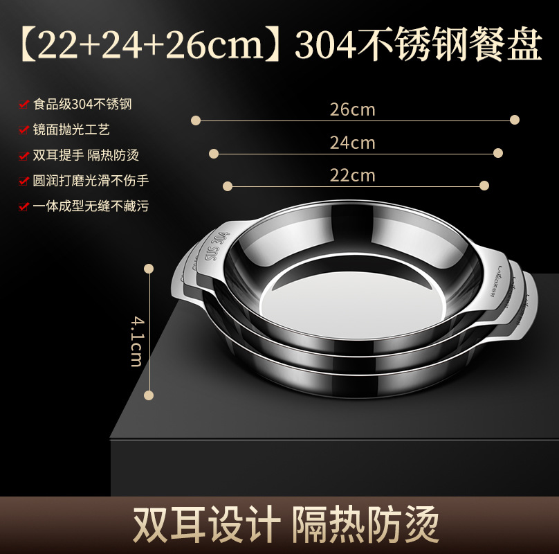 • 【22cm+24cm+26cm】不锈钢餐盘三件套