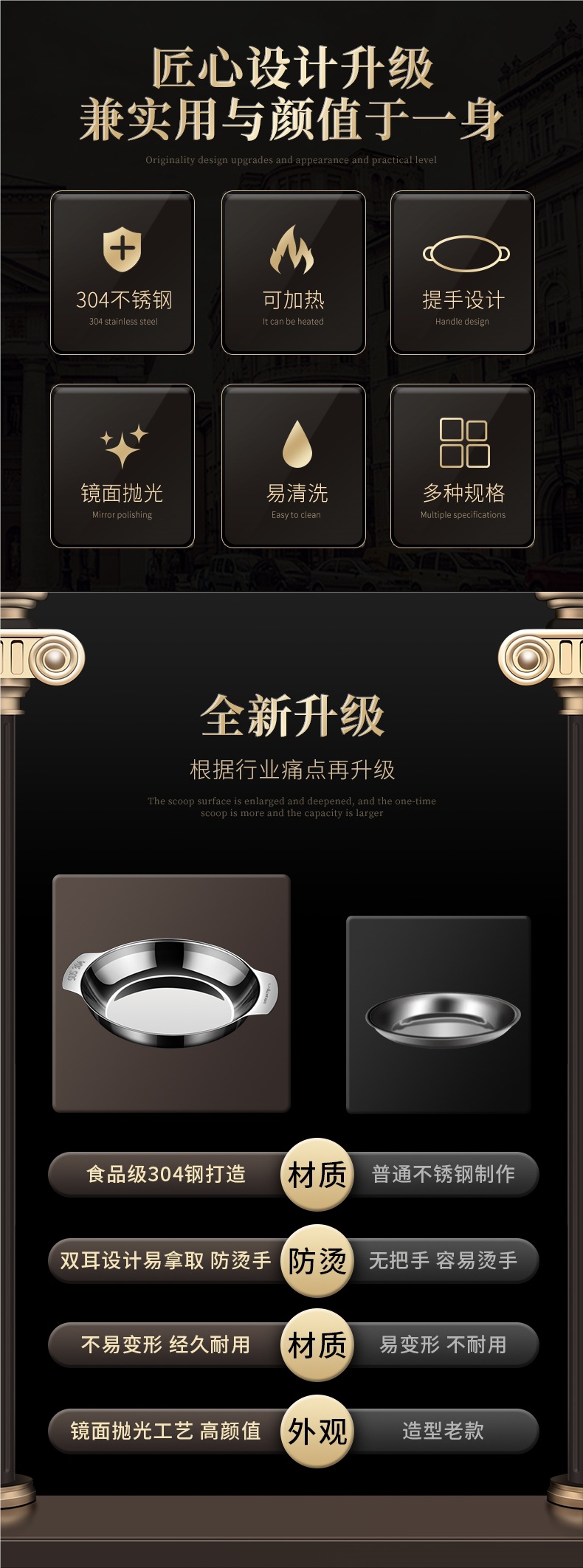 加厚不锈钢双耳平底干锅盘子海鲜饭锅盘小龙虾托盘韩式烤盘意面盘스토어 가기