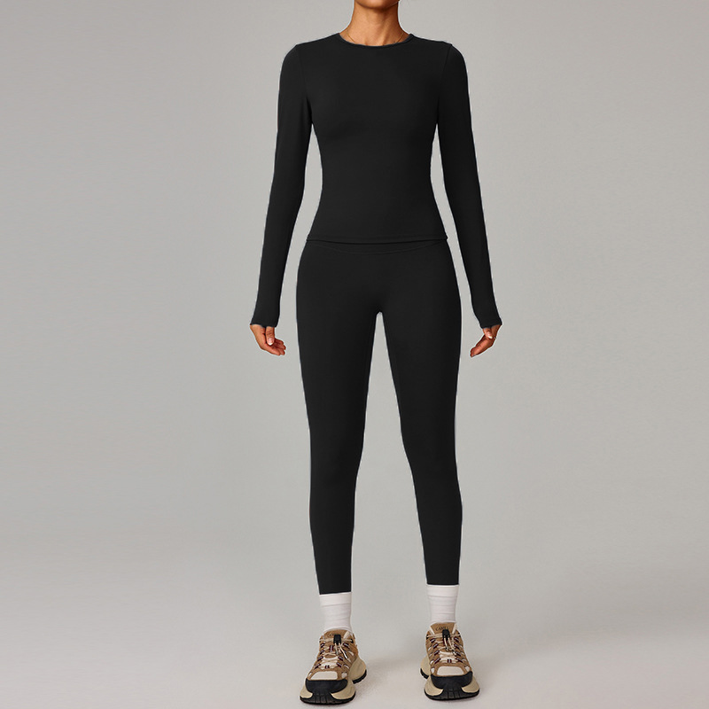 국경 간 유럽과 미국의 꽉 끼는 기모 요가 슈트 속건성 피트니스웨어 여성용 겨울 야외 달리기 스포츠 슈트 8519스토어 가기
