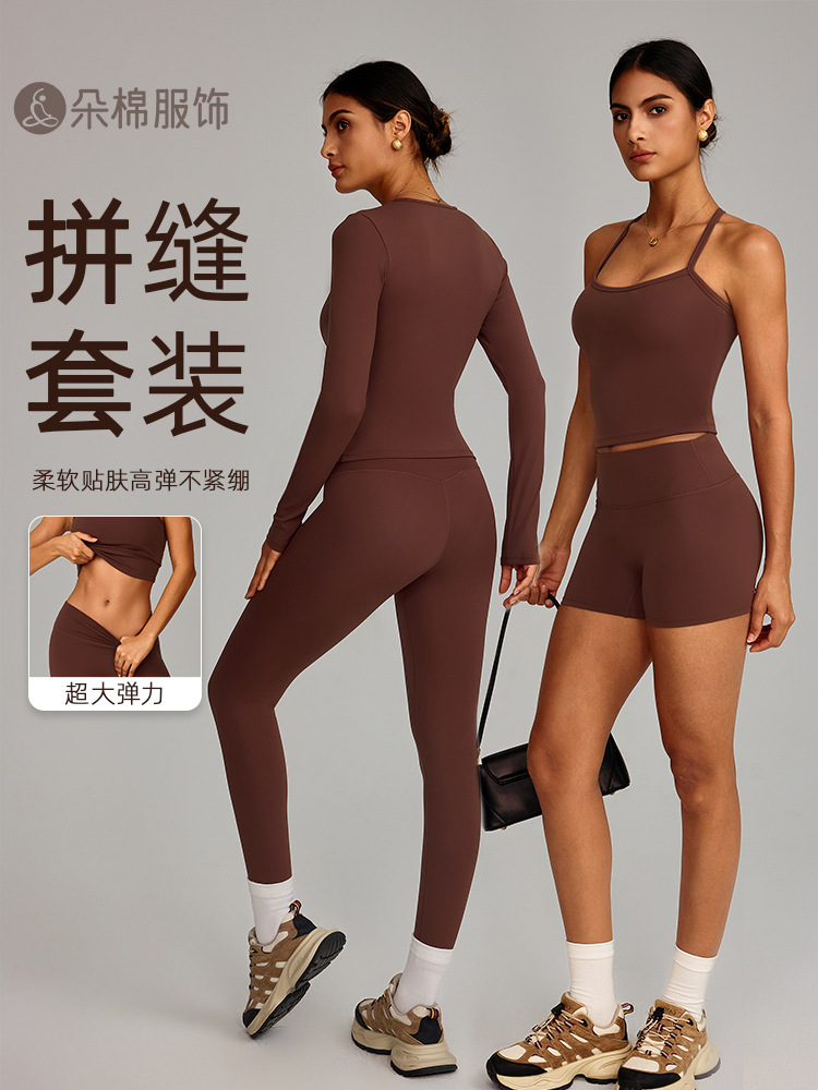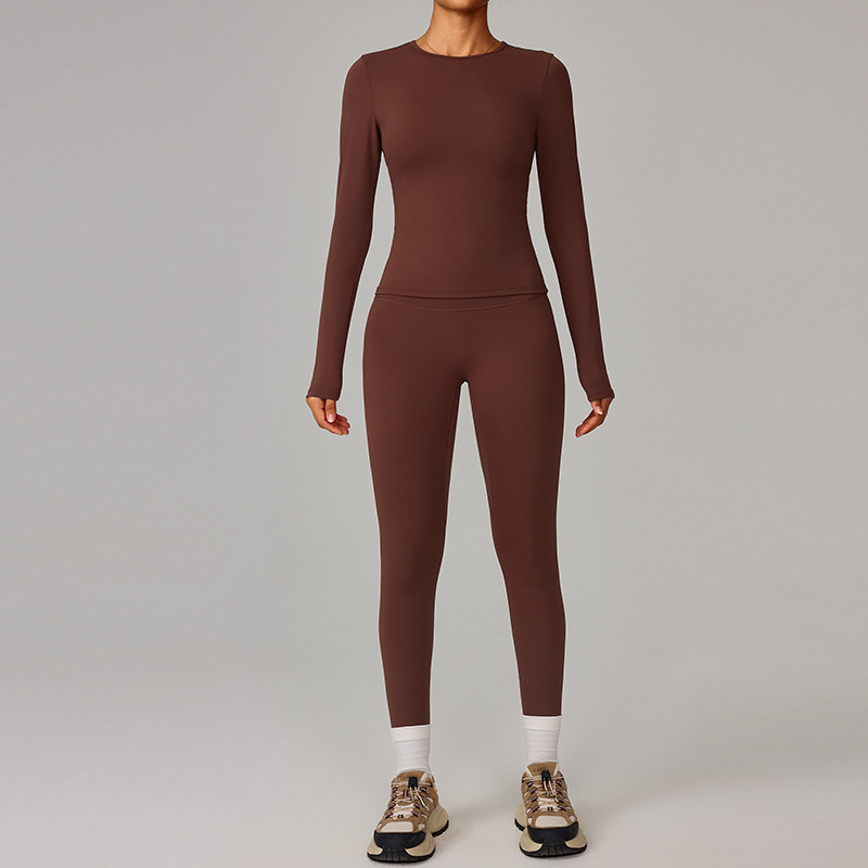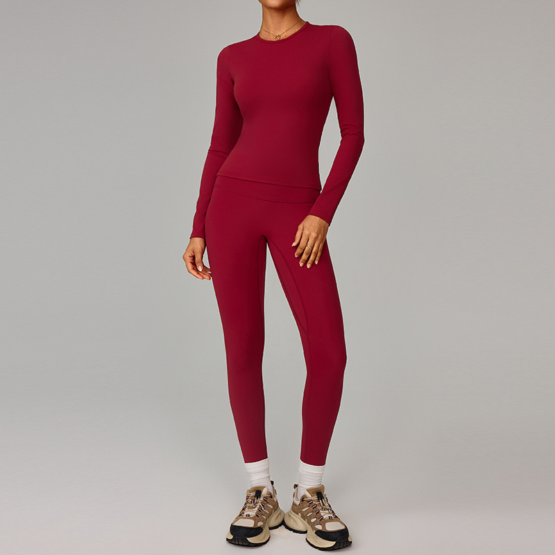 국경 간 유럽과 미국의 꽉 끼는 기모 요가 슈트 속건성 피트니스웨어 여성용 겨울 야외 달리기 스포츠 슈트 8519