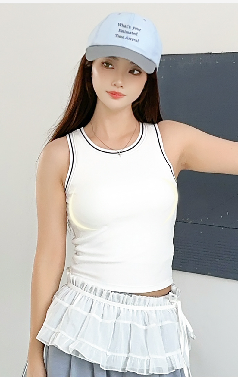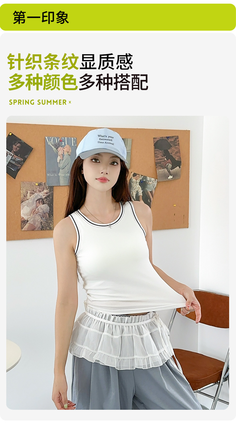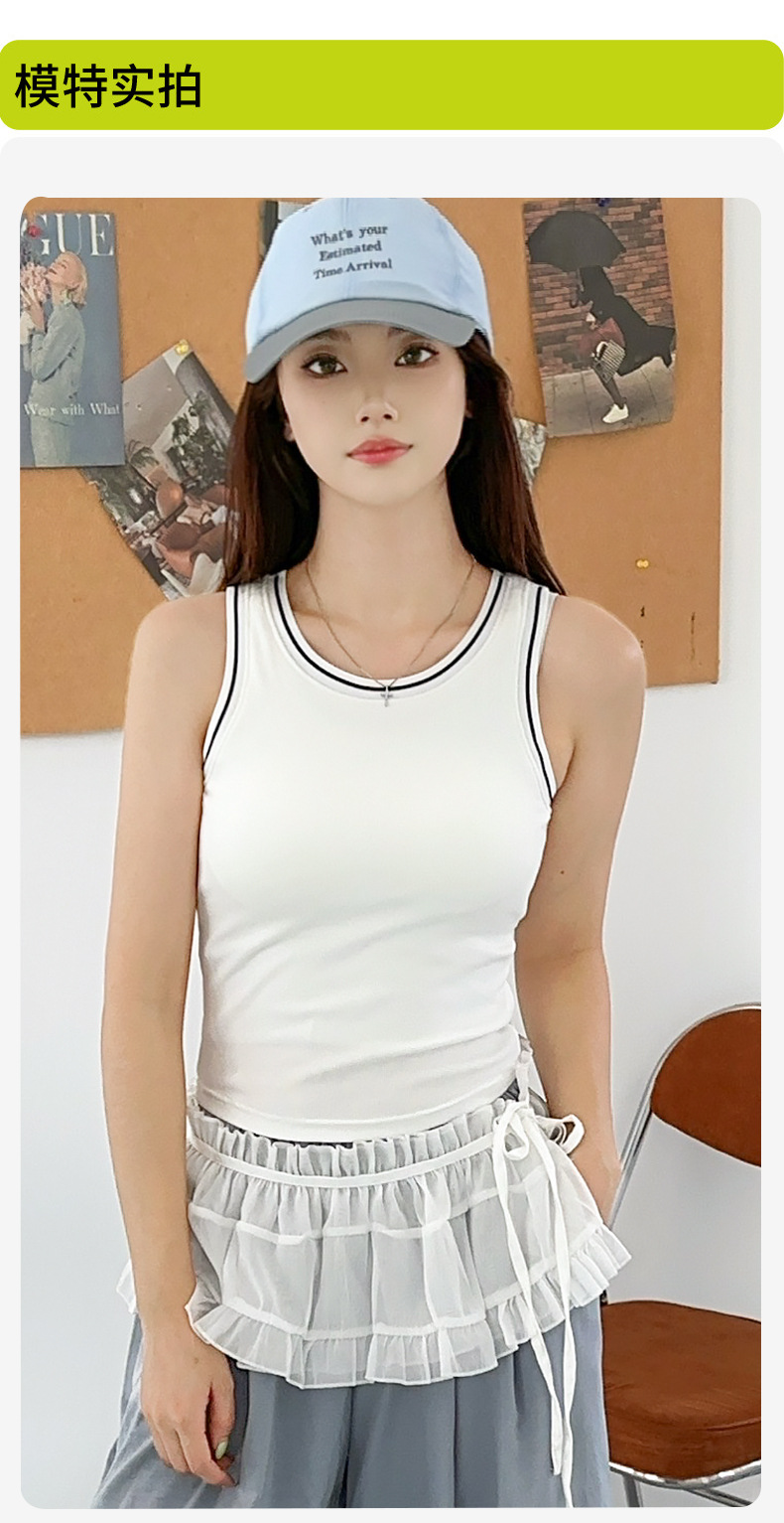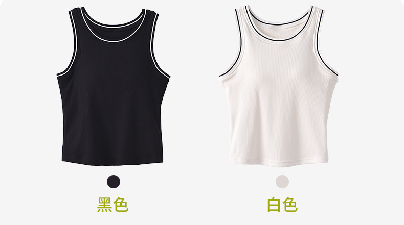 새로운 스타일의 스레드 네크라인 흑백 대비 색상 간단한 리오셀 조끼 여성용 서스펜더 가슴 패드 포함 외부 조끼스토어 가기