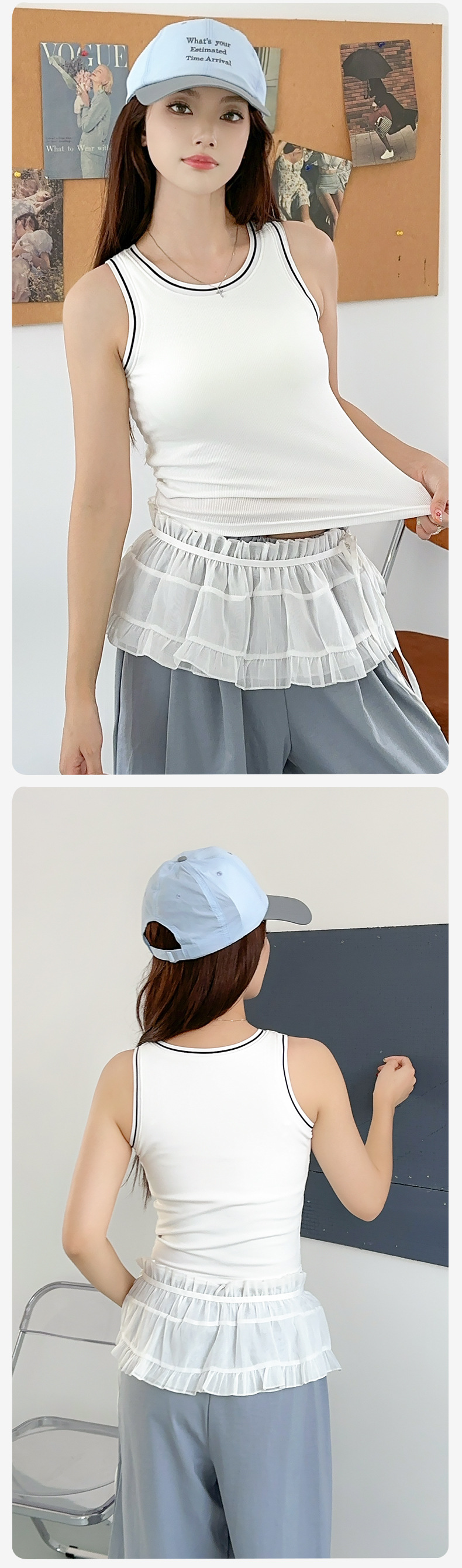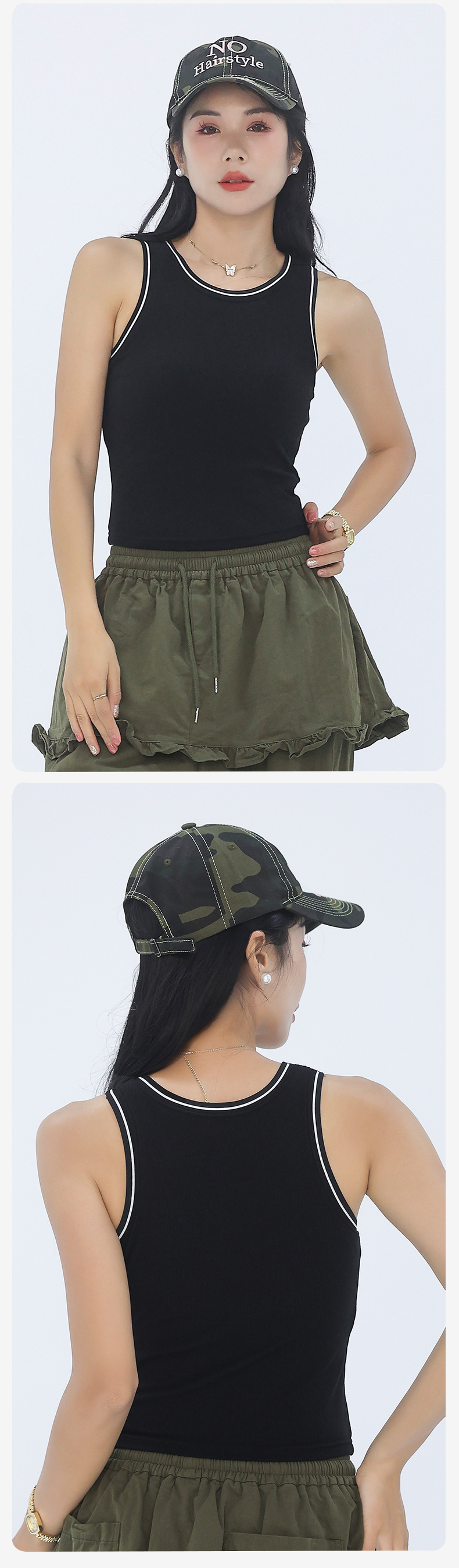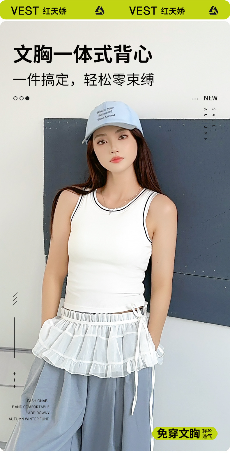 새로운 스타일의 스레드 네크라인 흑백 대비 색상 간단한 리오셀 조끼 여성용 서스펜더 가슴 패드 포함 외부 조끼스토어 가기