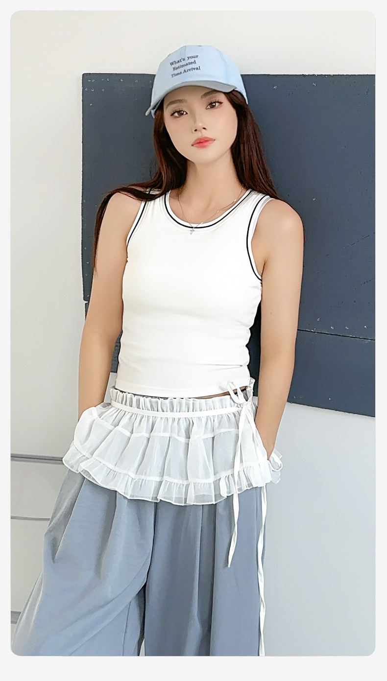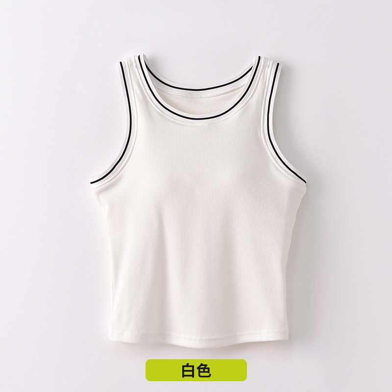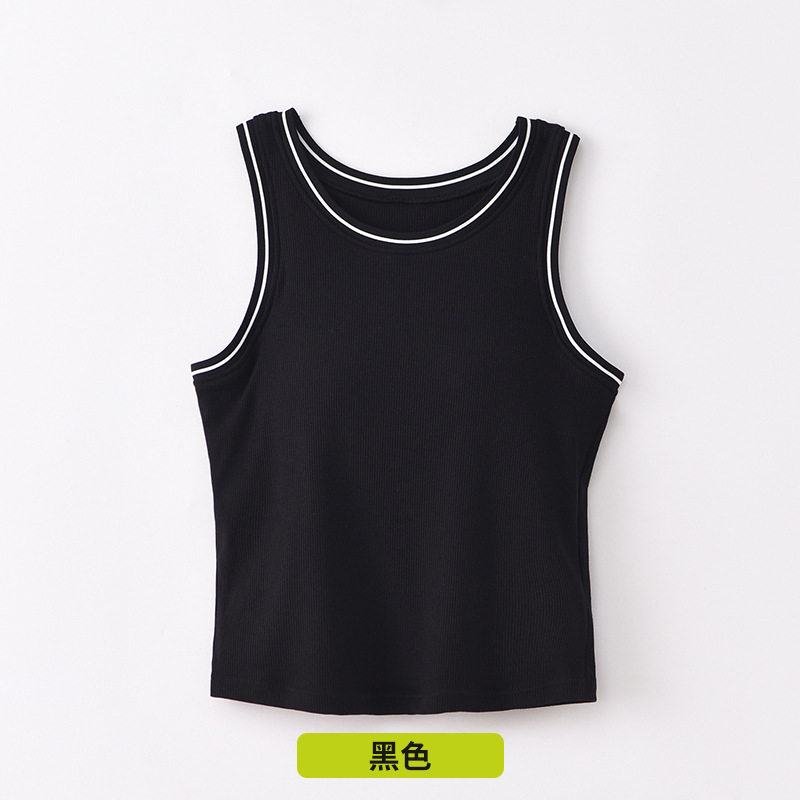 새로운 스타일의 스레드 네크라인 흑백 대비 색상 간단한 리오셀 조끼 여성용 서스펜더 가슴 패드 포함 외부 조끼