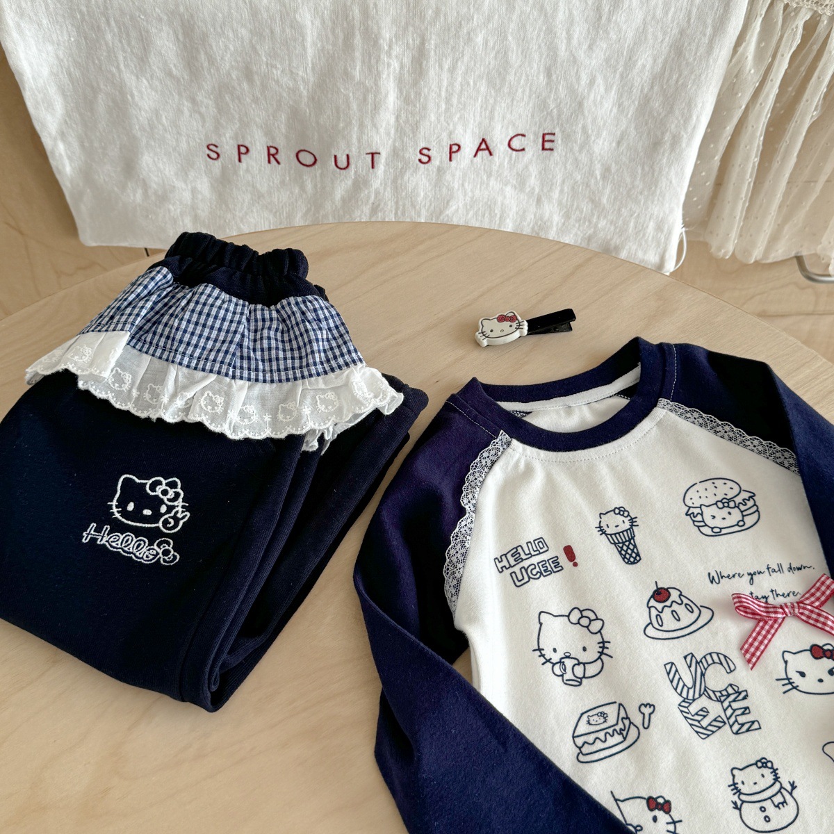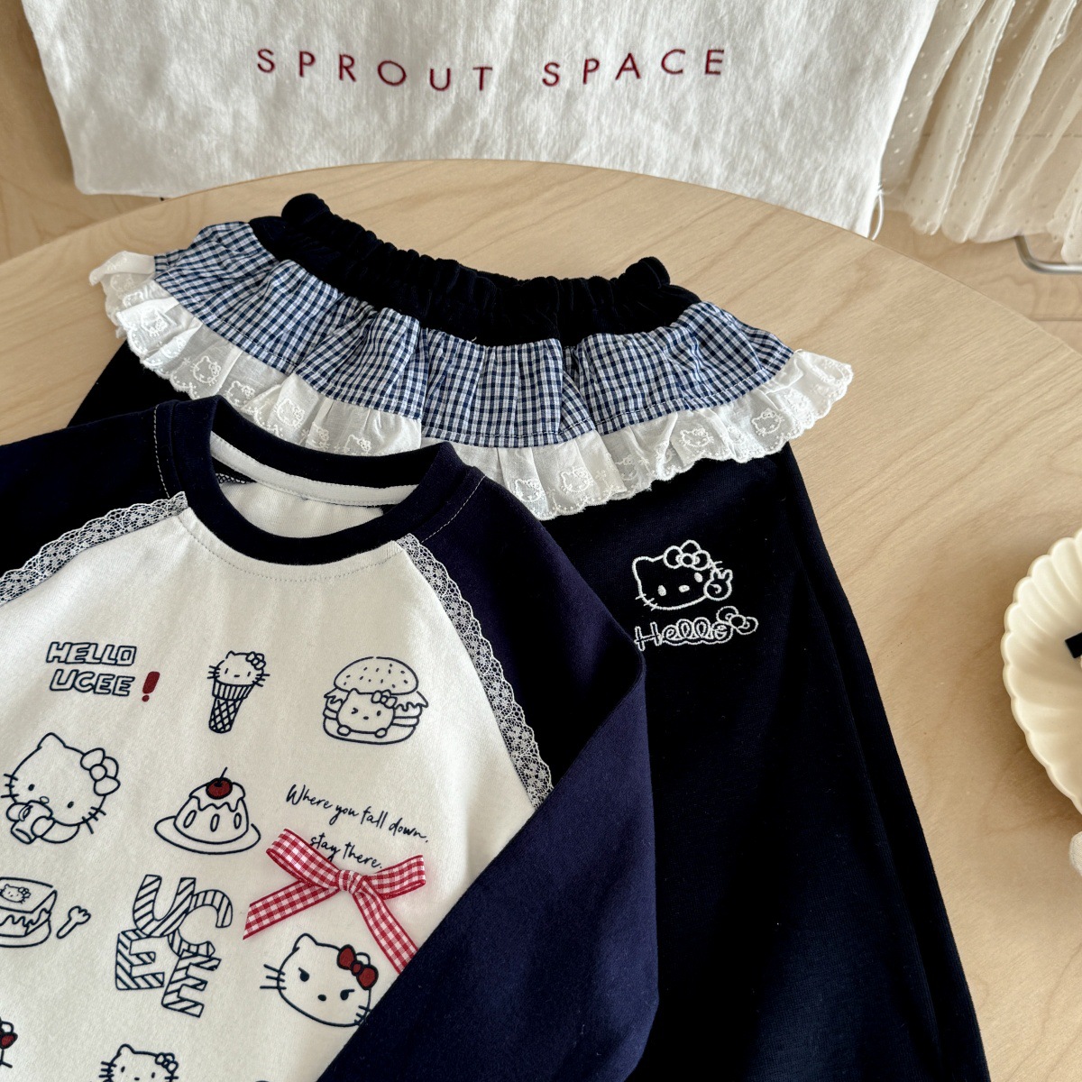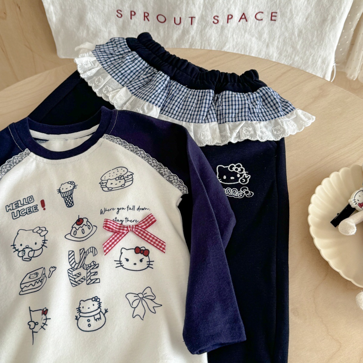Ningli Girls 한국 슈트 25 가을 새로운 다목적 프린트 긴팔 레이스 캐주얼 바지 베이비 투피스 트렌디 세트스토어 가기
