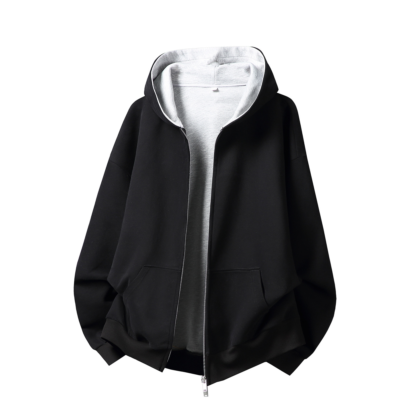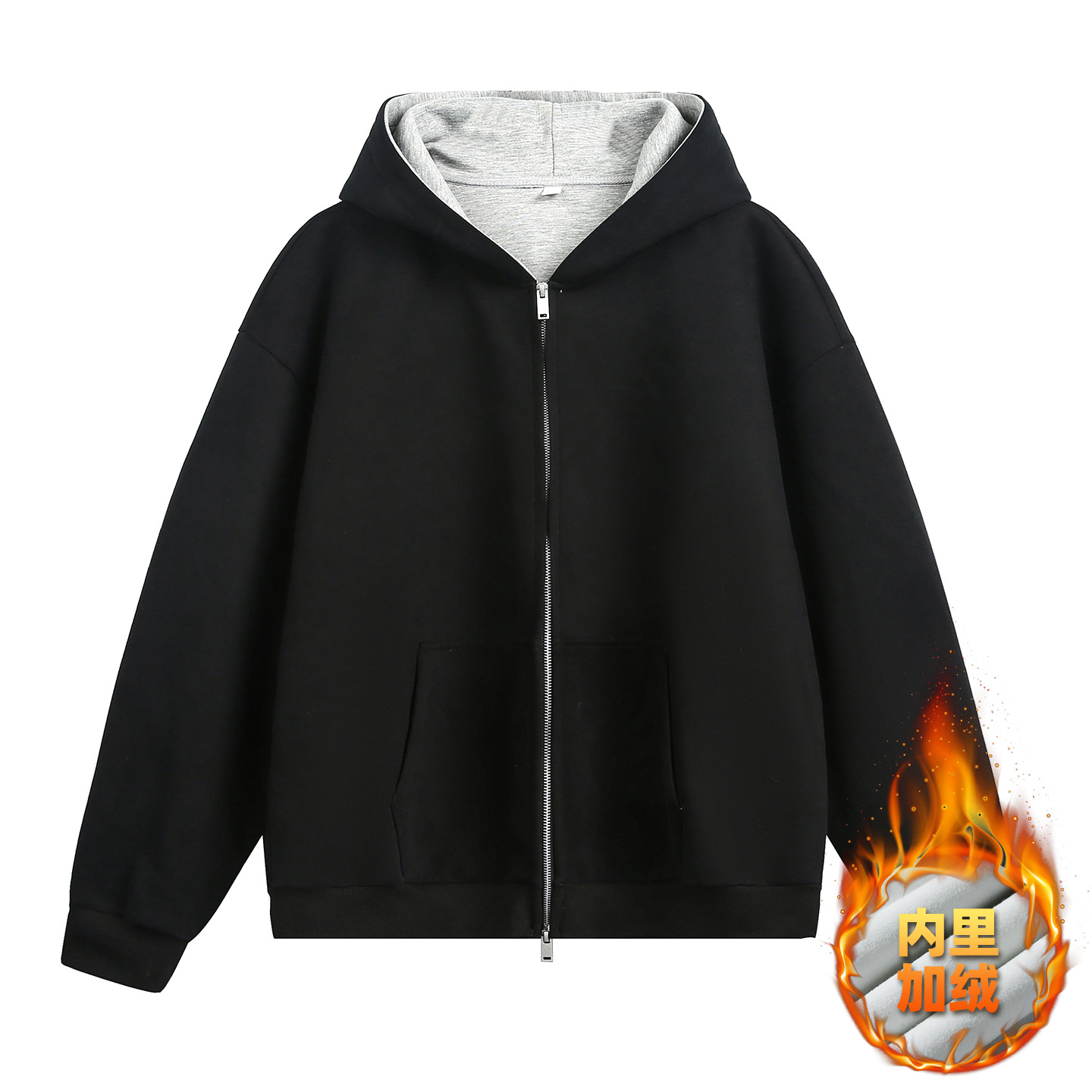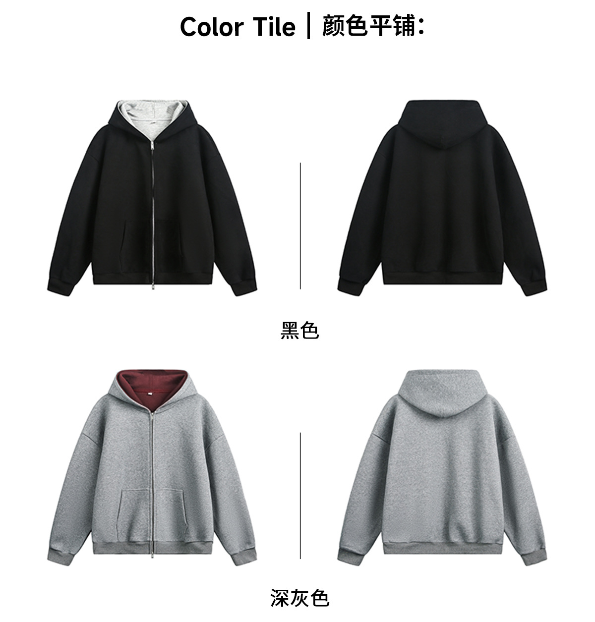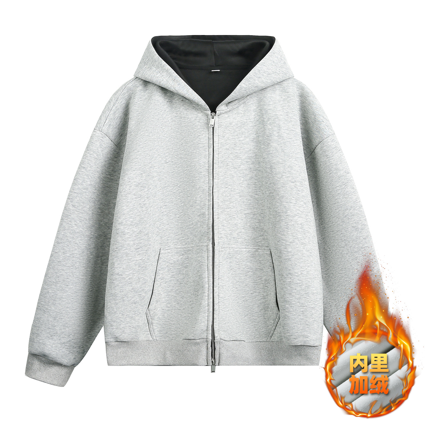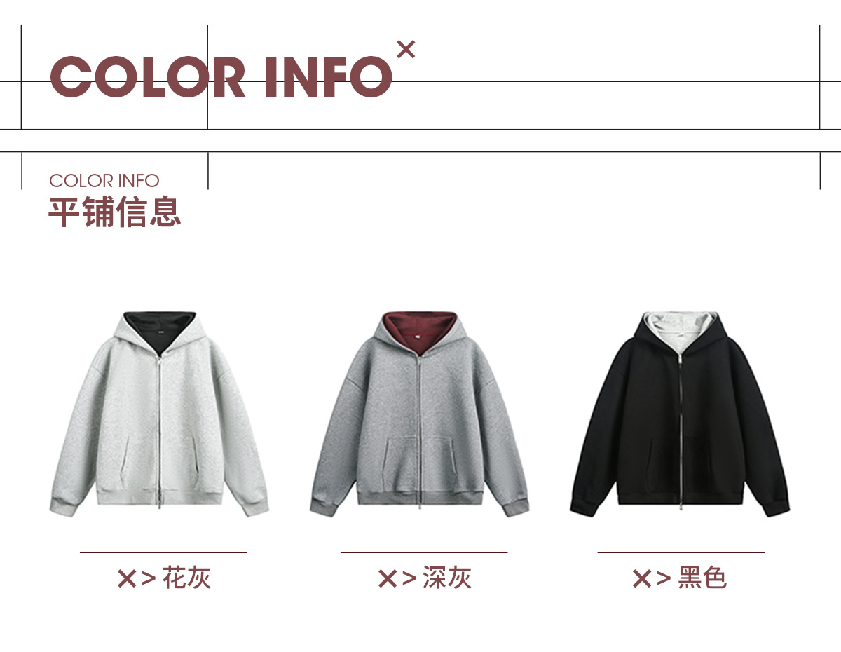 380g 헤비 콘트라스트 컬러 내부 후드 티셔츠 남성 가을 스포츠 루즈 카디건 자켓 트렌디 캐주얼 자켓