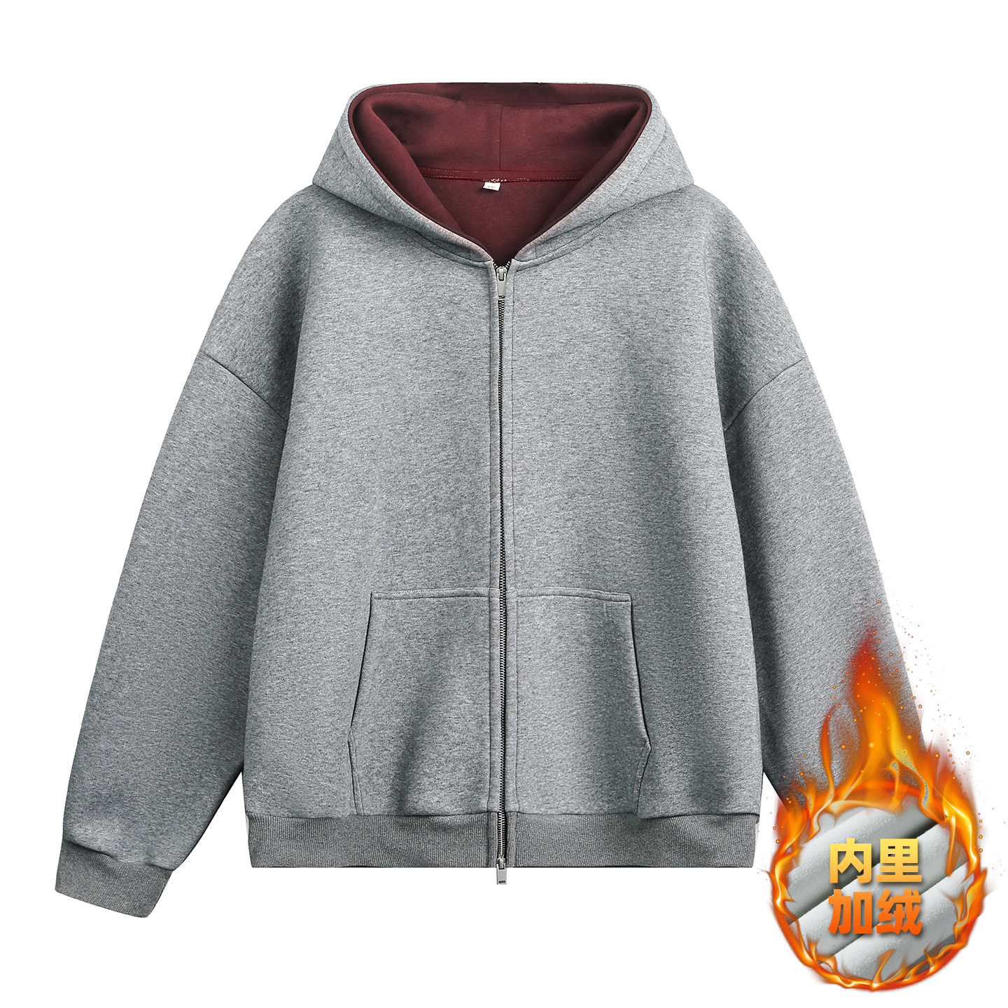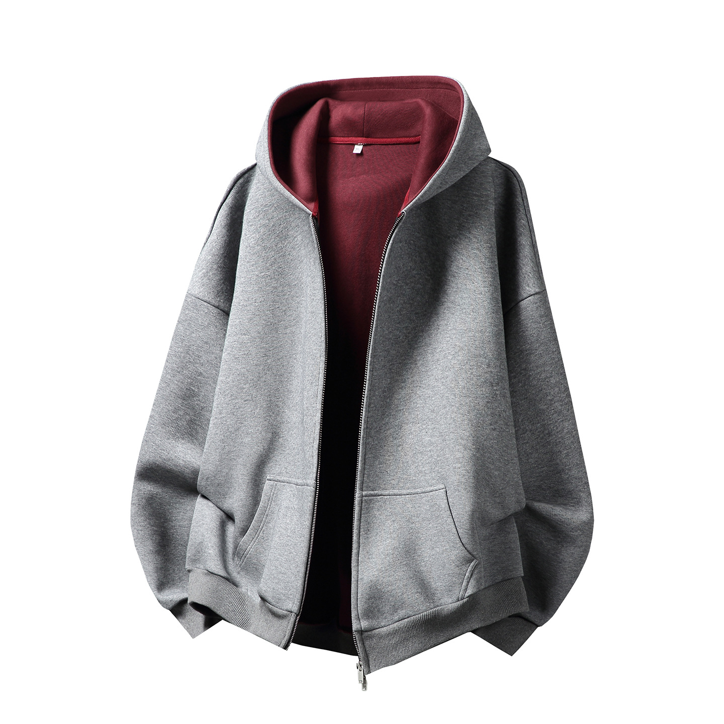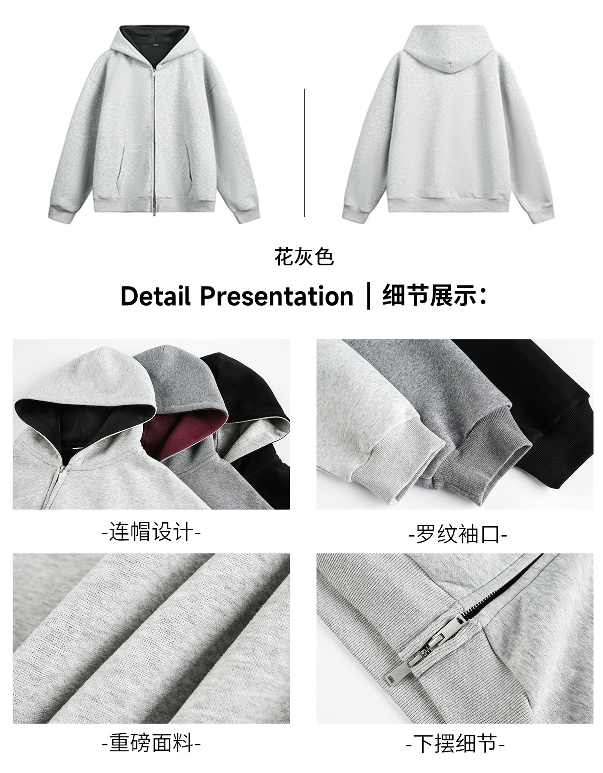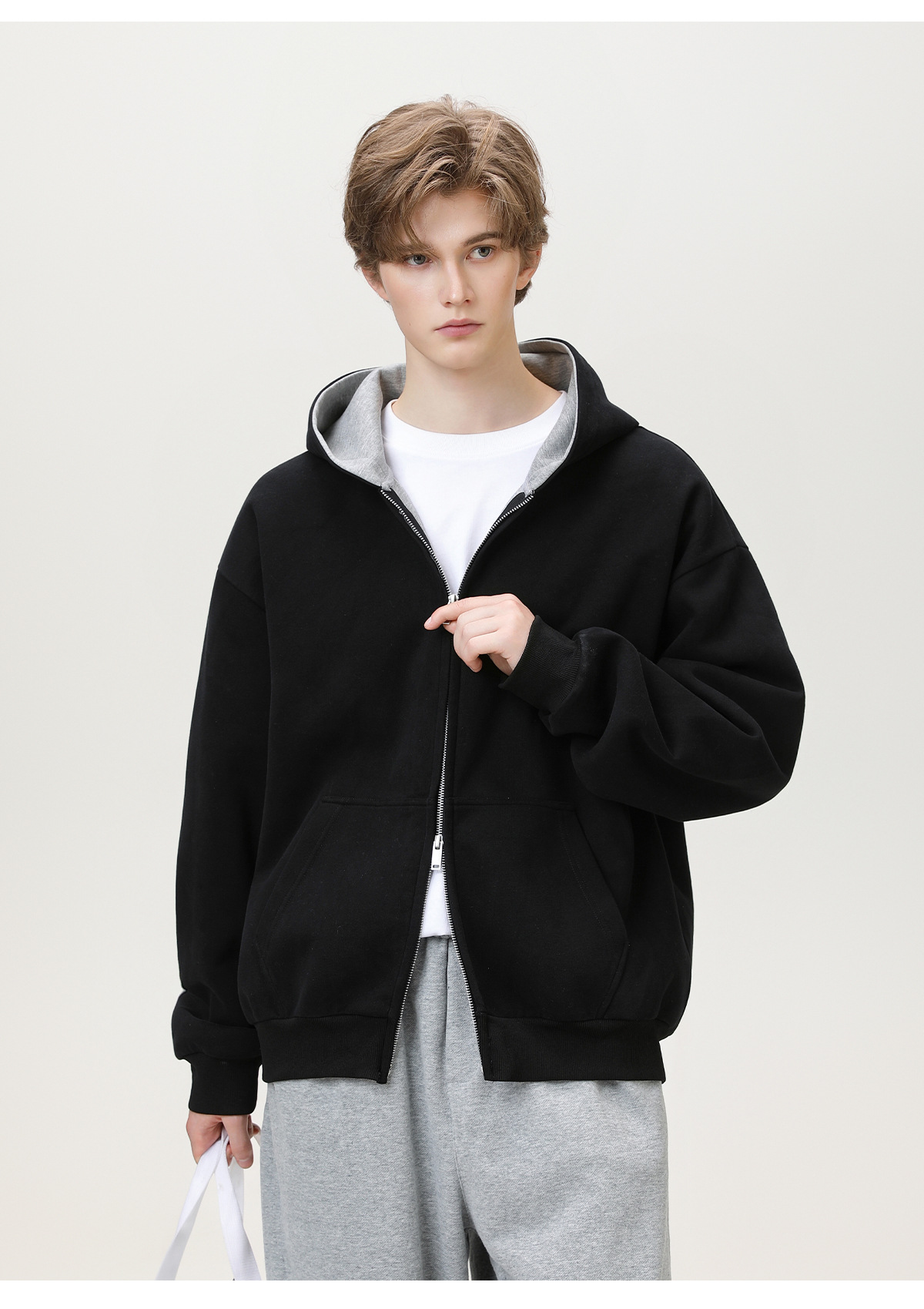 380g 헤비 콘트라스트 컬러 내부 후드 티셔츠 남성 가을 스포츠 루즈 카디건 자켓 트렌디 캐주얼 자켓