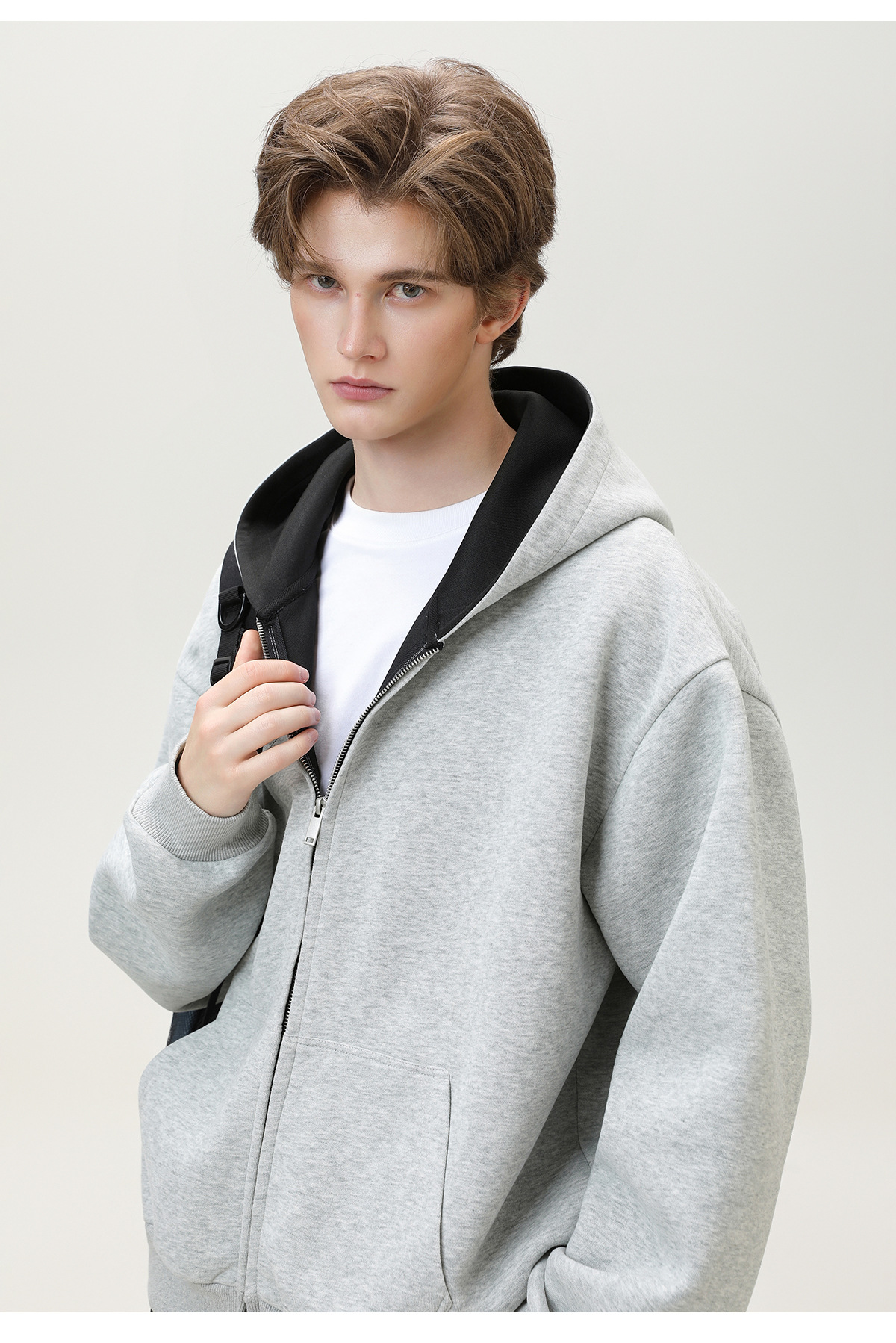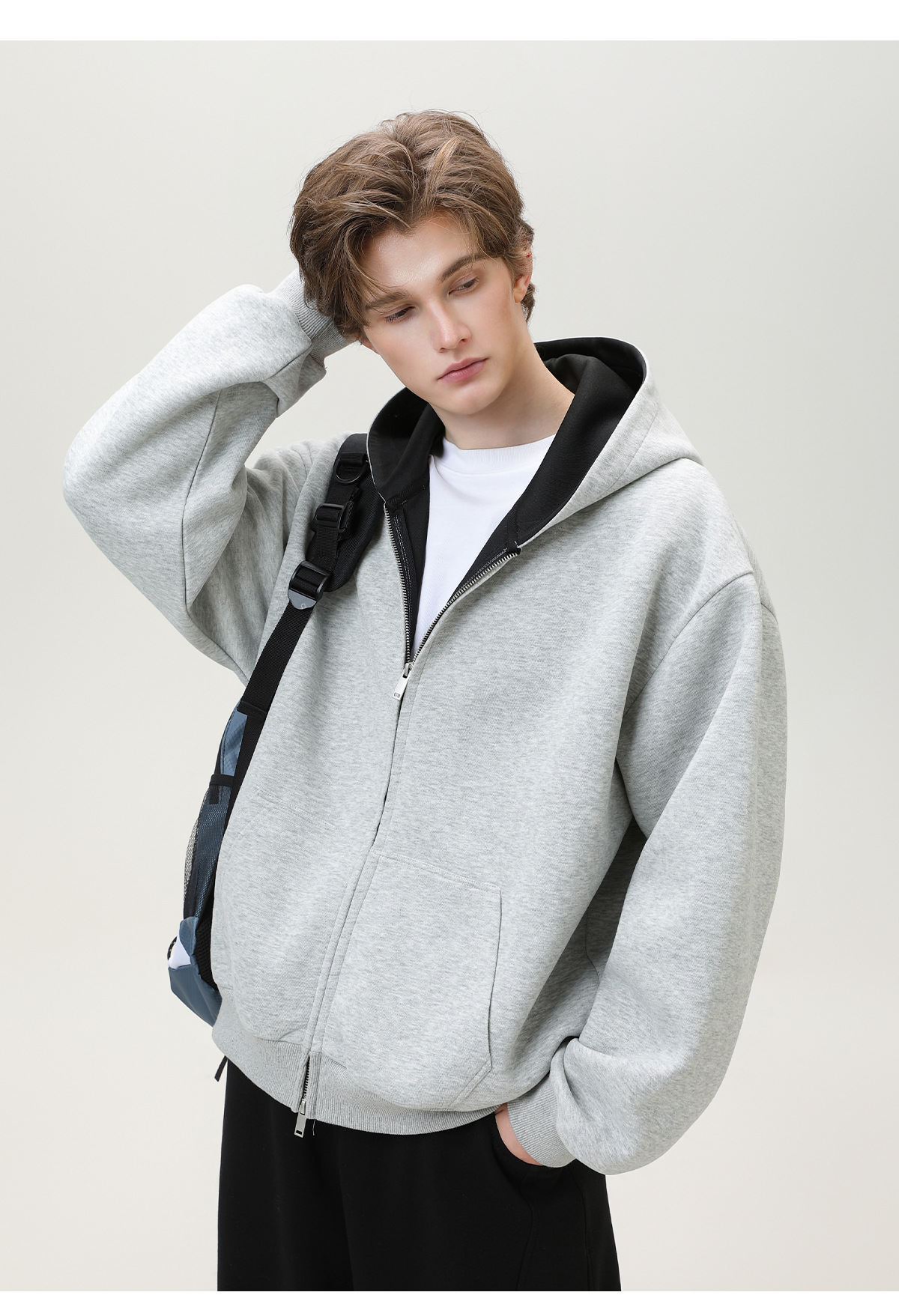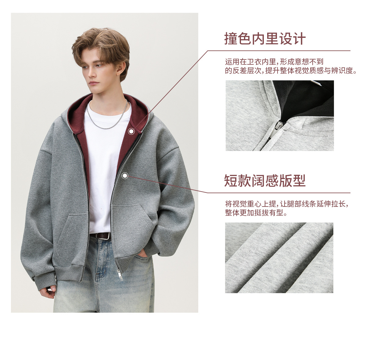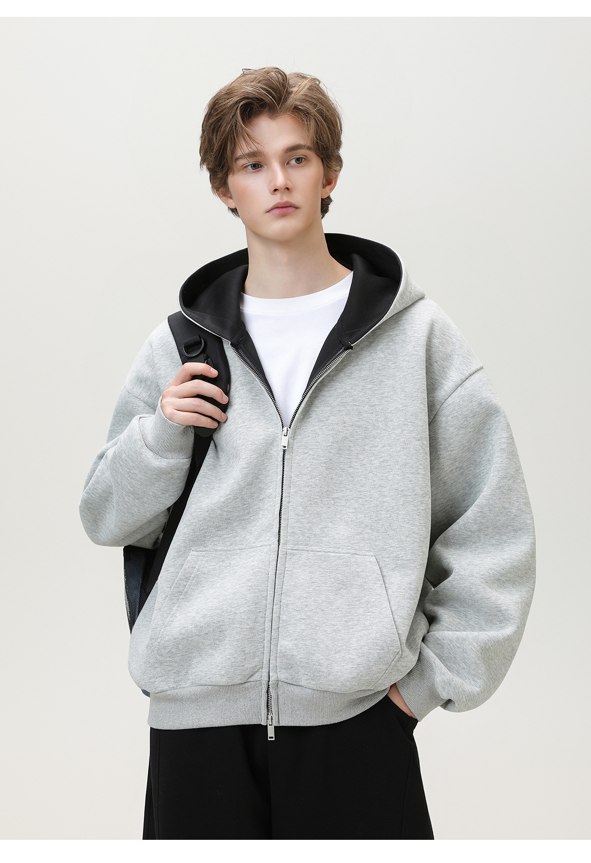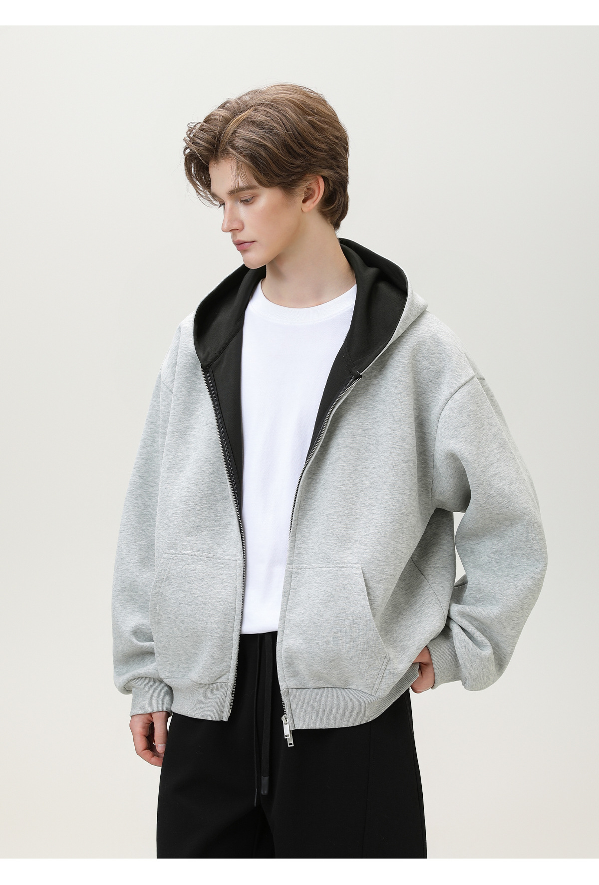 380g 헤비 콘트라스트 컬러 내부 후드 티셔츠 남성 가을 스포츠 루즈 카디건 자켓 트렌디 캐주얼 자켓