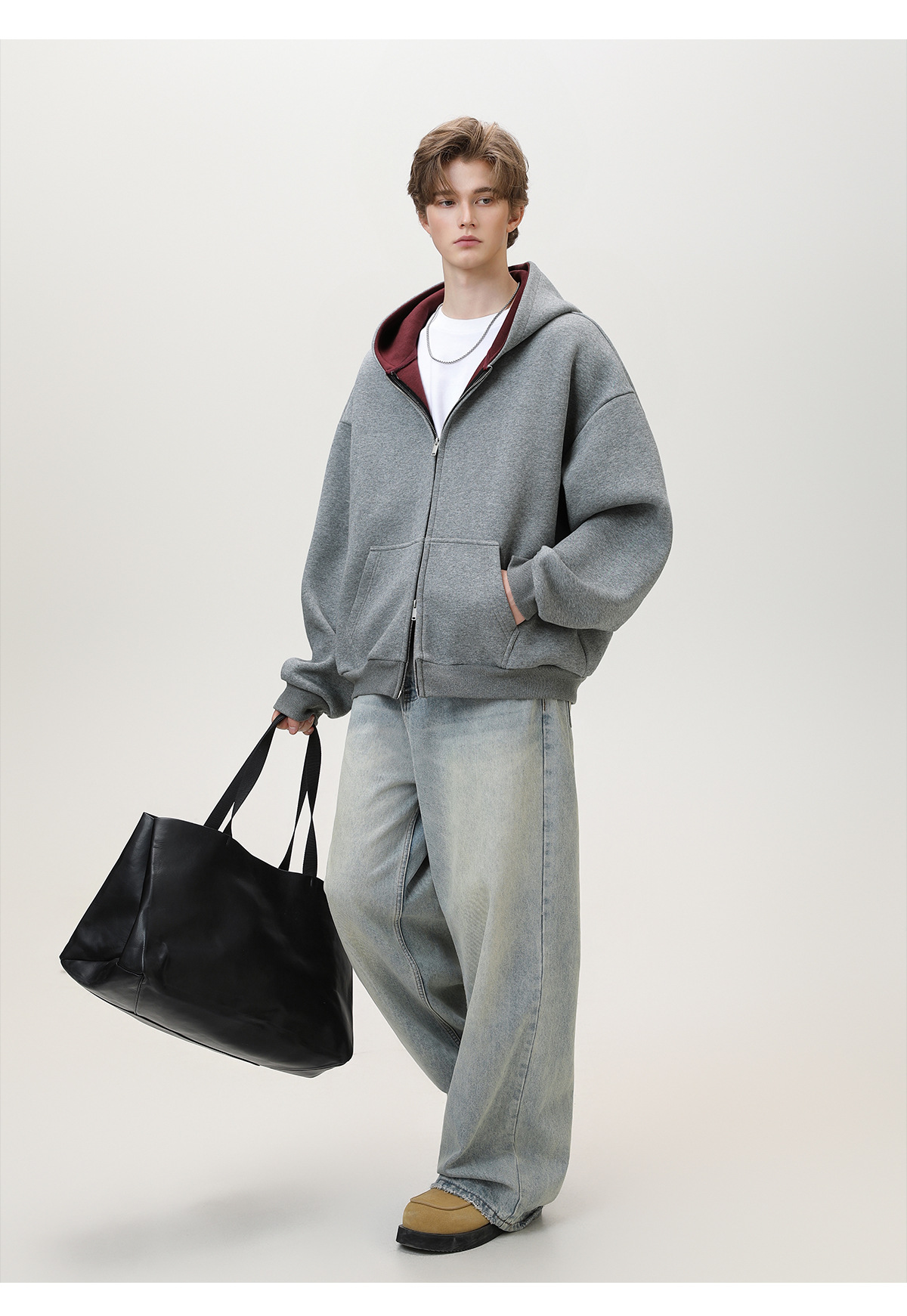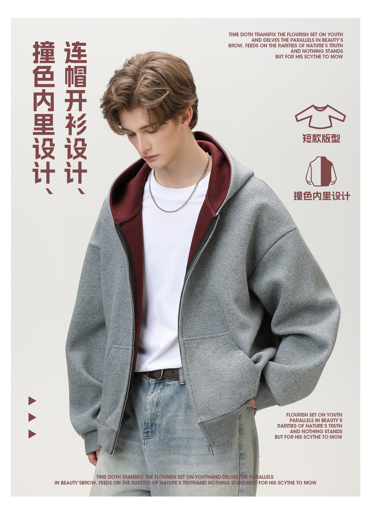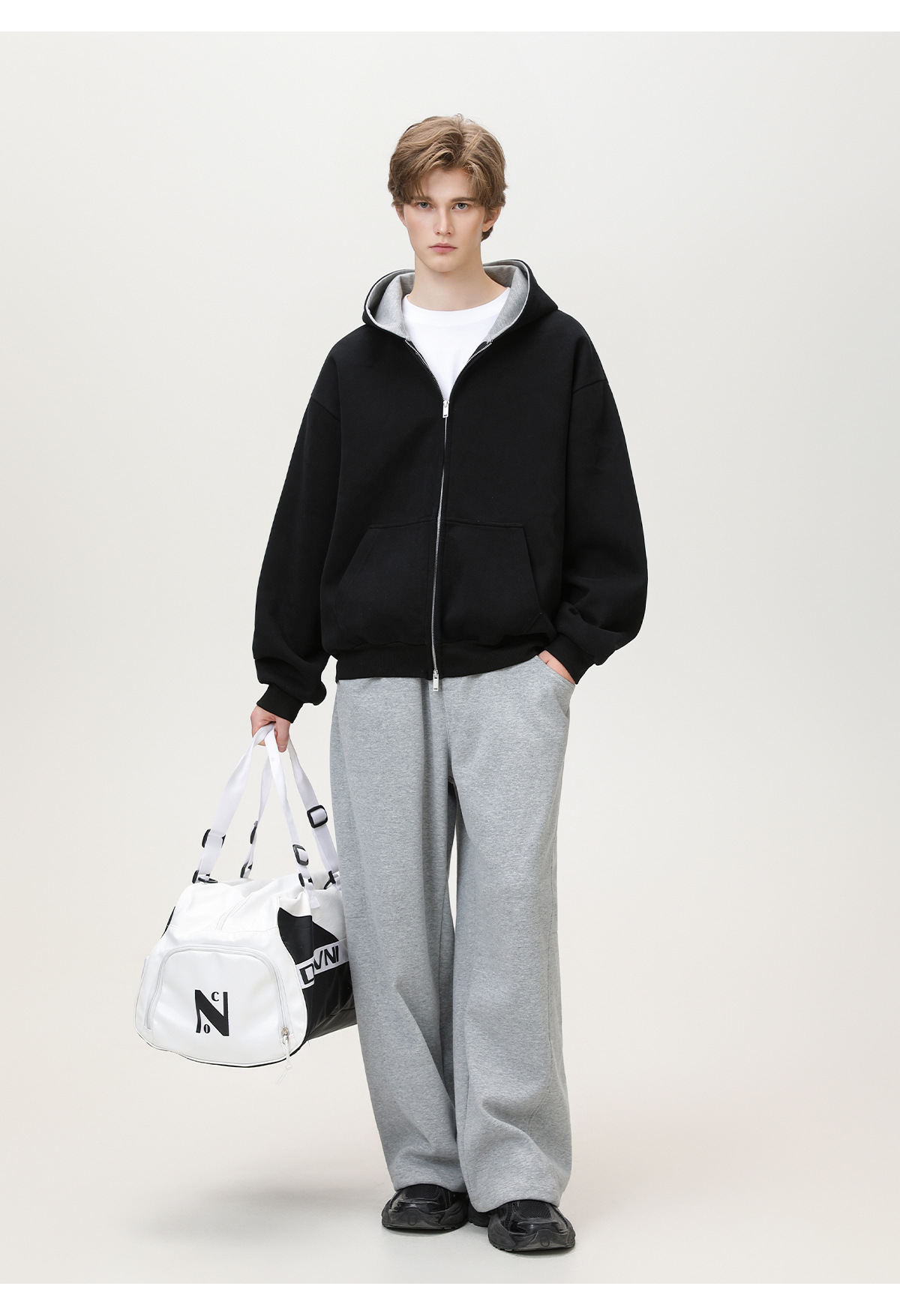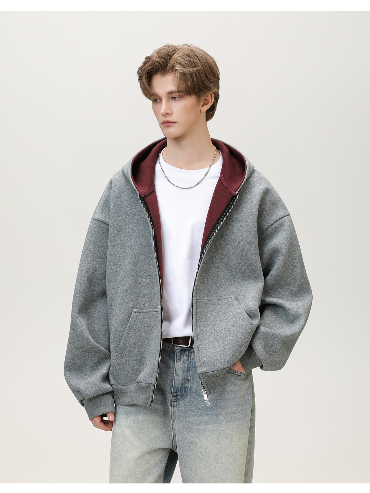 380g 헤비 콘트라스트 컬러 내부 후드 티셔츠 남성 가을 스포츠 루즈 카디건 자켓 트렌디 캐주얼 자켓