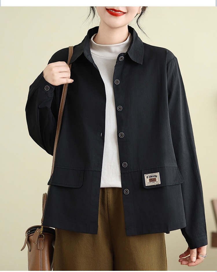 2025년 가을 신상 여성용 짧은 코트, 긴팔 셔츠, 가디건, 워크 재킷, 패셔너블한 탑, 여성 의류의 실사 촬영