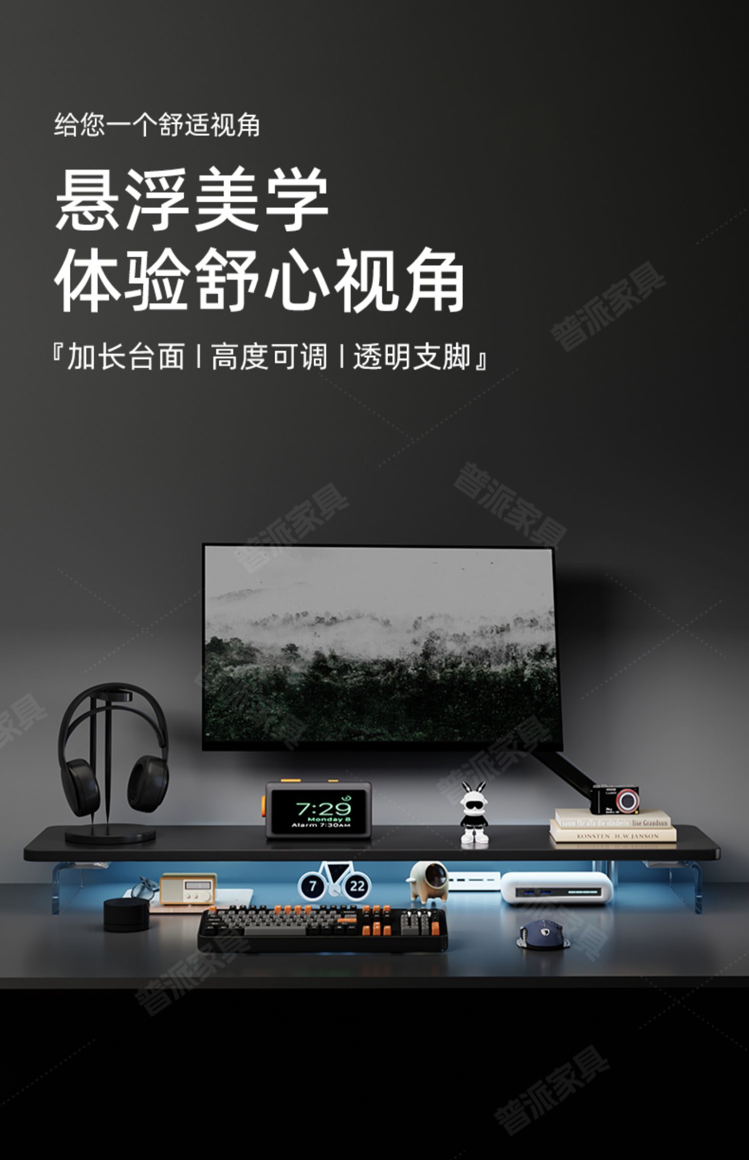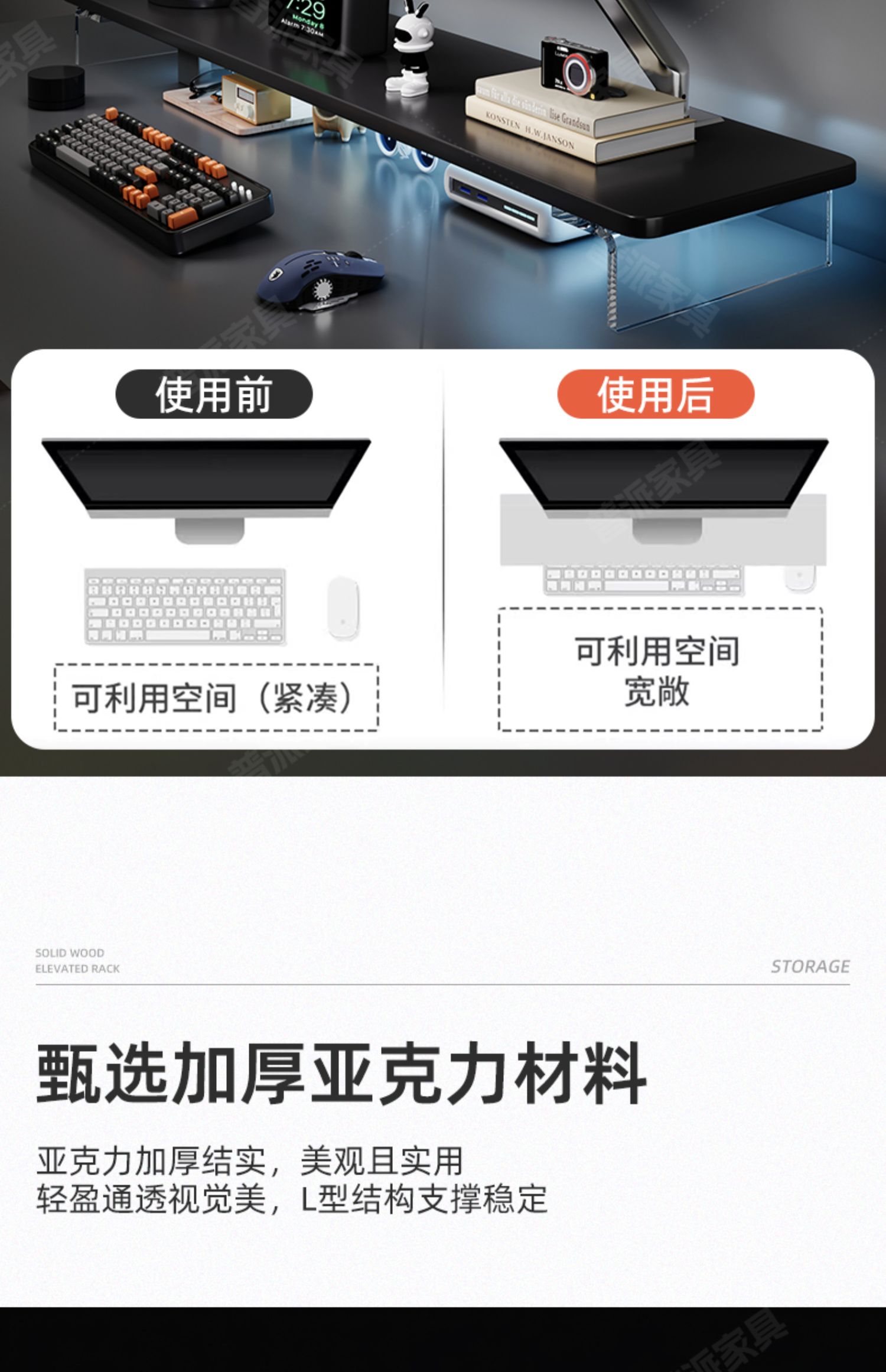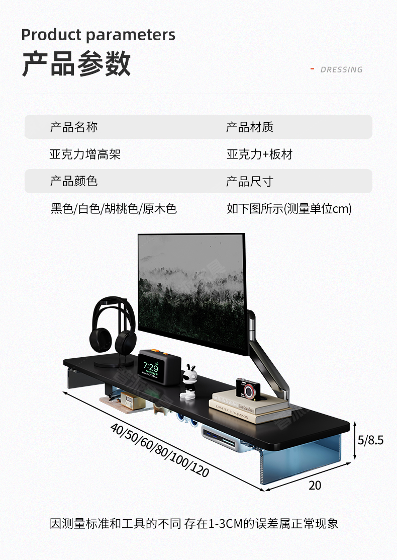 아크릴 컴퓨터 높이 조절 모니터 서스펜션 브래킷 컴퓨터 책상 데스크탑 데스크탑 스토리지 랙 높이 조절 지원 랙스토어 가기