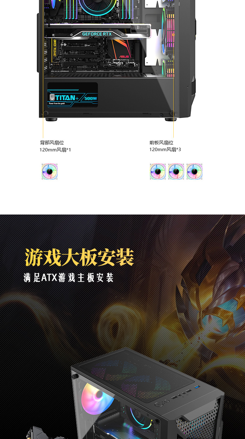 Titan Pro 컴퓨터 케이스 데스크탑 측면 투명 게임용 수냉식 ATX 대형 보드 백라인 케이스스토어 가기