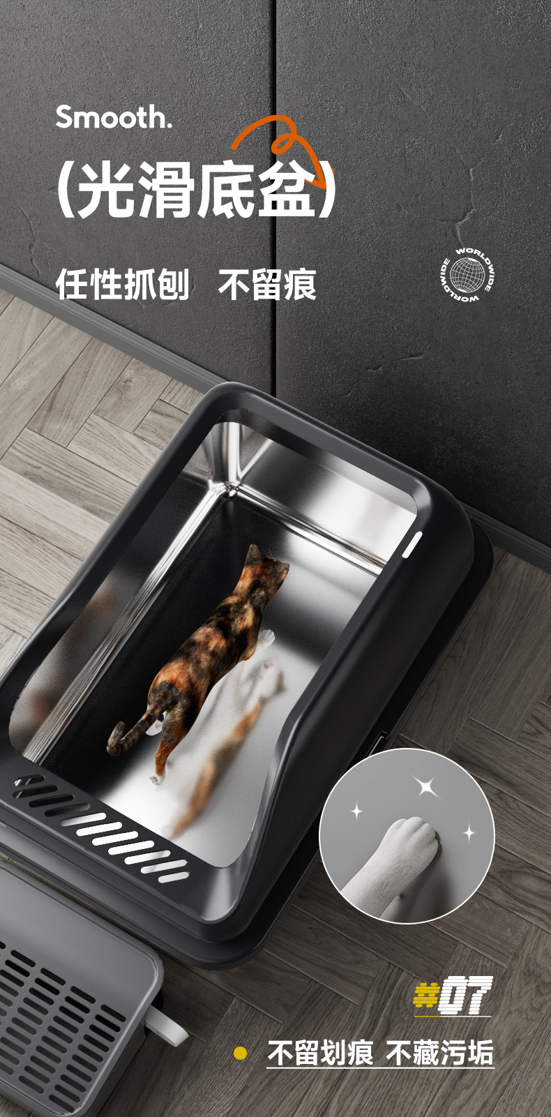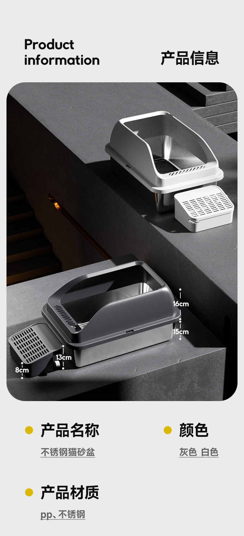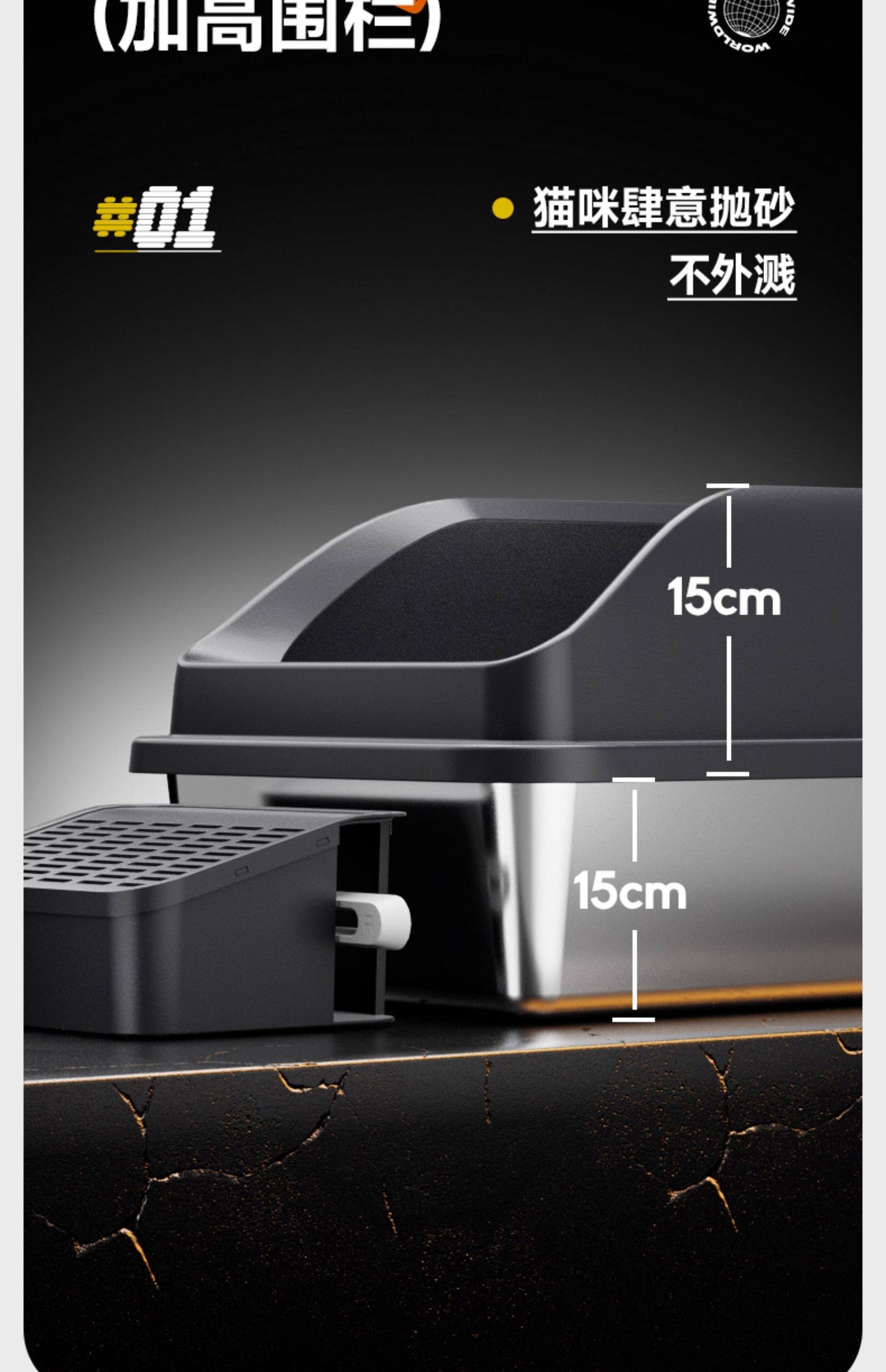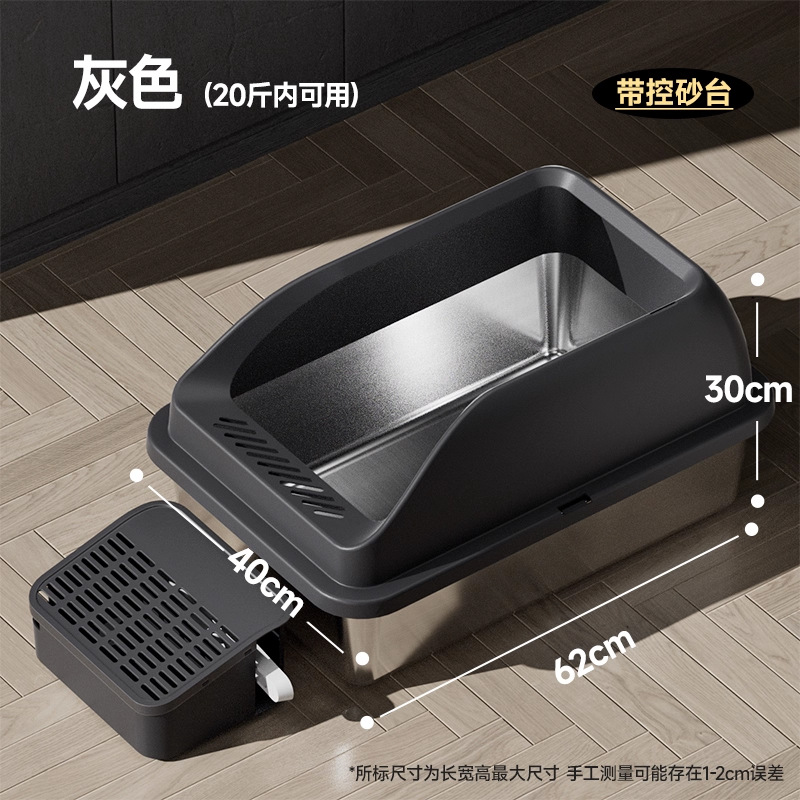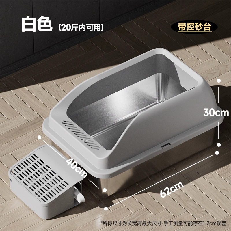 【品名】:HOOPET高围栏不锈钢猫砂盆带落砂盒(白色/灰色)/高围栏不锈钢猫砂盆(白色/灰色)