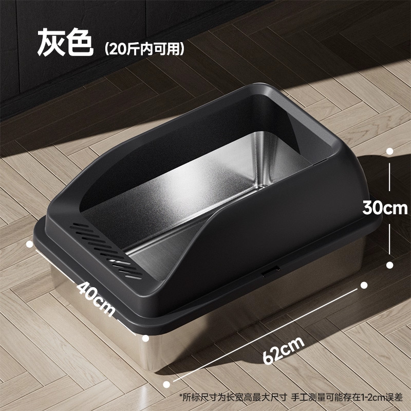 스테인레스 스틸 고양이 쓰레기 상자 초대형 강화 안티 스플래시 고양이 화장실 반 밀폐형 초대형 개방형 새끼 고양이 쓰레기 상자